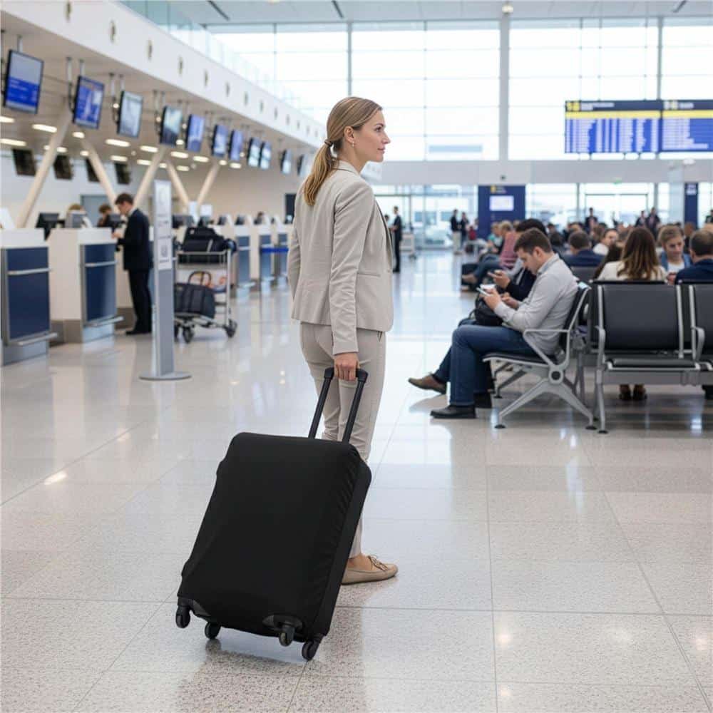 Specificatii tehnice: Marime: M Material: 95% poliester, 5% elastan Densitate material: 180 GSM Culoare: negru Numar bucati: 1 Tip inchidere: fermoar dublu cu catarama Intretinere: lavabila la masina Tesatura: elastica Dimensiuni compatibile valiza: Inaltime valiza: aproximativ 65 cm Latime valiza: aproximativ 45 cm Adancime valiza: aproximativ 24 cm Dimensiuni deschideri: Deschidere superioara: 20 x 10 cm Deschidere laterala: 18 x 5 cm Lungime fermoar inferior: 18 cm Lungime banda elastica cu catarama: 18 – 36 cm Latime banda elastica cu catarama: 2 cm Scurta descriere: Husa elastica pentru valiza, conceputa pentru protectia bagajului in timpul calatoriilor. Materialul elastic se muleaza usor, iar sistemul de inchidere cu fermoar dublu si catarama asigura fixare stabila pe valiza. Caracteristici principale: Protejeaza valiza impotriva murdariei si zgarieturilor Material elastic usor de montat Fermoar dublu pentru acces rapid Catarama elastica pentru fixare sub valiza Deschideri pentru manerele superioare si laterale Lavabila la masina Rezistenta la stropiri usoare