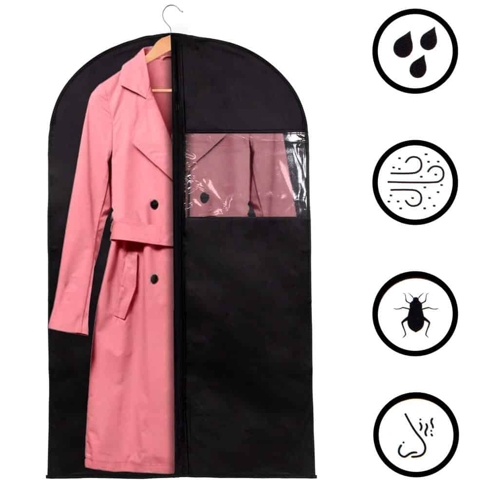 Husa transport haine, pe umeras, impermeabila cu fereastra, negru, 60×100 cm Mob360