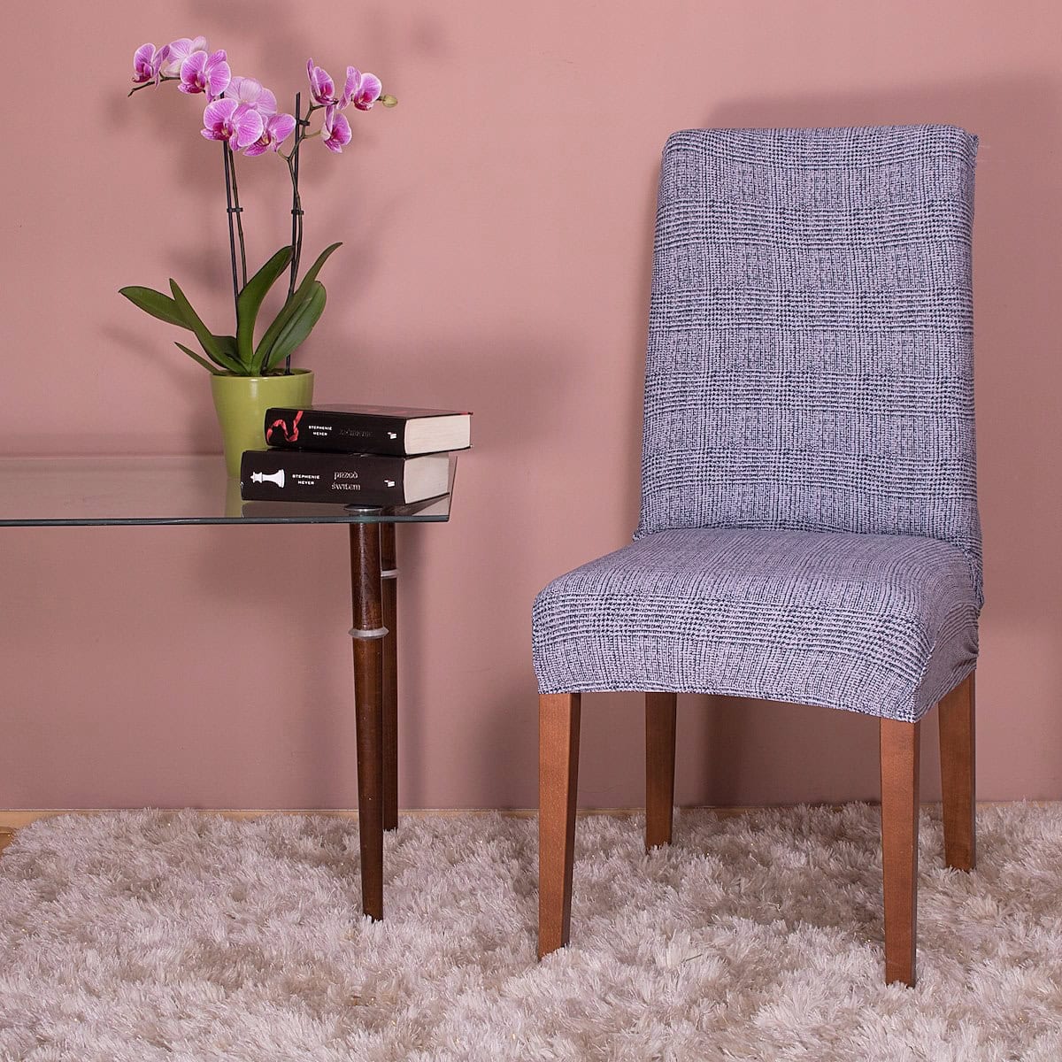 Husa universala pentru scaun, marime universala, poliester si spandex, 45 cm x 60 cm, carouri, gri inchis Mob360