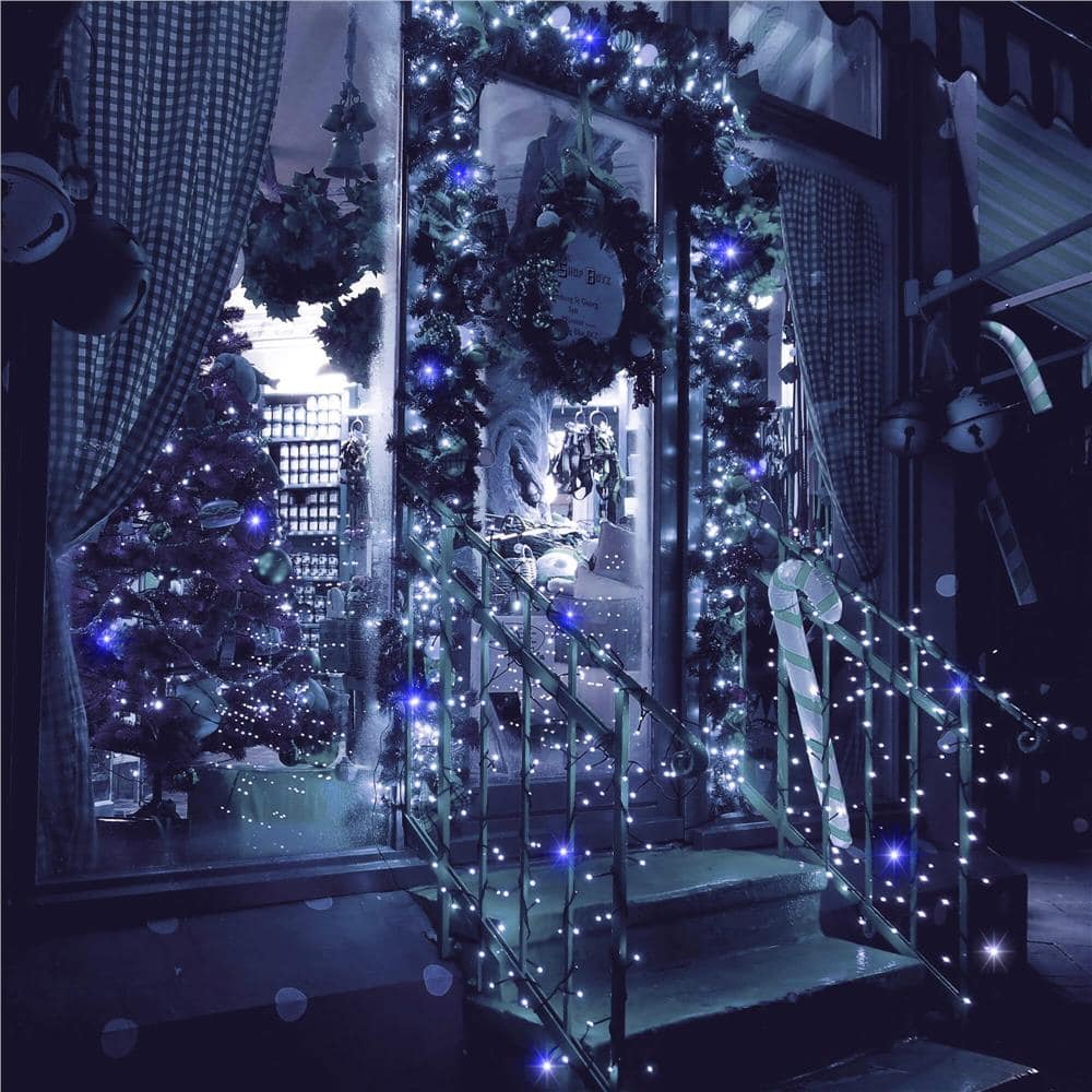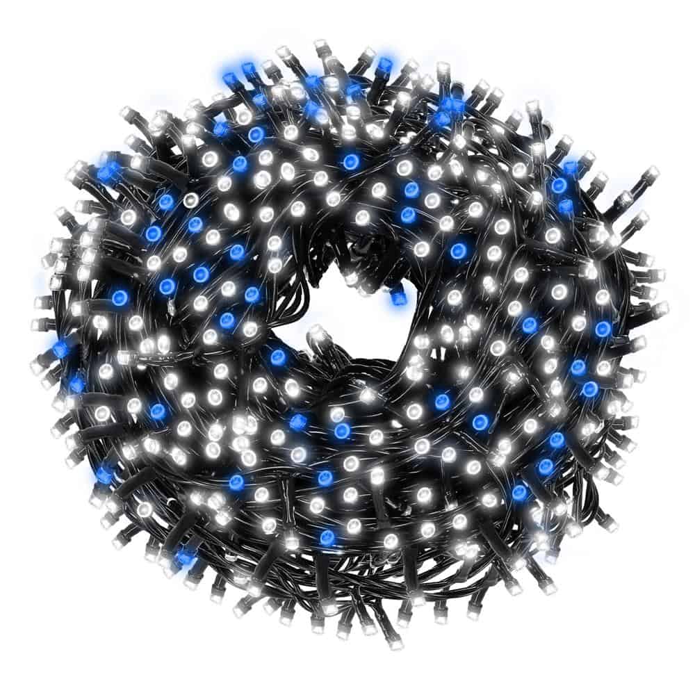 Instalatie luminoasa LED exterior/interior, 1000 LED-uri alb rece cu flash albastru, 80 m, lumina constanta + flash, IP44, conectabila Mob360 – produs disponibil în magazinul Mob360.
