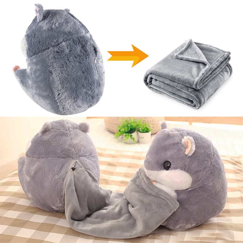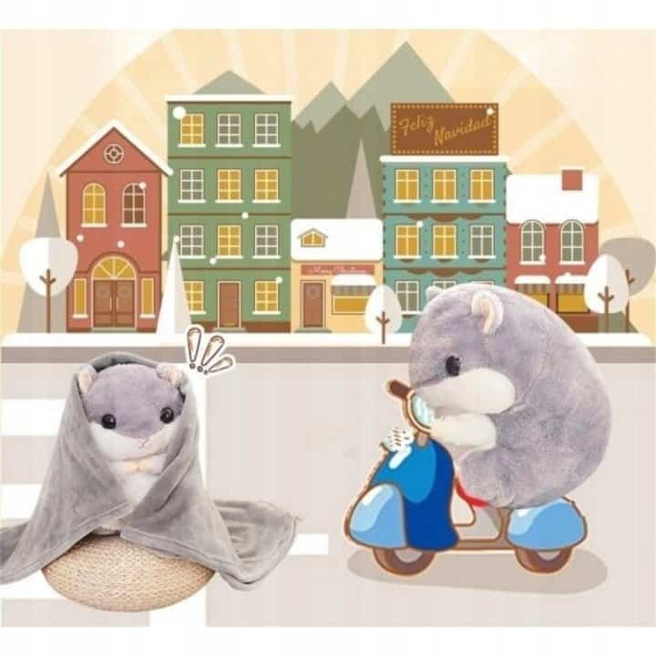 Specificatii tehnice Tip produs: jucarie de plus cu paturica Material jucarie: 100% poliester Dimensiuni jucarie: 50×28 cm Material paturica: 100% poliester Dimensiuni paturica: 160×110 cm Culoare: gri Mod ambalare: vidat Varsta recomandata: 3+ Scurta descriere Hamster de plus moale si pufos, cu buzunar ascuns in care se afla o paturica mare si placuta la atingere. Ideal pentru joaca, imbratisat si momente de relaxare, atat pentru copii, cat si pentru adulti. Materialele sunt moi, sigure si confortabile. Caracteristici principale Plus moale si plin de volum Paturica mare ascunsa in interior Material sigur si prietenos cu pielea Perfect pentru joaca si somn Design adorabil si atractiv Dimensiune generoasa a jucariei Usor de transportat si oferit cadou Ambalat sigur pentru transport