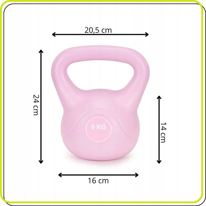 Specificatii tehnice Culoare: roz Material exterior: ABS durificat Material interior: ciment Greutate: 6 kg Diametru bila: aprox. 16 cm Latime totala: 20,5 cm Inaltime totala: aprox. 24 cm Inaltime bila: 14 cm Circumferinta bila: 54 cm Distanta maner–bila: aprox. 6,5 cm Latime interioara maner: 13,5 cm Diametru maner: 3 cm Lungime maner: 20,5 cm Circumferinta maner: 11 cm Scurta descriere Cu o greutate de 6 kg, acest kettlebell sustine dezvoltarea fortei si a rezistentei prin exercitii functionale si miscari dinamice. Constructia solida din ABS durificat si umplutura din ciment ofera stabilitate si control in timpul antrenamentului. Potrivit pentru sesiuni eficiente, atat acasa, cat si in sala. Caracteristici principale Greutate 6 kg potrivita pentru antrenament progresiv Constructie solida cu ABS rezistent Umplutura din ciment pentru stabilitate optima Maner ergonomic pentru prindere sigura Echilibru bun pentru executie controlata Ideal pentru antrenament functional si forta