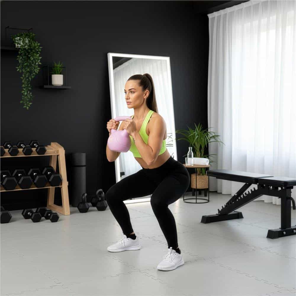 Kettlebell 8 kg, bitum cu invelis rezistent ABS, 23×24 cm, roz Mob360 – produs disponibil în magazinul Mob360.