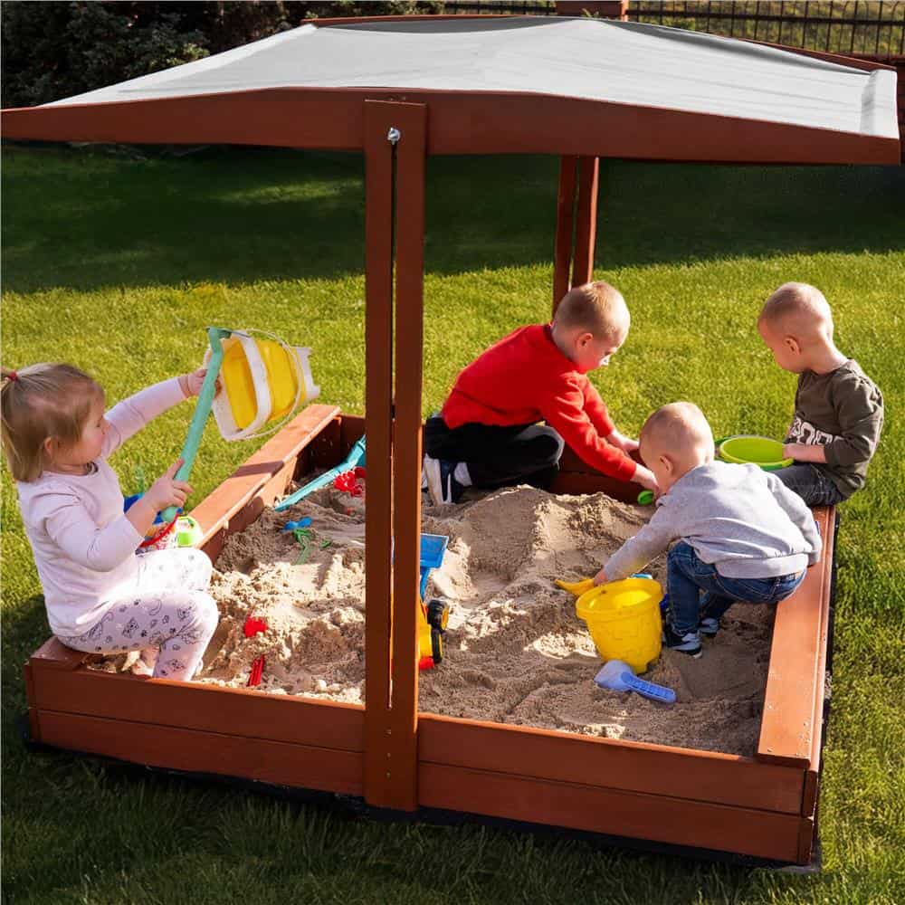 Lada nisip din lemn cu acoperis reglabil, 140x140x121 cm, maro Mob360 – produs disponibil în magazinul Mob360.