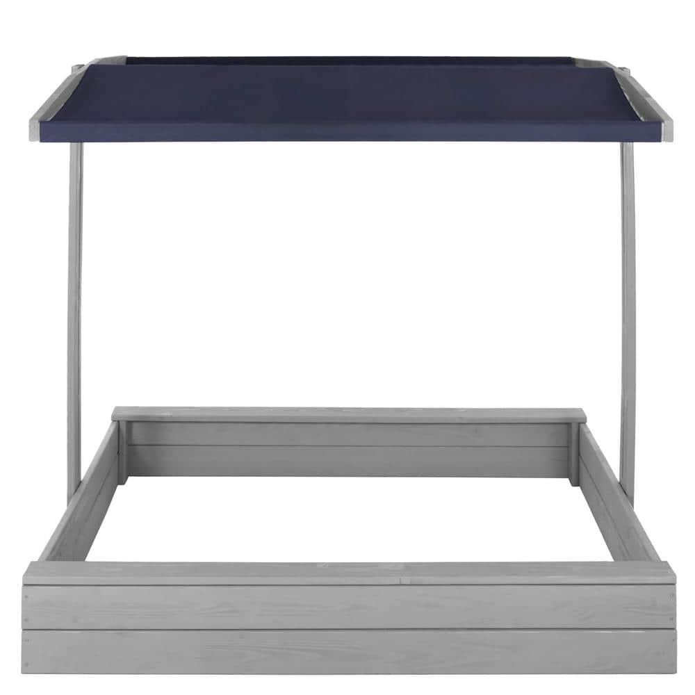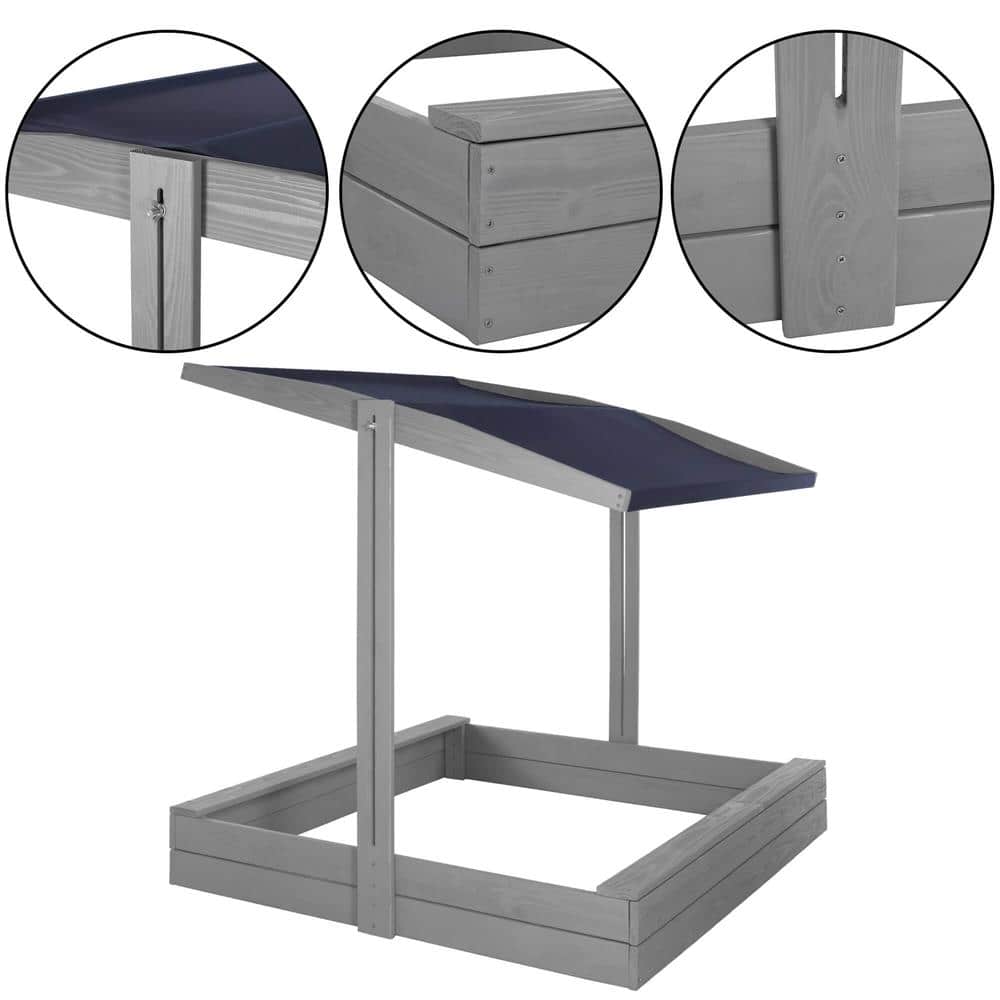Lada nisip din lemn cu acoperis reglabil si capac, pliabila, 120x120x120 cm, gri Mob360