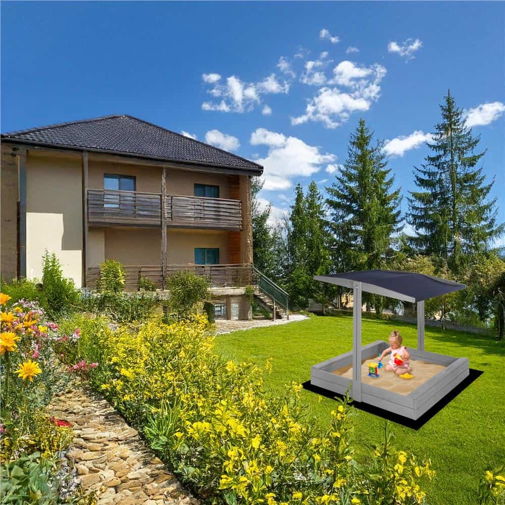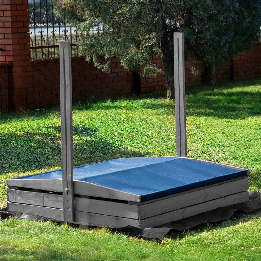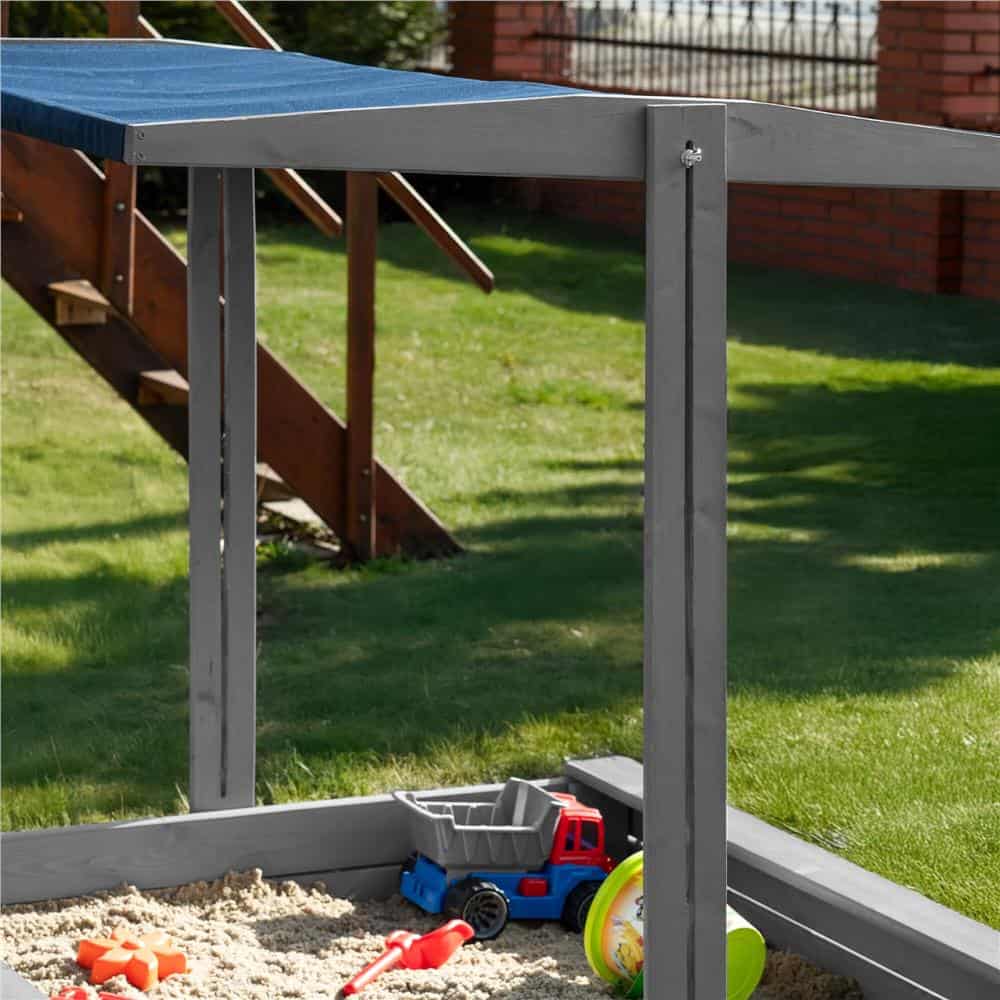 Lada nisip din lemn cu acoperis reglabil si capac, pliabila, 120x120x120 cm, gri Mob360 – produs disponibil în magazinul Mob360.