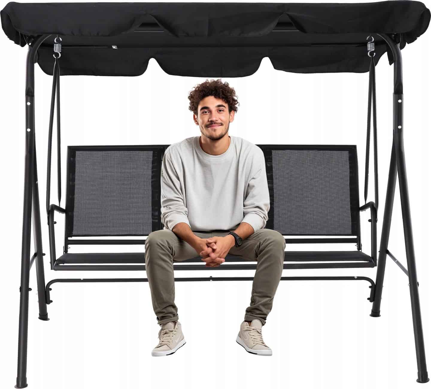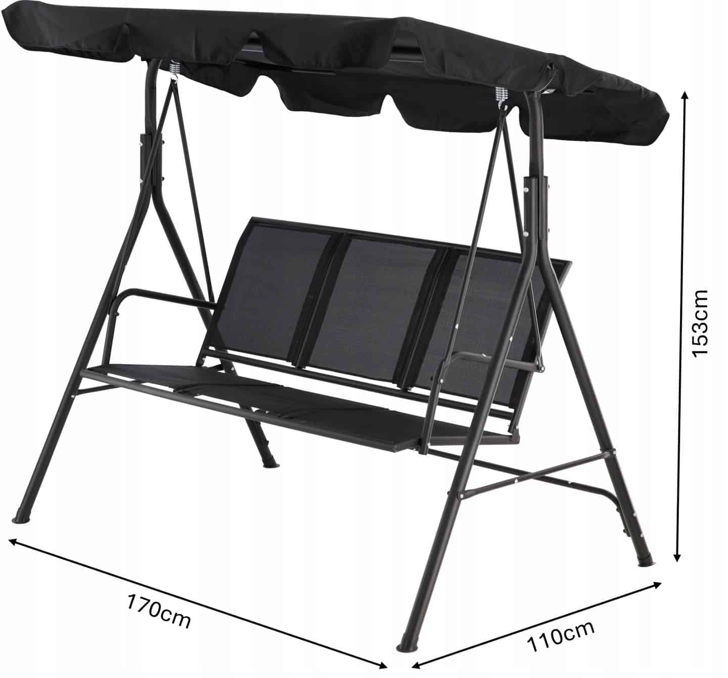 Leagan balansoar gradina Textilene, 3 locuri, 260kg, negru Mob360