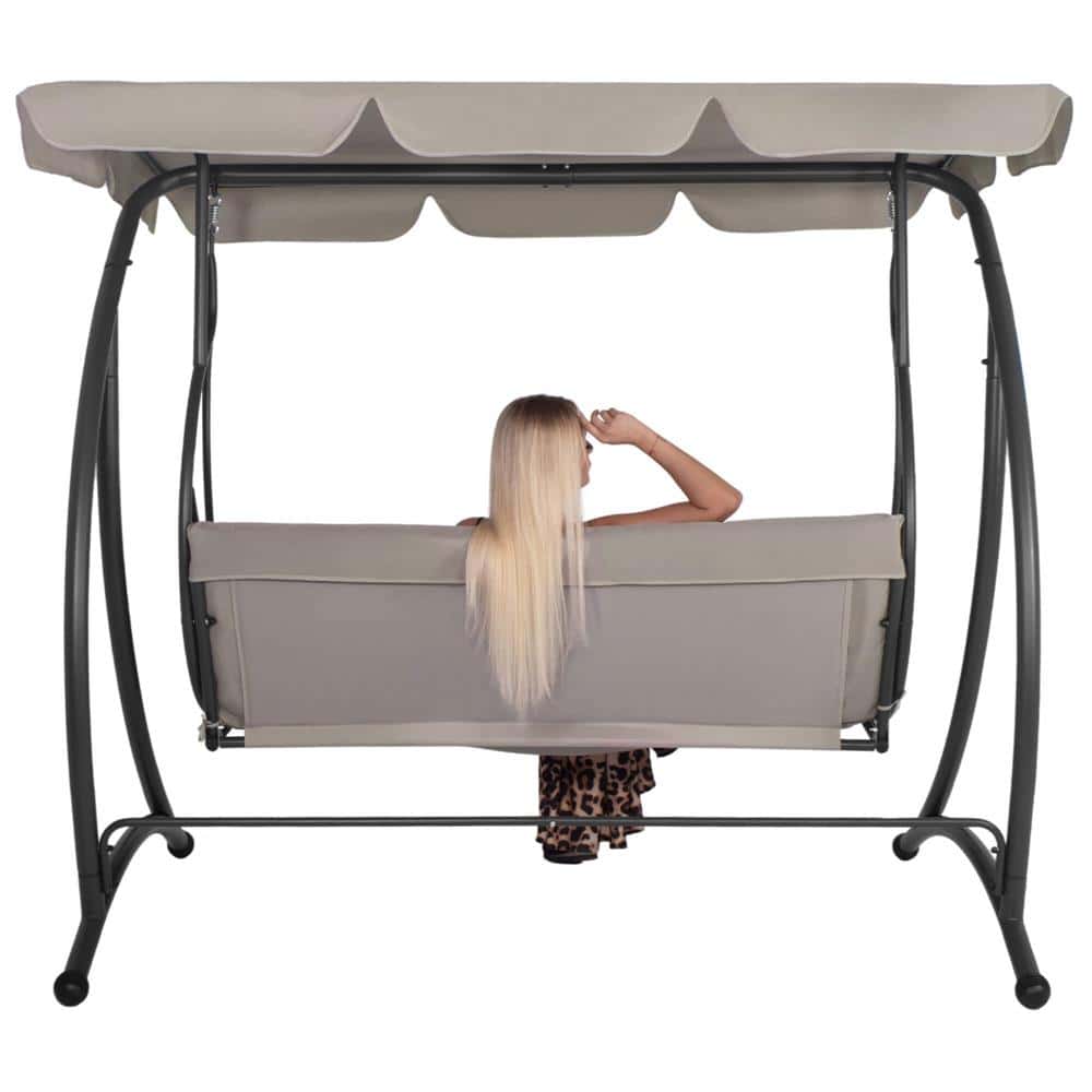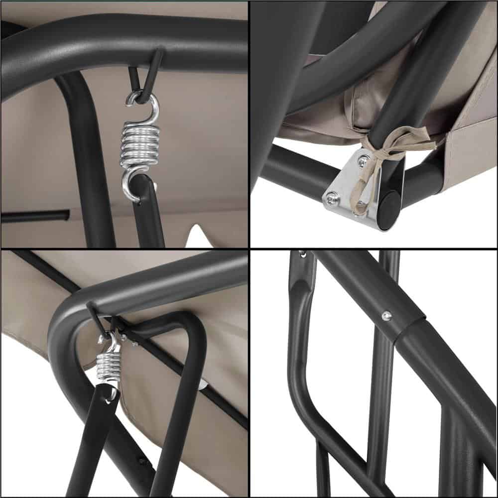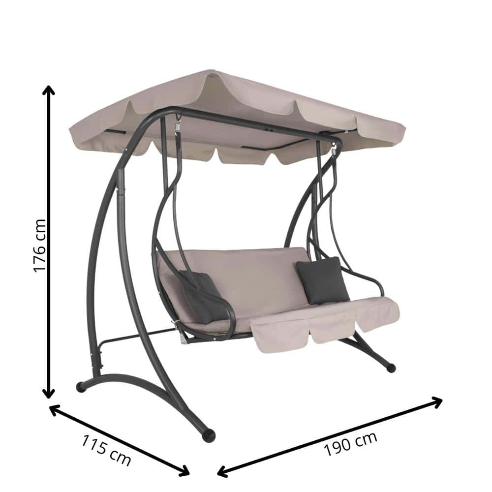 Leagan de gradina 190x115x176 cm, pentru 3 persoane, copertina reglabila, perne incluse, cadru otel si material impermeabil, bej Mob360 – produs disponibil în magazinul Mob360.