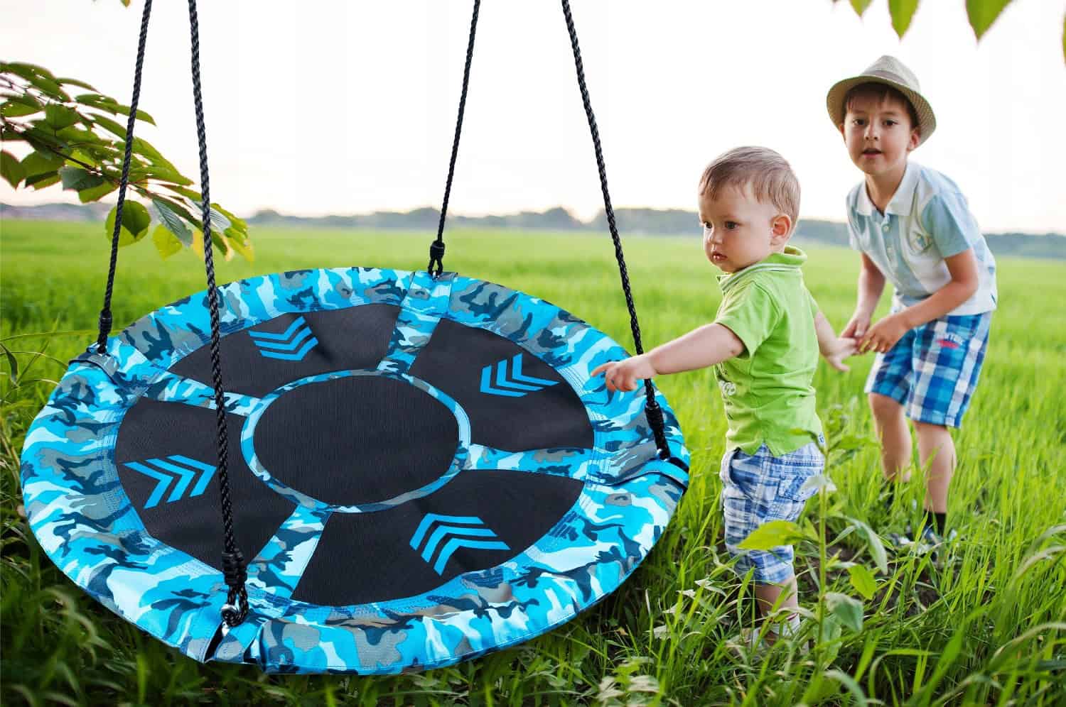 Leagan tip cuib Camuflaj 100cm, inaltime reglabila, 150 kg, Albastru Negru Mob360