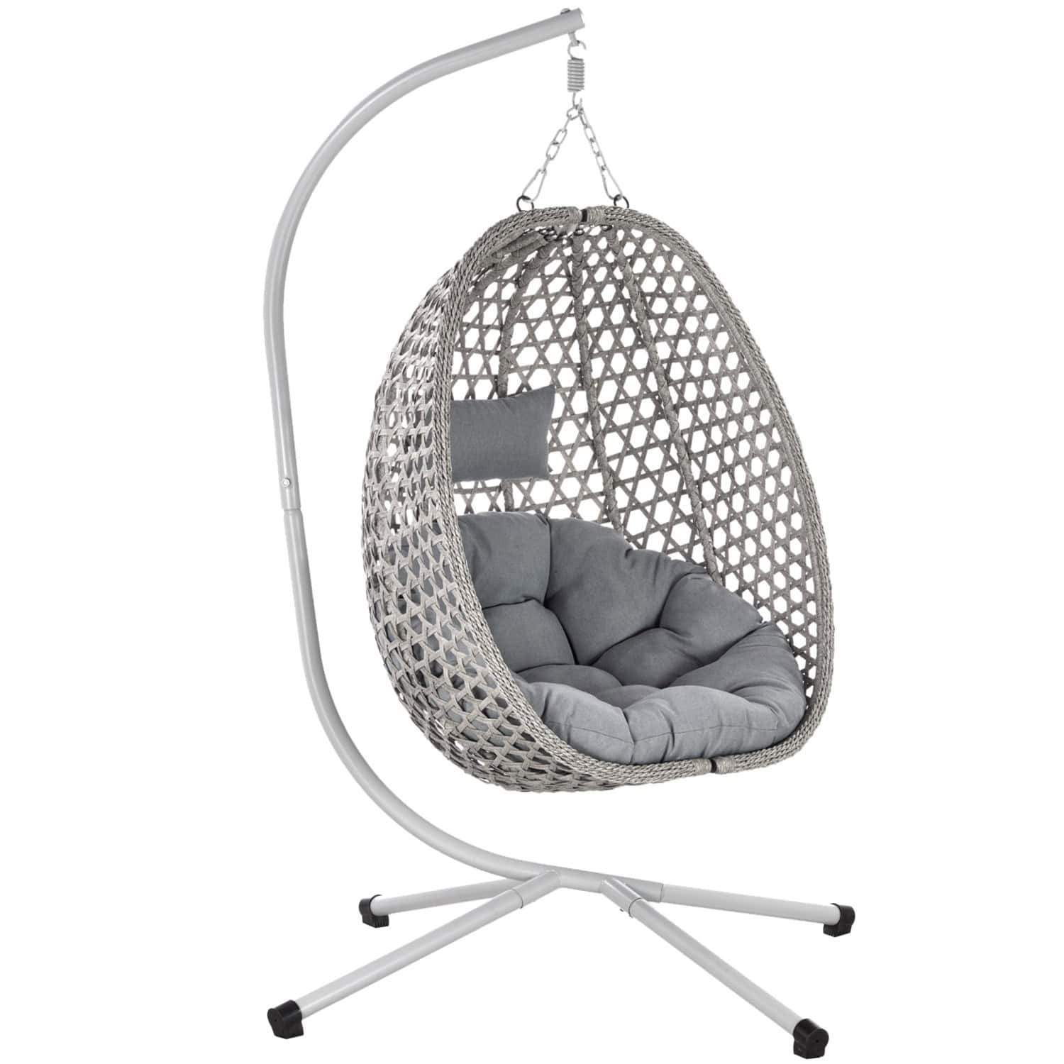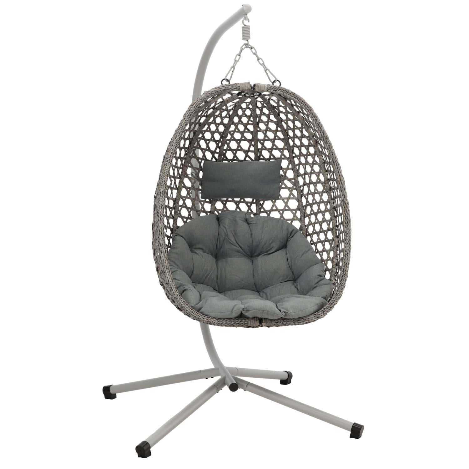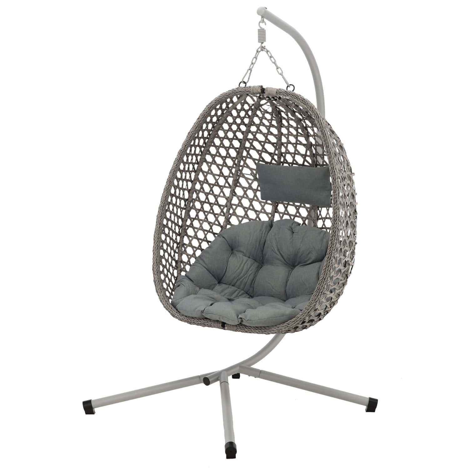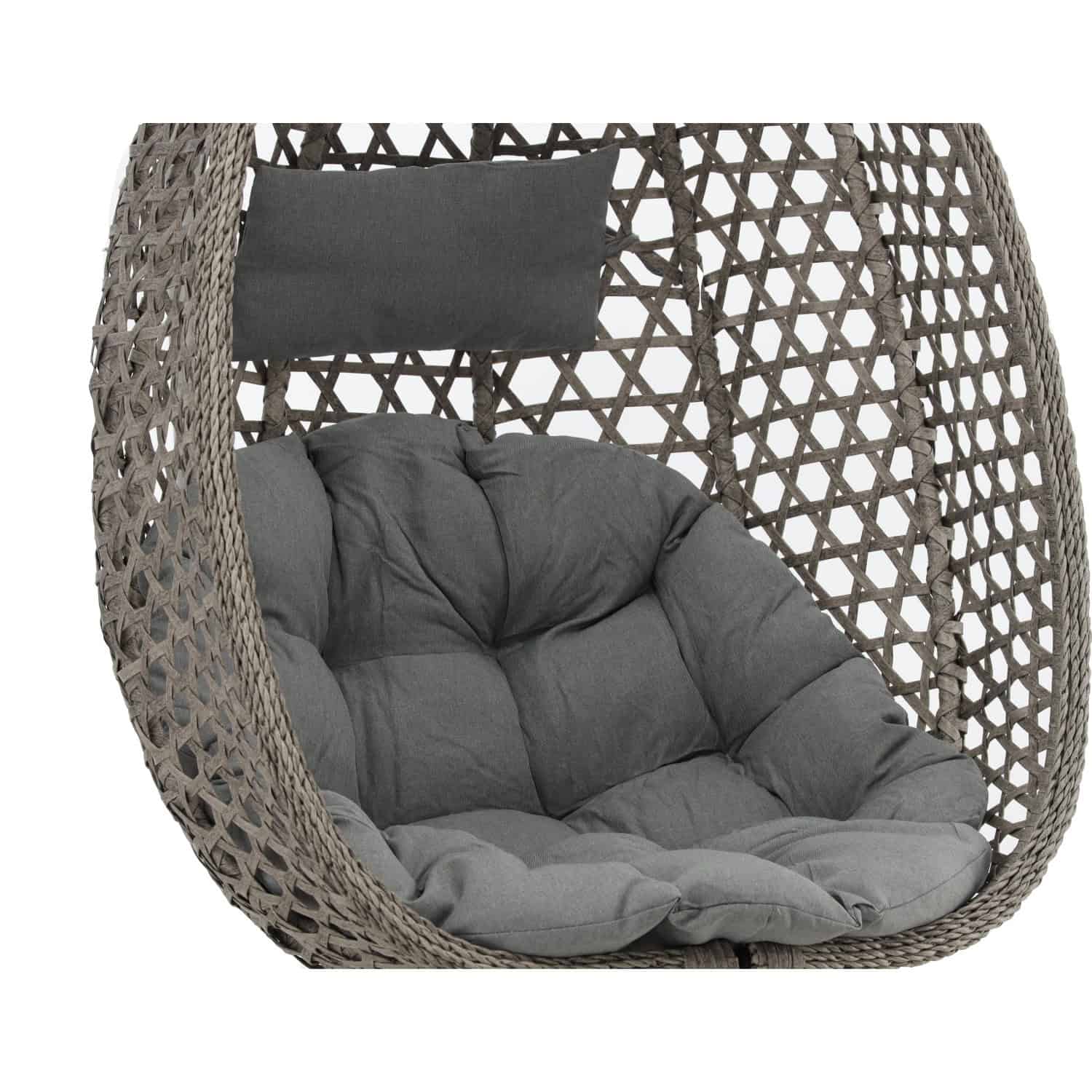 Leagan tip cuib suspendat, cu perna, cadru metalic si cos PE, 103x95x185 cm, gri Mob360