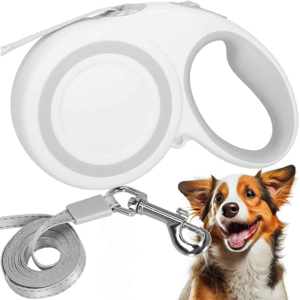 Lesa automata retractabila, pentru rase mari pana la 50kg, 500 cm, alb gri Mob360