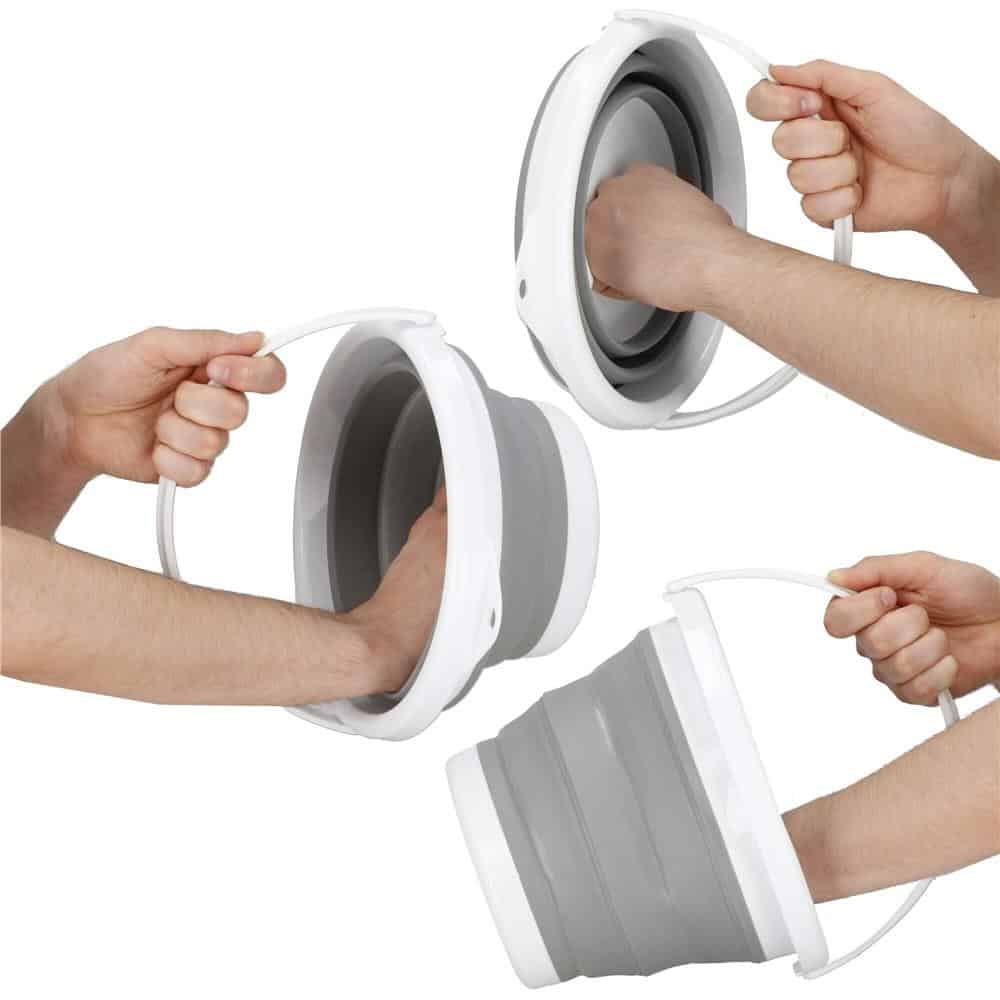 Material: plastic + silicon Culoare: gri/alb Capacitate: 5L Forma: rotunda Diametru total: 25 cm Inaltime cand este desfasurat: 18,5 cm Produsele din silicon au o gama larga de aplicatii. Structura acordeonului face depozitarea mult mai usoara. Sunt perfecte pentru camping si viata de zi cu zi. Consultati lista bogata de avantaje ale produselor noastre! Structura acordeonului Sistem foarte rapid de desfasurare si pliere Gama larga de aplicatii Ultra usor de transportat si depozitat Maner profilat in partea inferioara a galetii Fabricat din materiale solide si durabile Prevazut cu maner de agatat Maner confortabil de transport care se potriveste bine in mana Materialul siliconic si designul bine gandit ne-au permis sa realizam o structura asemanatoare acordeonului. Galeata este echipata cu un sistem rapid de pliere si desfasurare care va va lua doar cateva secunde. Cand este pliat, ocupa putin spatiu, astfel incat il puteti depozita aproape oriunde. Galeata in sine este un produs extrem de universal, dar produsul nostru se remarca pe piata datorita proprietatilor sale excelente. Galeata este fabricata din plastic rezistent si un strat gros de silicon, asa ca va va servi foarte mult timp. Dar asta nu este tot, le-am dotat cu detalii demne de remarcat precum: Maner profilat in partea inferioara – faciliteaza eliminarea lichidului din galeata Maner confortabil de transport Carlig pentru agatat – depozitati aproape oriunde