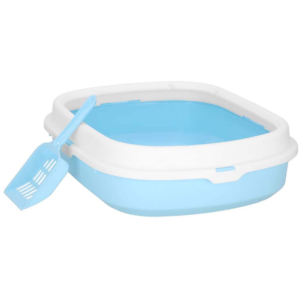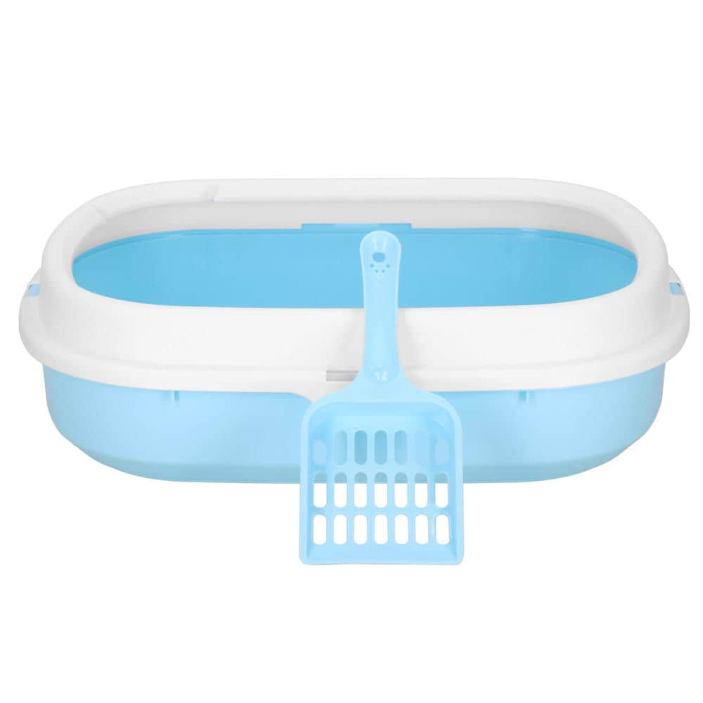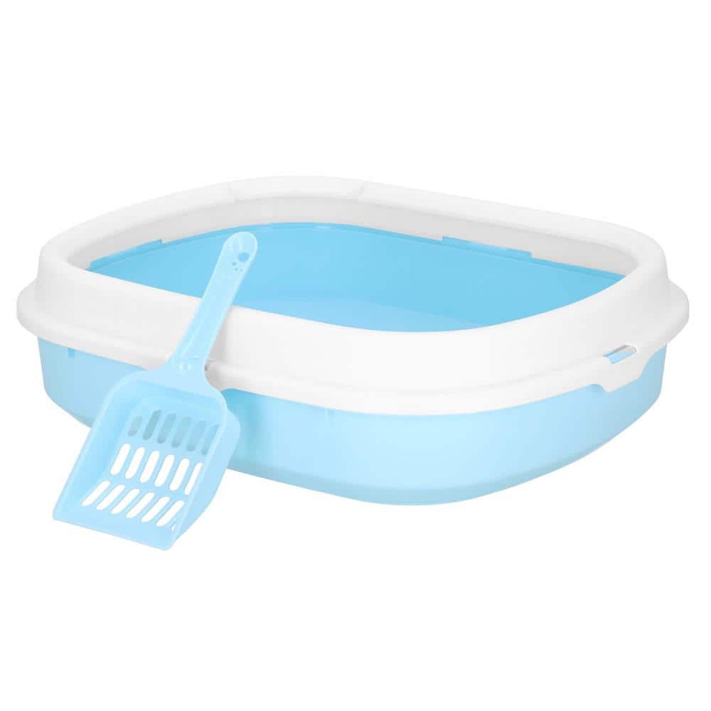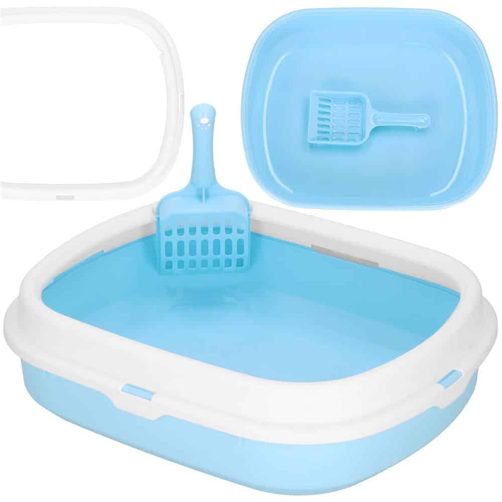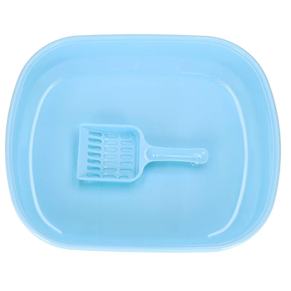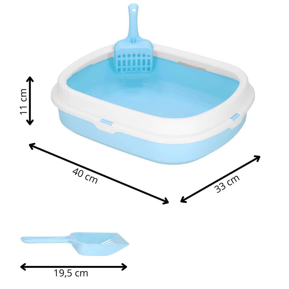 Litiera pentru pisici cu lopatica, 40x33x11 cm, albastru si alb Mob360