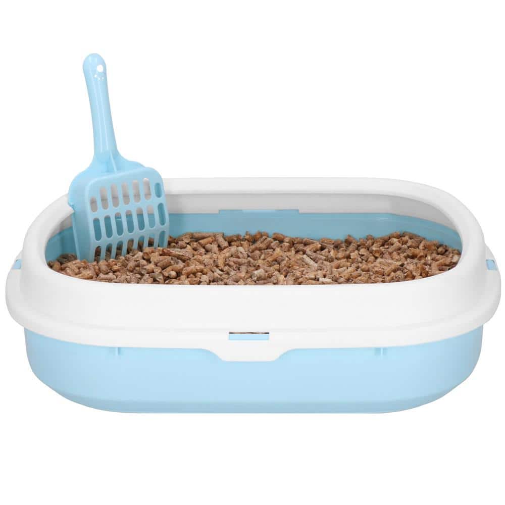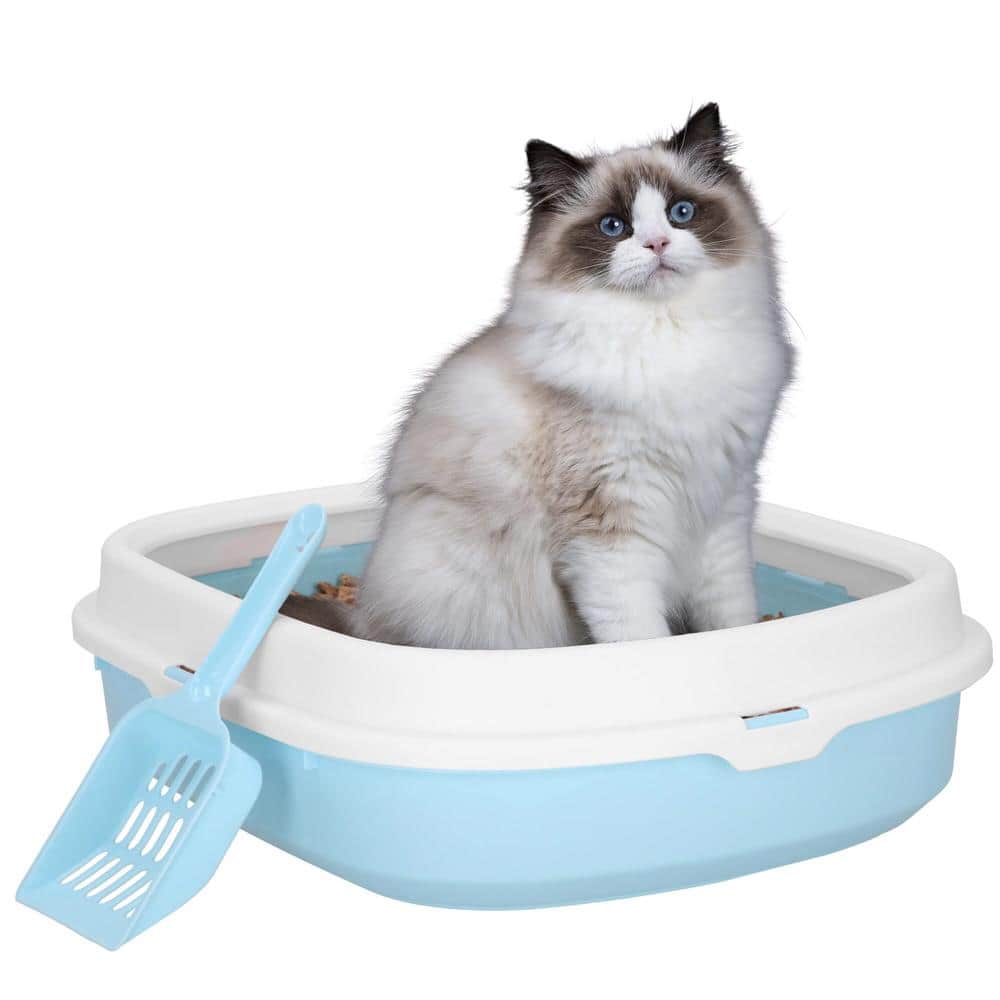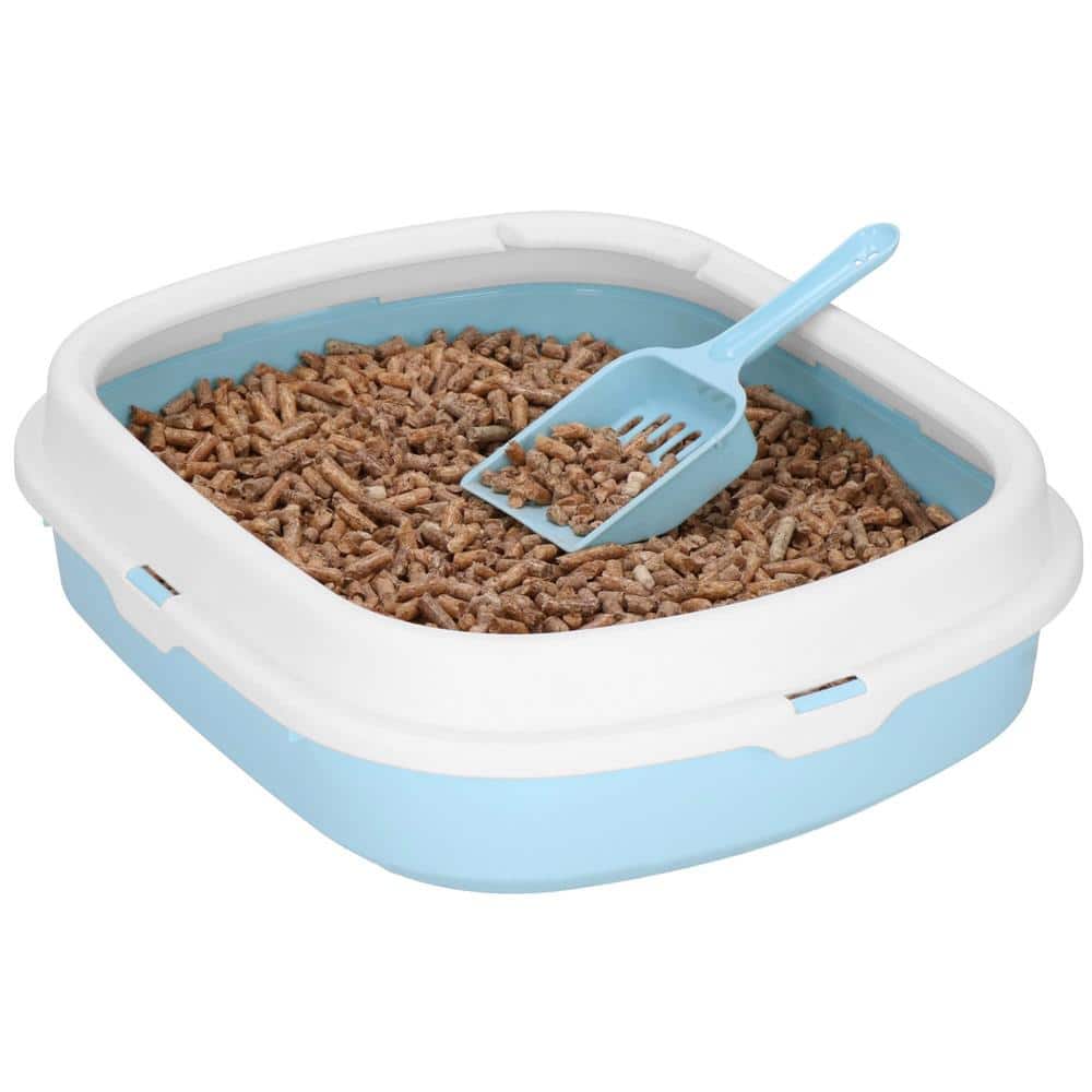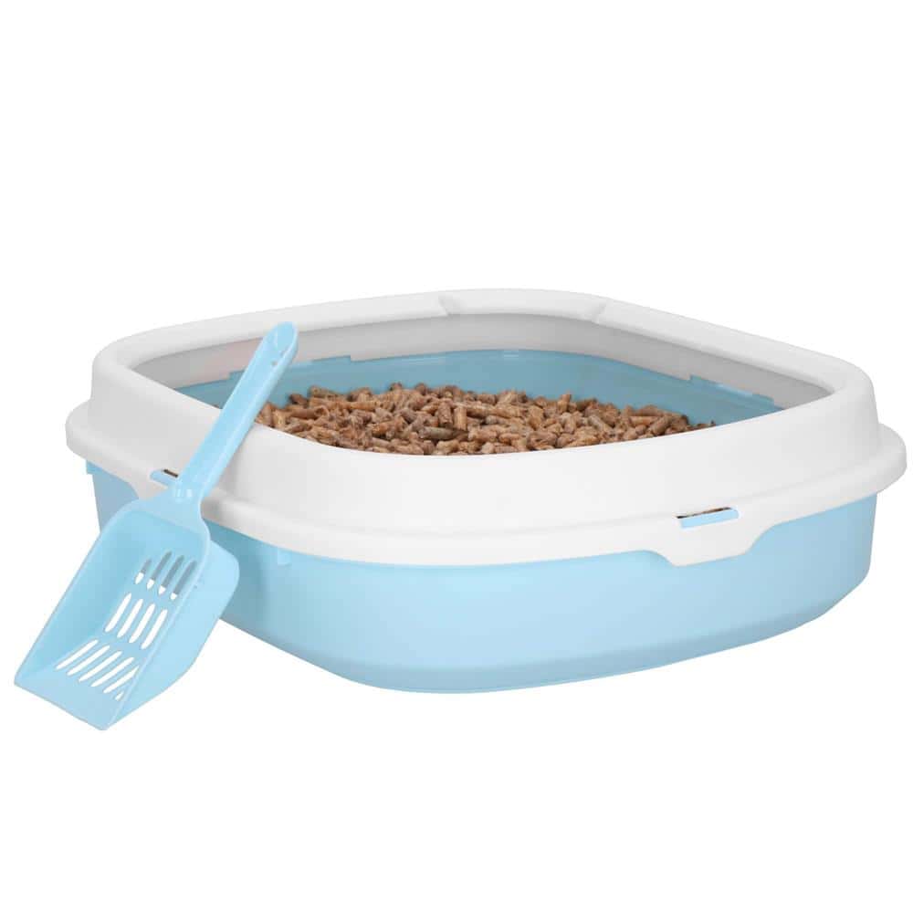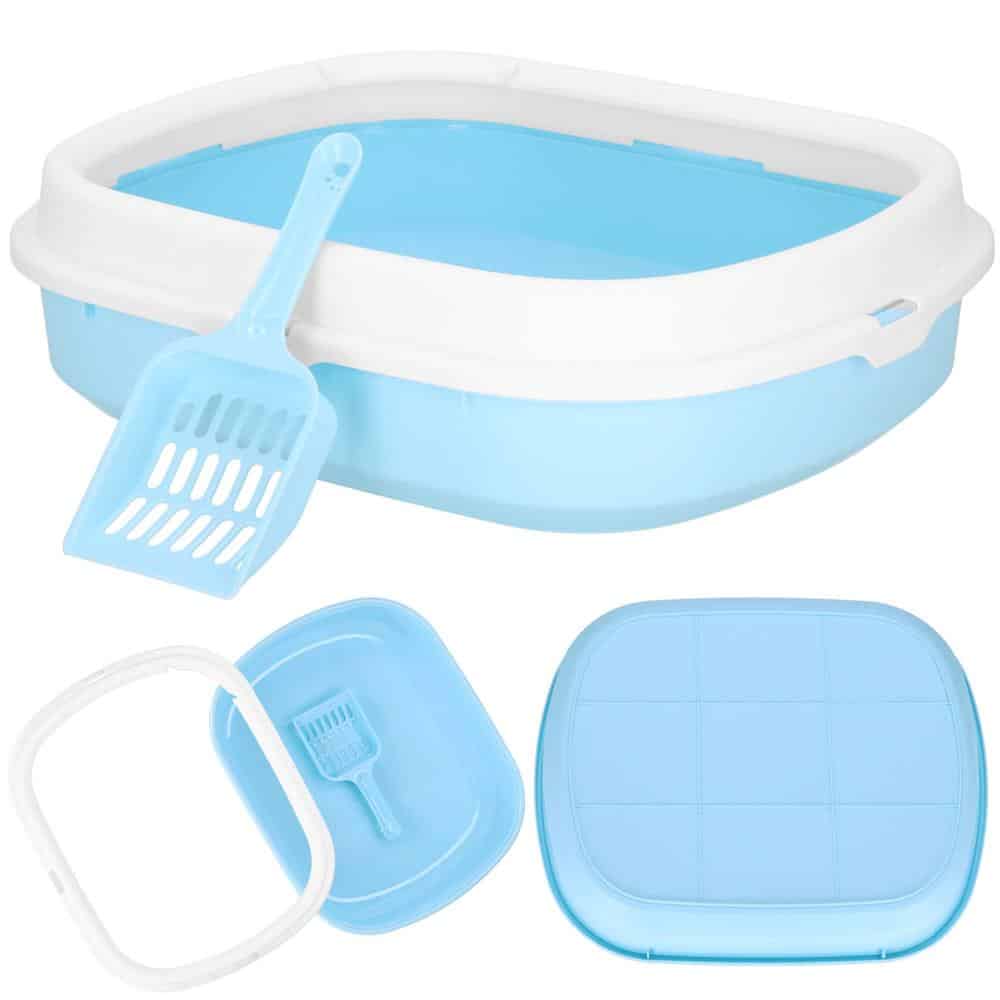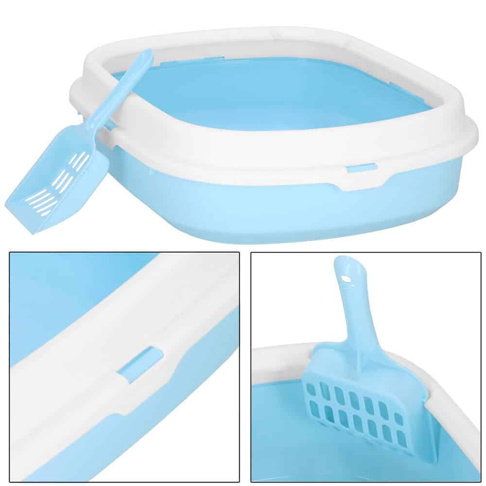 Litiera pentru pisici cu lopatica, 40x33x11 cm, albastru si alb Mob360