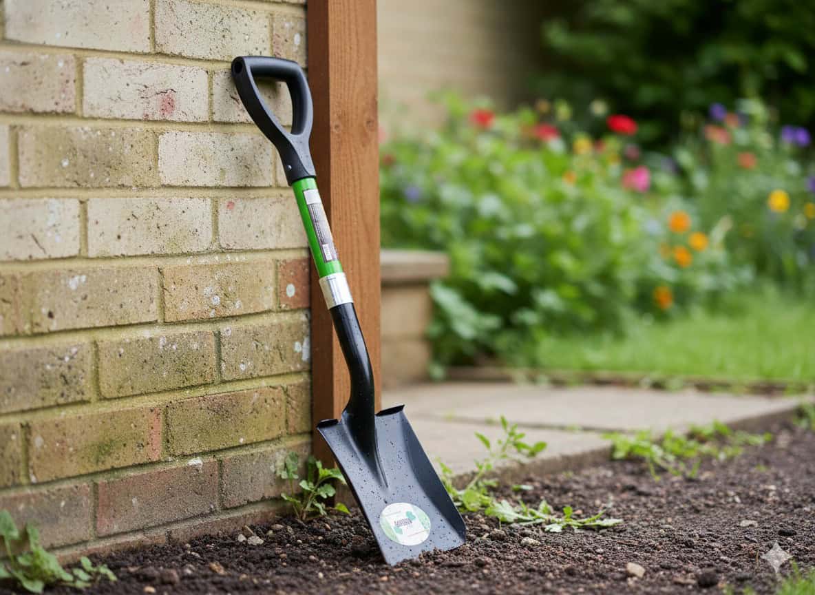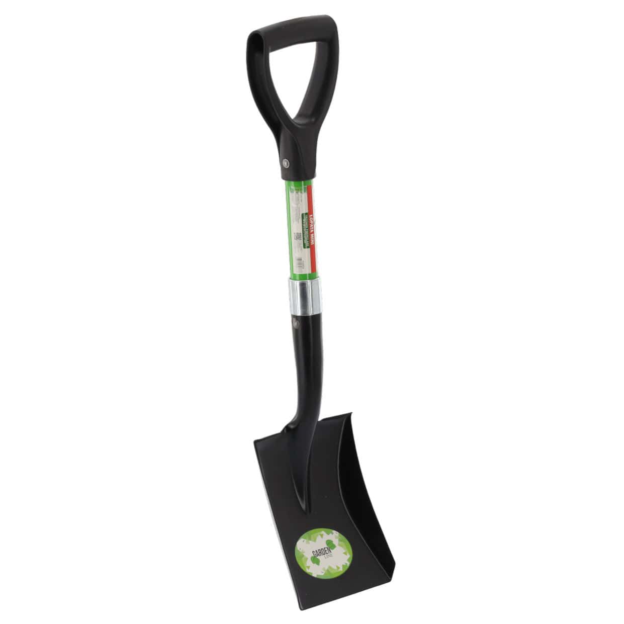 Lopata mini cu lama dreapta, maner fibra de sticla, cap metalic, 67 cm, maner tip D, verde si negru Mob360