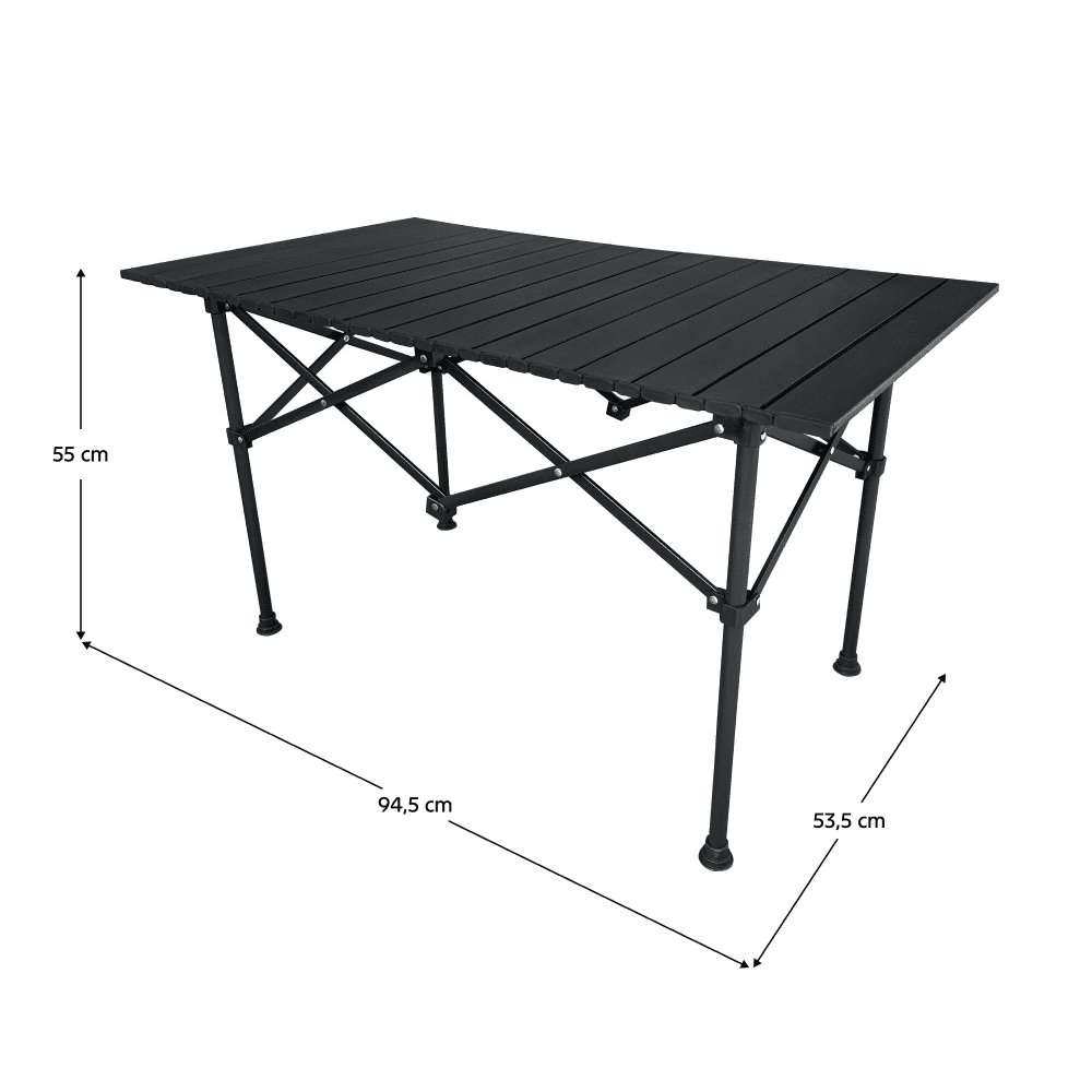 Material: oţel Culoare: neagră Dimensiuni masă / pliată (LxAxÎ): 20,5x11x59,5 cm Dimensiuni masă / desfăşurată (LxAxÎ): 94,5×53,5×55 cm Capacitatea de încărcare a mesei: 20 kg Greutate: 4,8 kg Furnizată cu geantă de transport Furnizată cu capace din plastic Uşoară şi practică Pliabilă Portabilă Uşor de manevrat şi depozitat Potrivită pentru utilizare în exterior Pentru vacanţă, excursie cu maşina, cu cortul, grătar, festivaluri, camping, picnic, plajă, pentru terasă, gradină, bucătărie de vară Furnizată dezasamblată