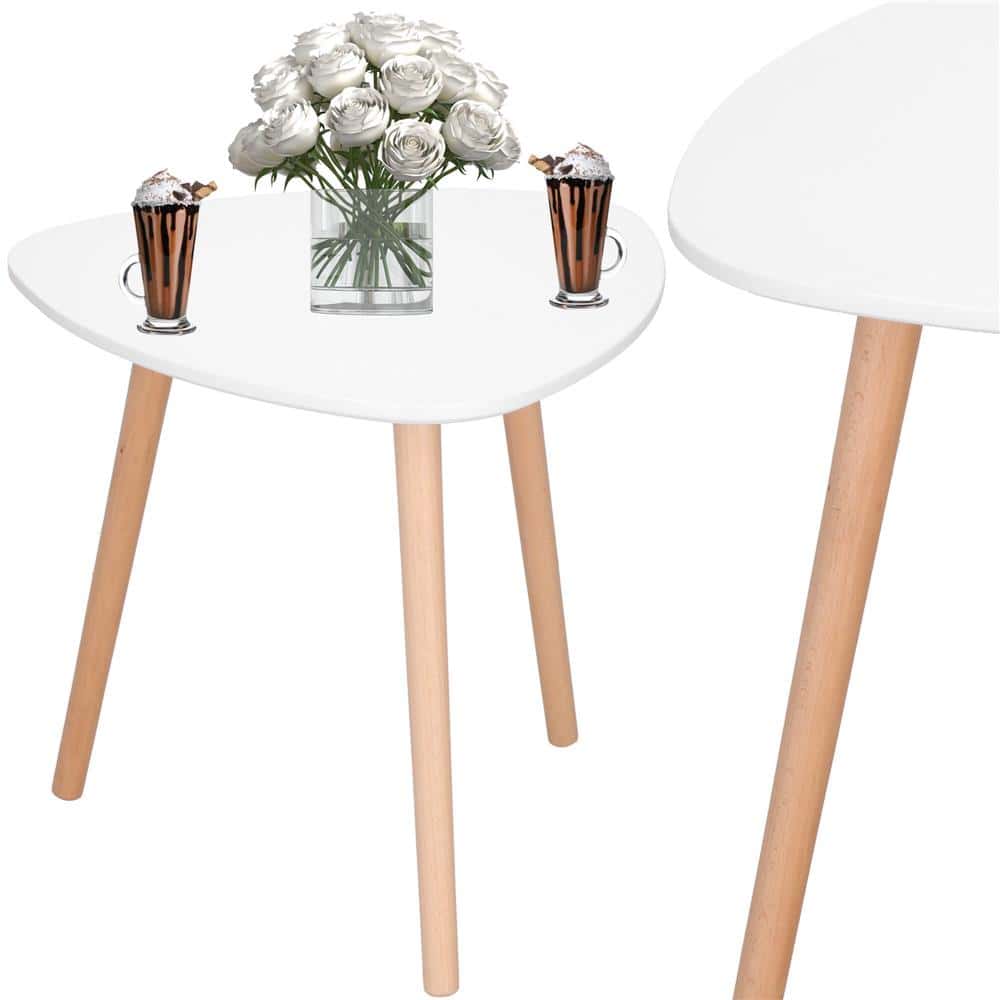 Masa de cafea, ovala, diametru 50 cm, inaltime 48 cm, Blat MDF, Picioare lemn, Alb Mob360