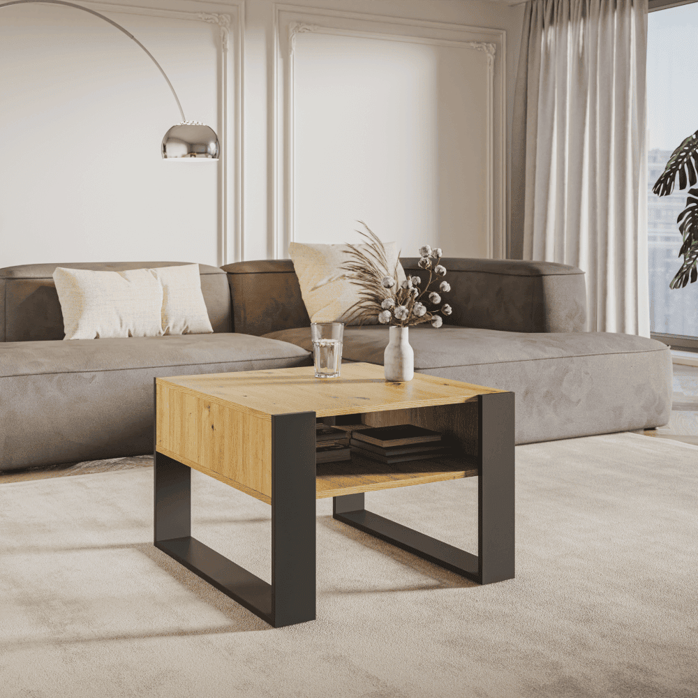 Masă de cafea, stejar artisan / neagră, CARA 2