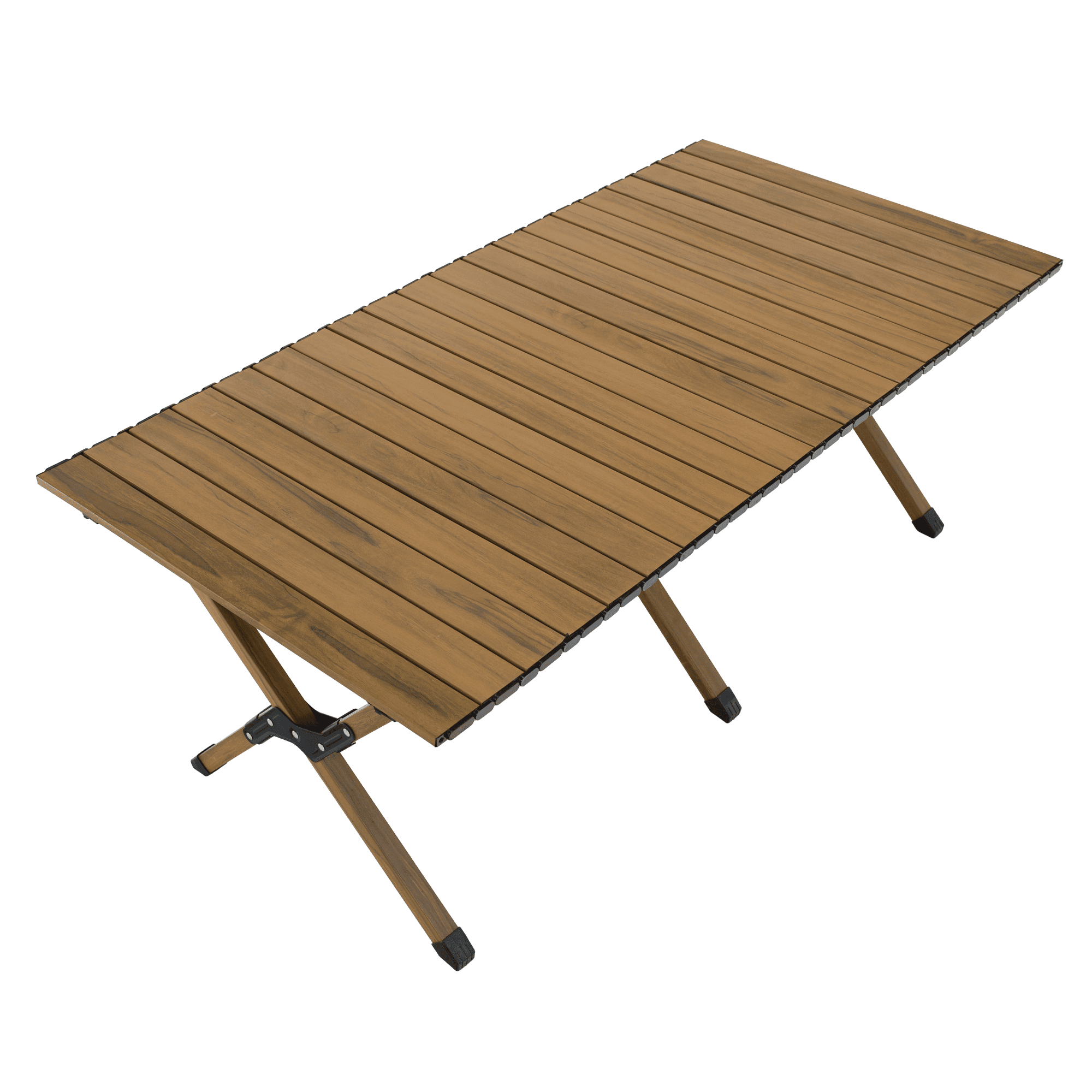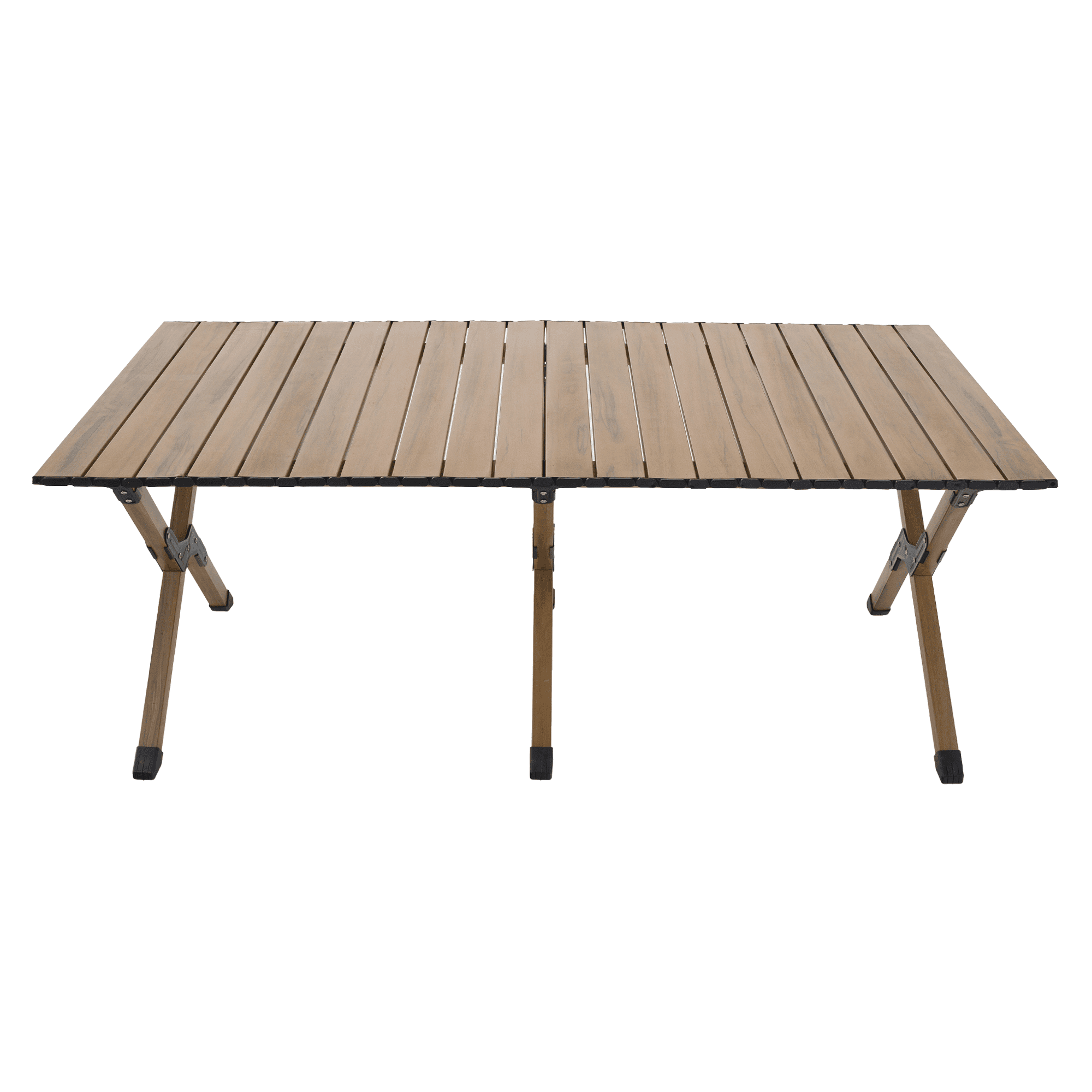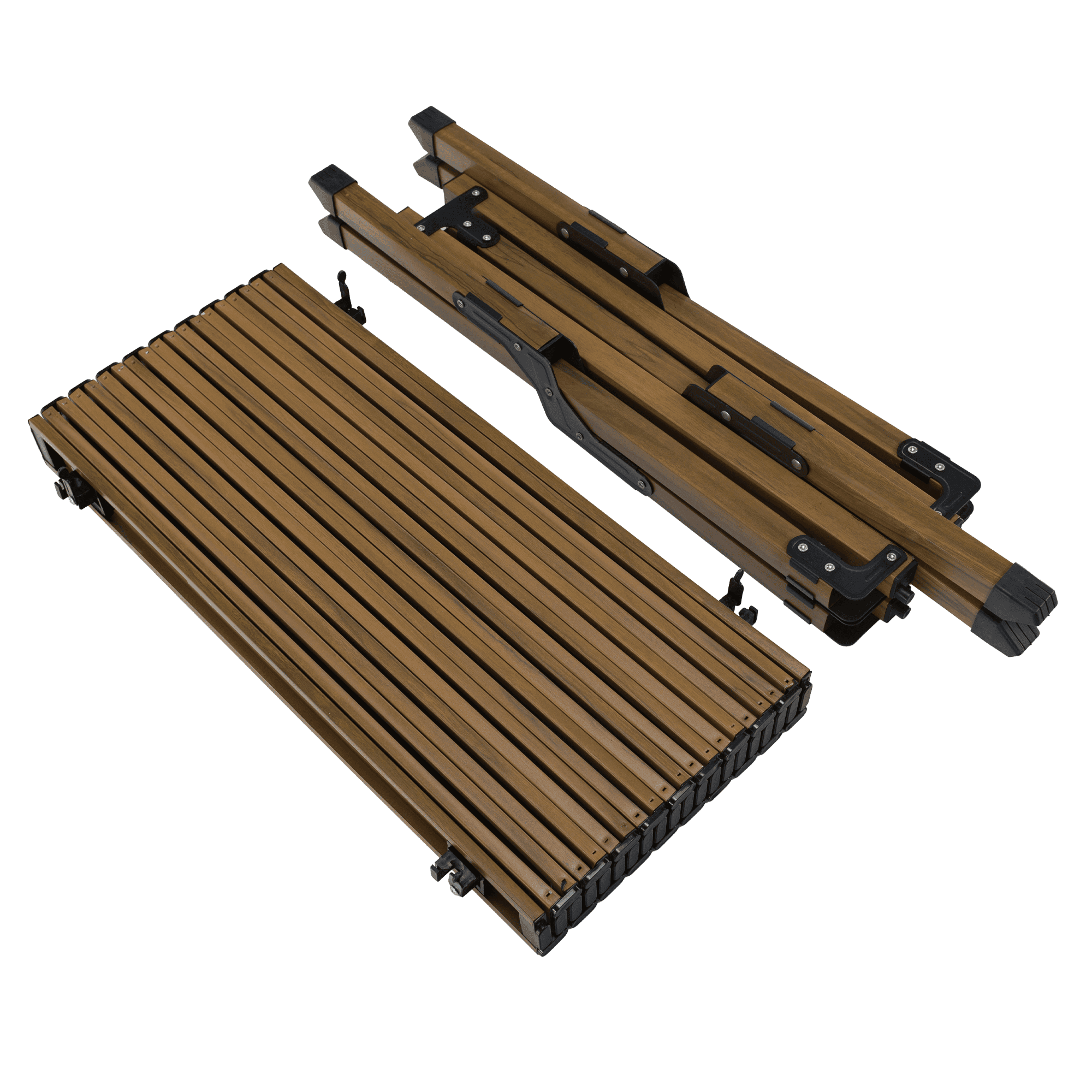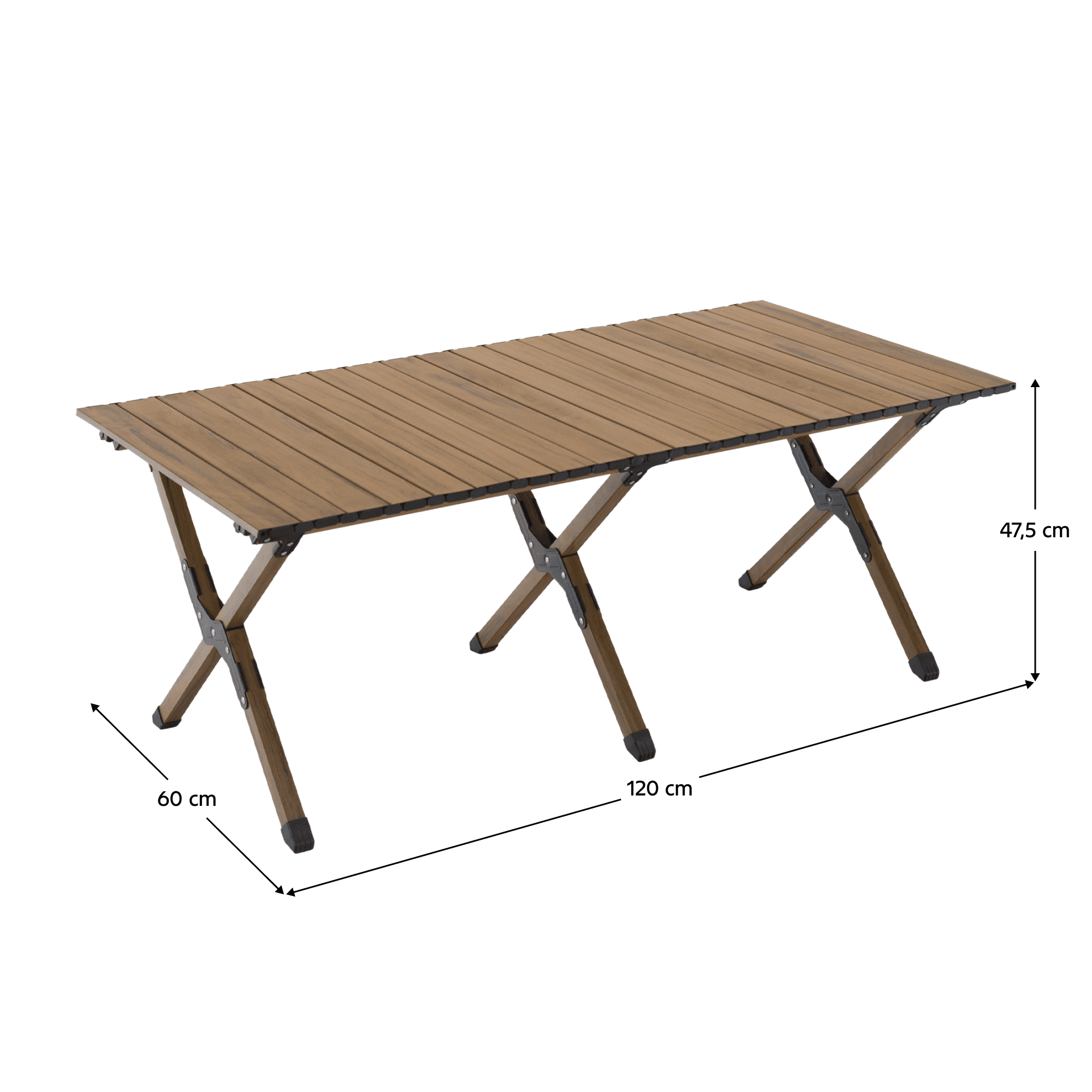 Material: oţel Culoare: maro cu model de imitaţie de lemn Dimensiuni masă / pliată (LxAxÎ): 71x21x16,5 cm Dimensiuni masă / desfăşurată (LxAxÎ): 120x60x47,5 cm Capacitatea de încărcare a mesei: 30 kg Greutate: 5 kg Pliabilă Portabilă Din construcţie solidă Uşor de manevrat şi depozitat Stabilă Capace din plastic pentru picioare Furnizată cu geantă de transport Potrivită pentru utilizare în exterior Pentru vacanţă, excursie cu maşina, cu cortul, grătar, festivaluri, camping, picnic, plajă, pentru terasă, grădină, bucătărie de vară Livrată dezasamblată