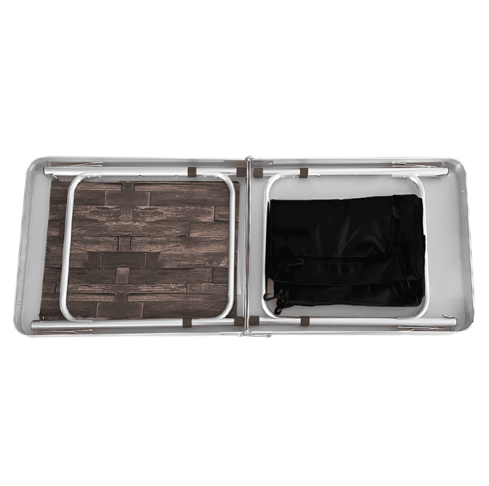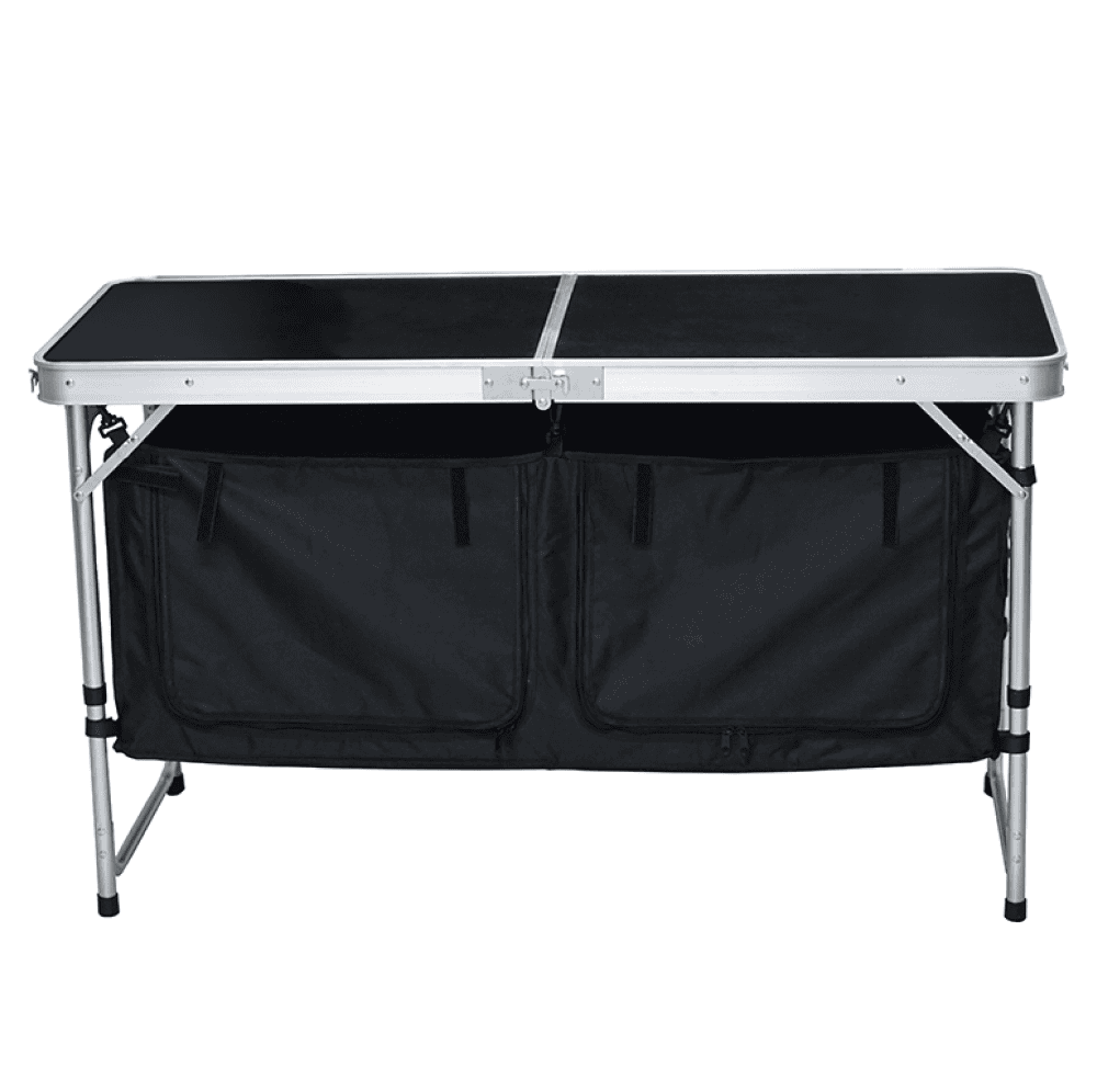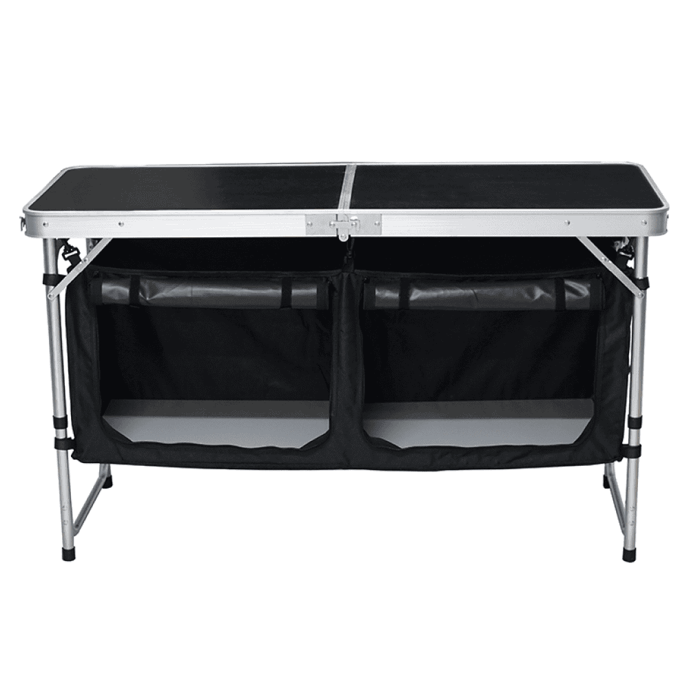 Material: aluminiu/MDF/ţesătură Culoare: gri/negru Dimensiuni masă desfăşurată (lxAxh): 120x47x54 cm Masa este reglabilă pe înălţime Înălţimea poate fi reglată pe trei niveluri Înălţime reglabilă: 54/60/70 cm Posibilitatea de a-l plia într-o cutie practică Dimensiuni masă pliată (lxAxh): 60x47x10 cm Livrat cu organizator Dimensiuni organizator (lxAxh): 105x40x40 cm 2x compartiment cu fermoar Dimensiuni compartiment (lxh): 46×33 cm Organizator pliabil Uşor şi practic Pliabil Portabil Uşor de manevrat şi depozitare Ideal pentru camping şi picnicuri Rezistent la intemperii Potrivit pentru 4 persoane Greutate: 6,5 kg Portanţa: 30 kg Livrat asamblat