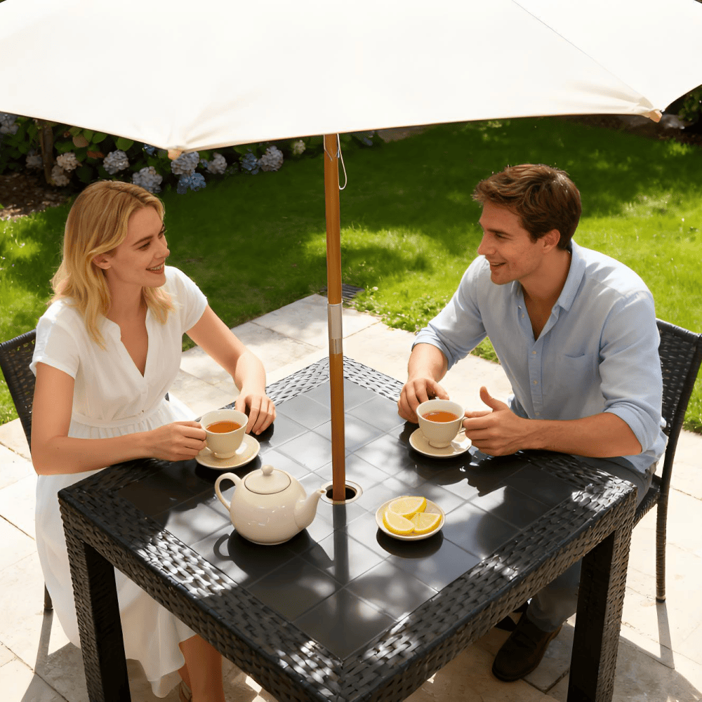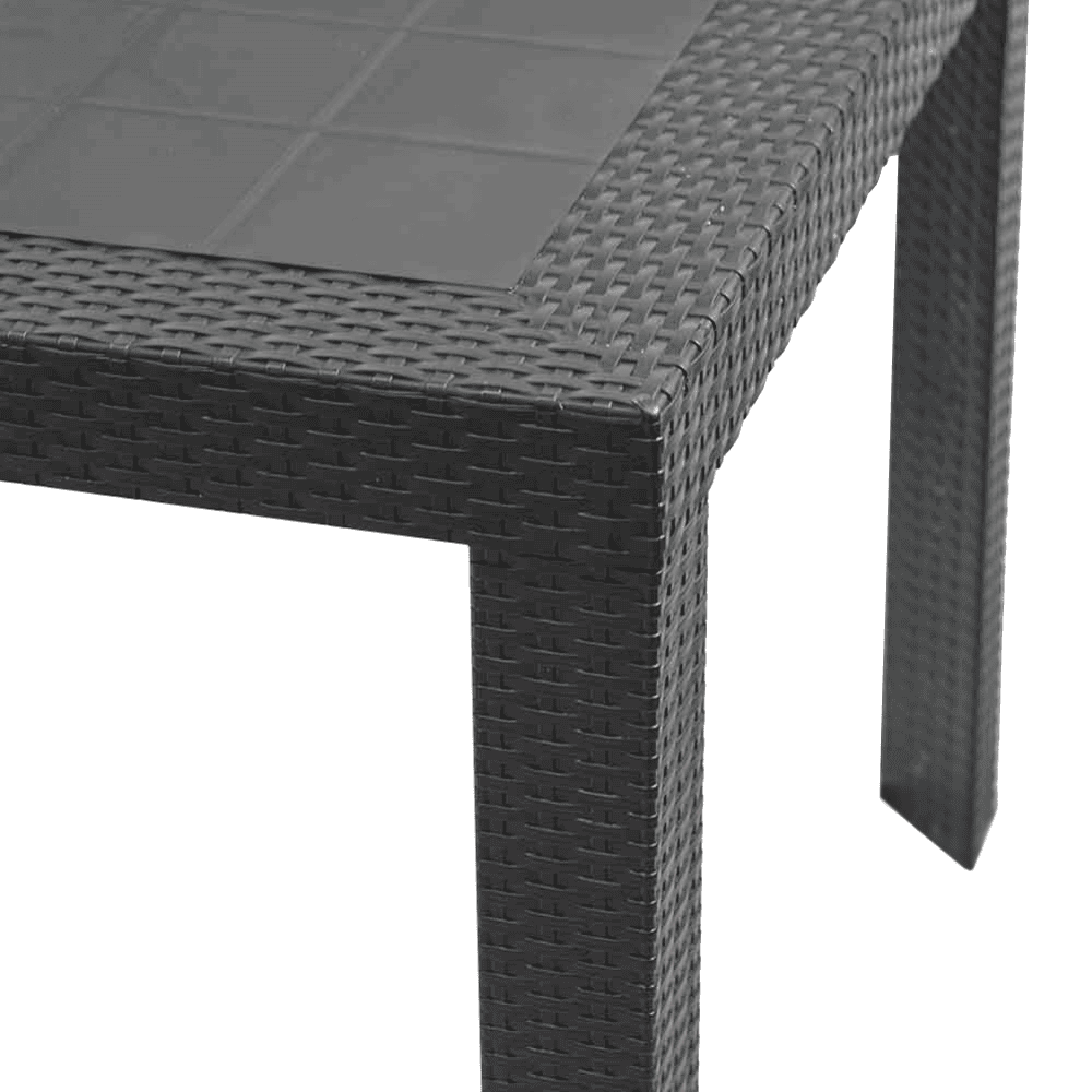 Material: plastic Culoare: antracit Dimensiuni (lxAxh): 79x79x72 cm Masă de grădină Accesorii servire masă pentru 4 persoane Simplu Practic Pe picioare Cu orificiu pentru umbrelă de soare