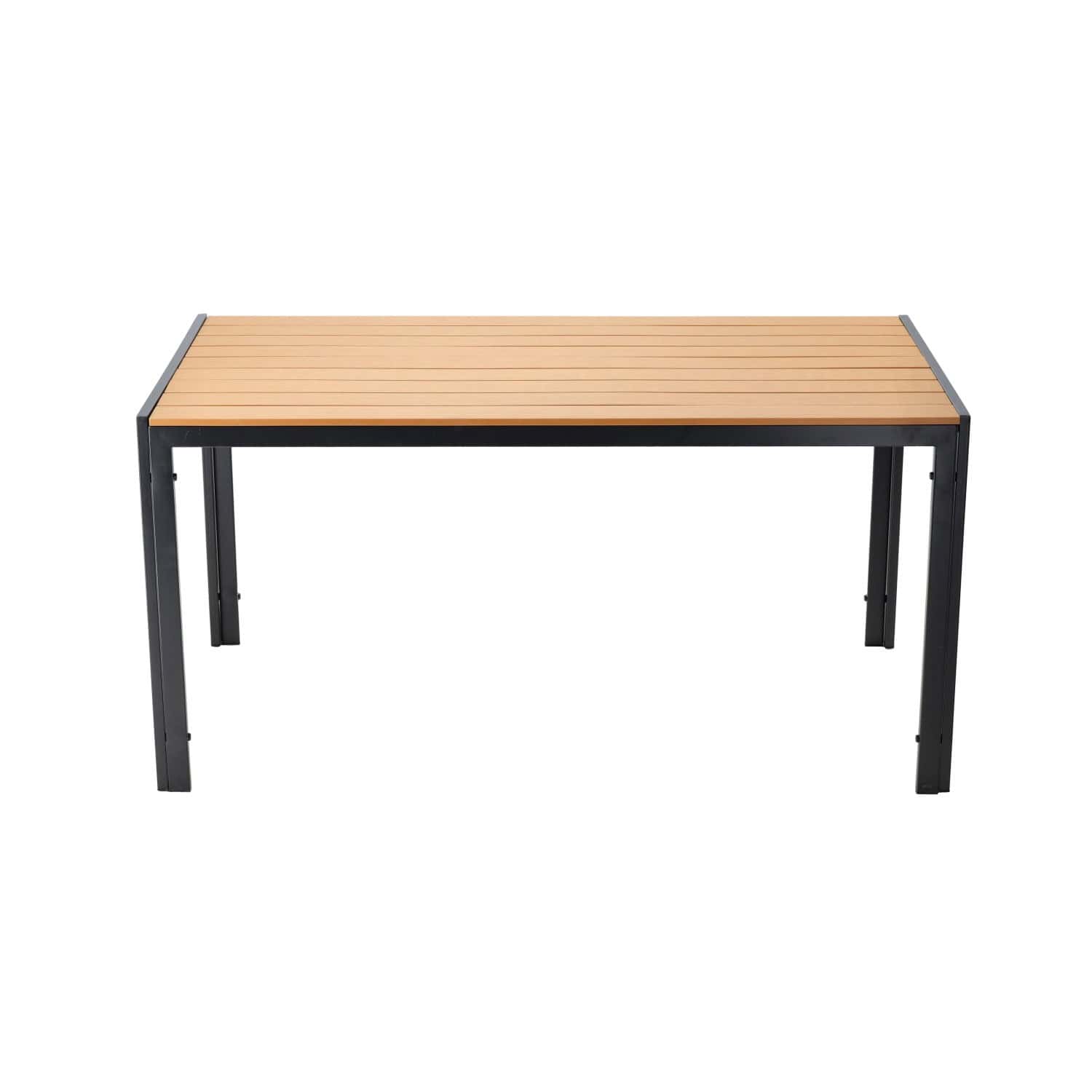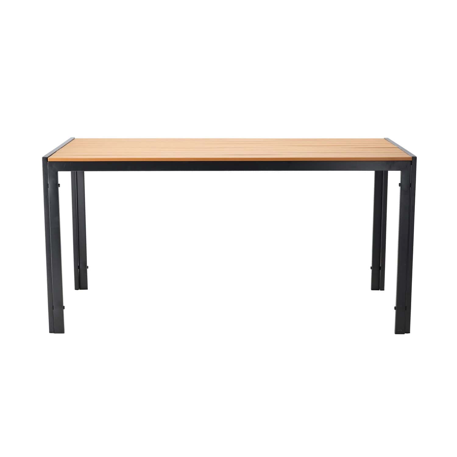 Masa de gradina, cadru otel, blat polywood cu aspect lemn, 150x90x73 cm, negru si maro natur Mob360