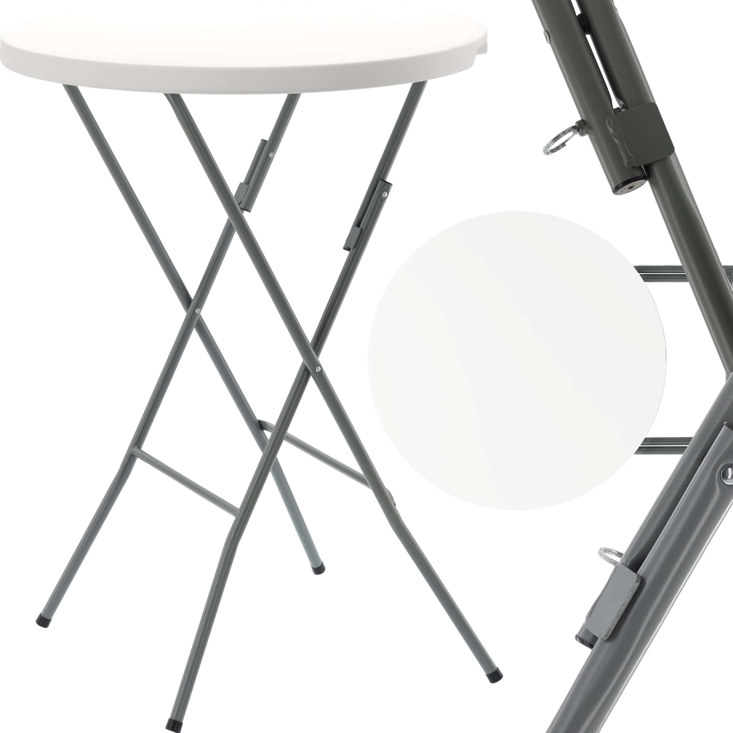 Diametru: 80 cm Inaltime: 110 cm Profil cadru: 22 x 1,0 mm Material blat: HDPE Culoare: alb Cadru: otel Masa de gradina functionala si eleganta este o alegere perfecta pentru gradina, balcon, terasa sau camping. Datorita constructiei sale solide si suprafetei HDPE rezistente la intemperii, asigura durabilitate si confort de utilizare.Cadrul din otel cu un profil de 22 x 1,0 mm garanteaza stabilitate si longevitate.Blatul este realizat din HDPE de inalta calitate si este rezistent la umiditate, radiatii UV si murdarie.Plierea si desfasurarea rapida il fac usor de transportat si depozitat.Functioneaza bine in gradina, la petreceri, evenimente, camping si intalniri in aer liber.Usor de curatat, doar stergeti cu o carpa umeda.