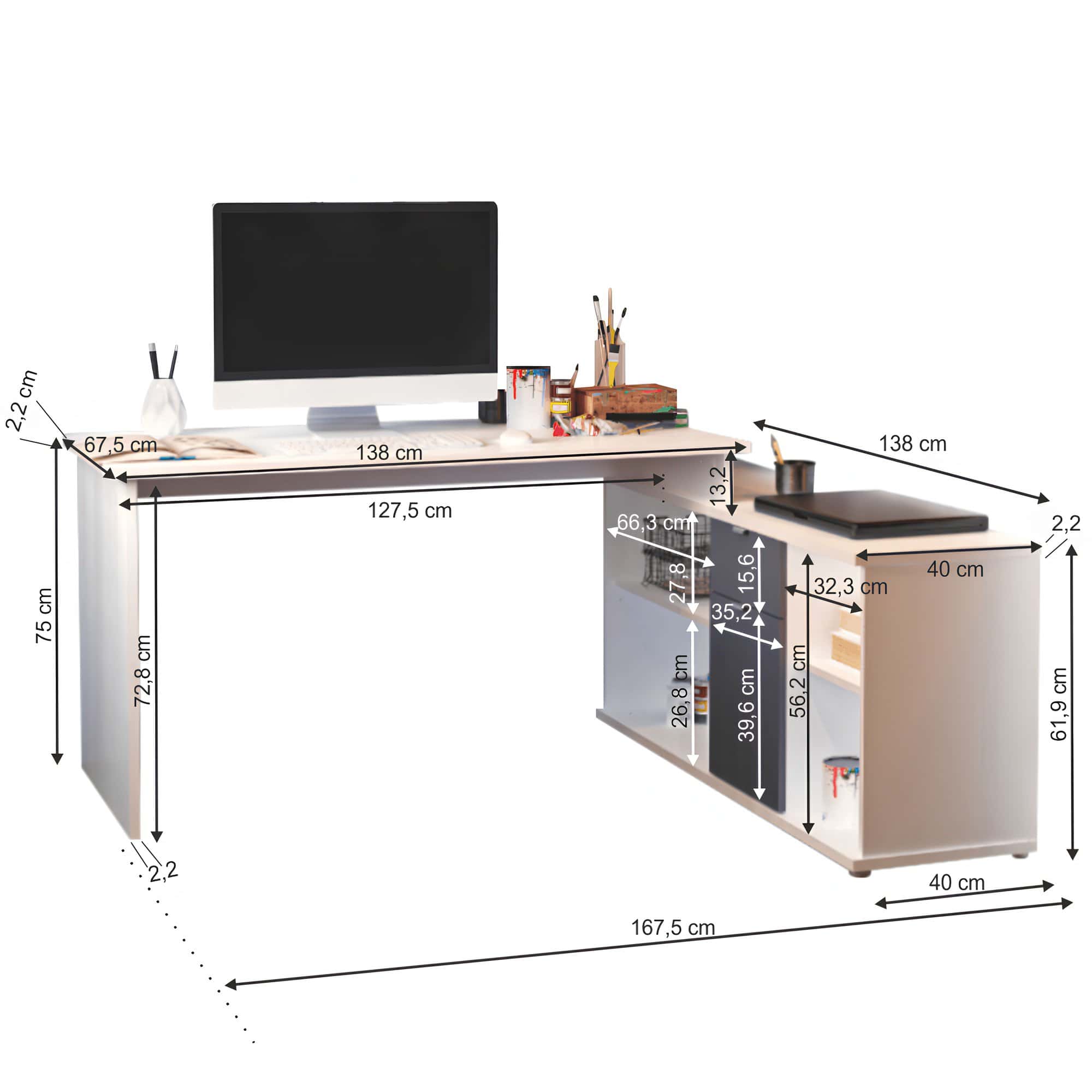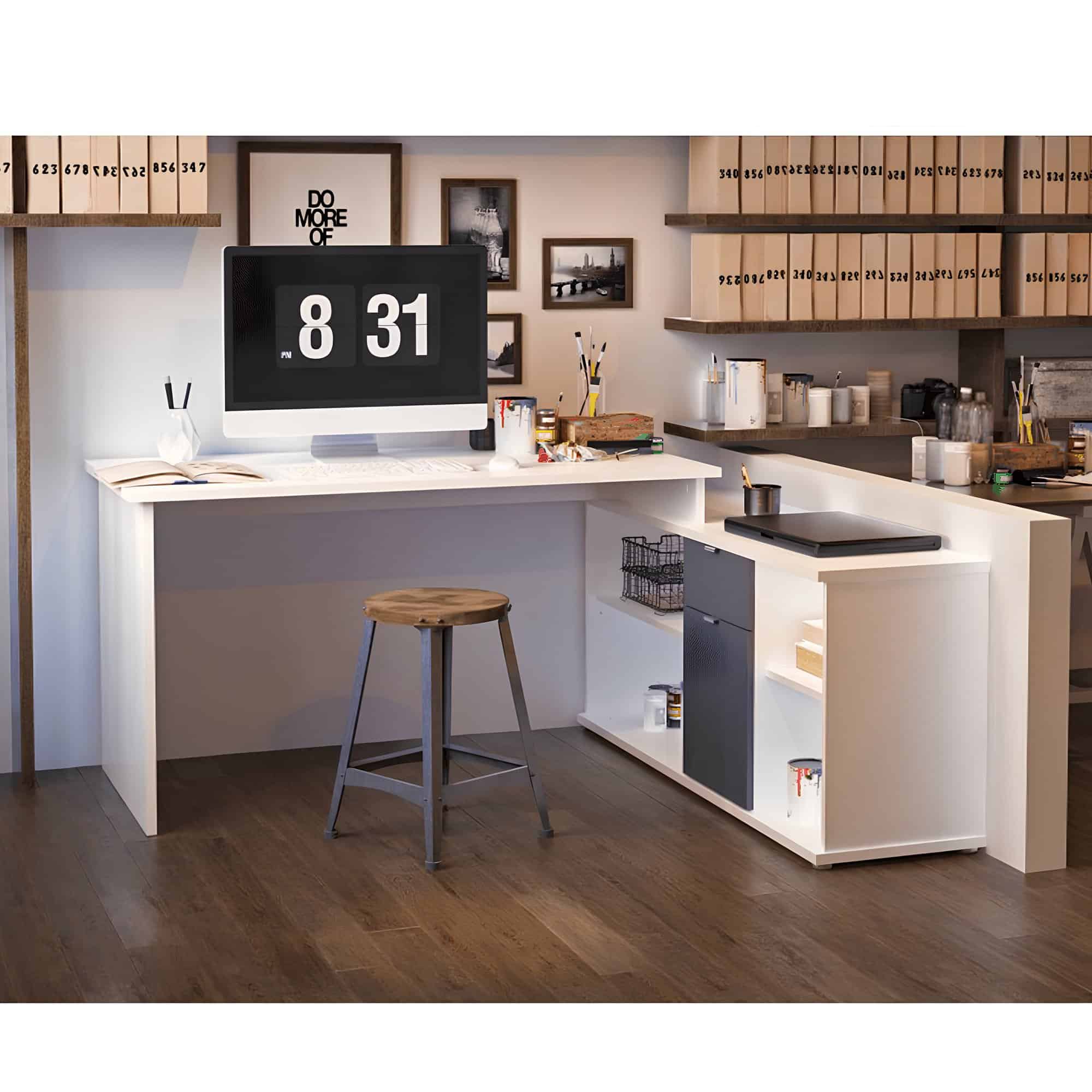 Masă PC de colţ cu rafturi şi dulap cu sertar DALTON 2 NEW,