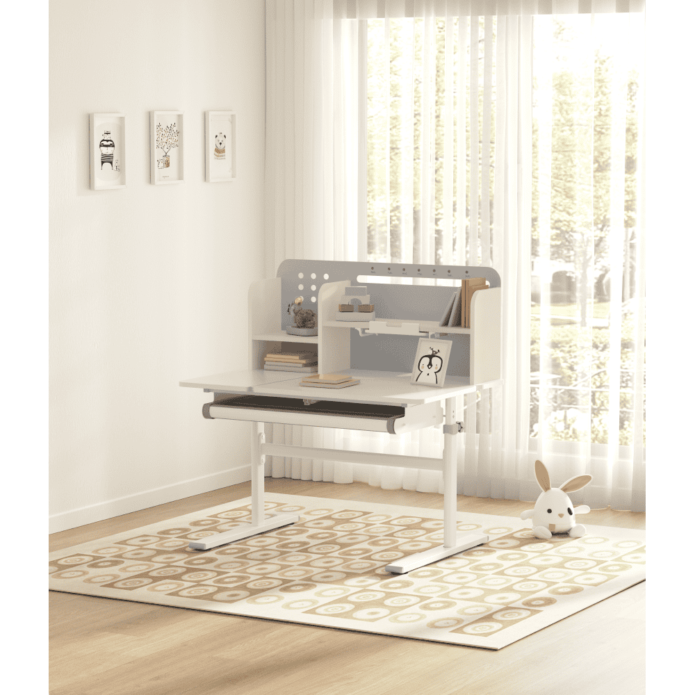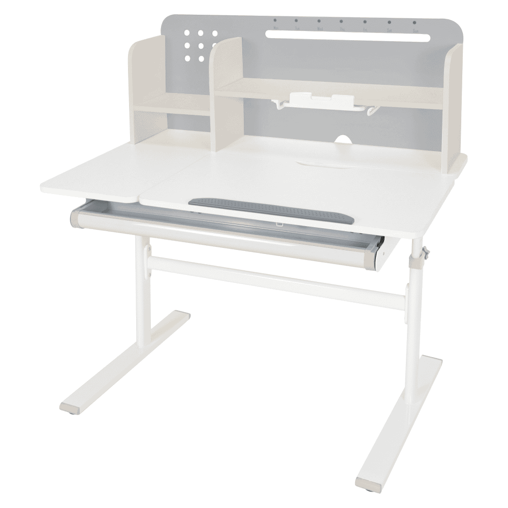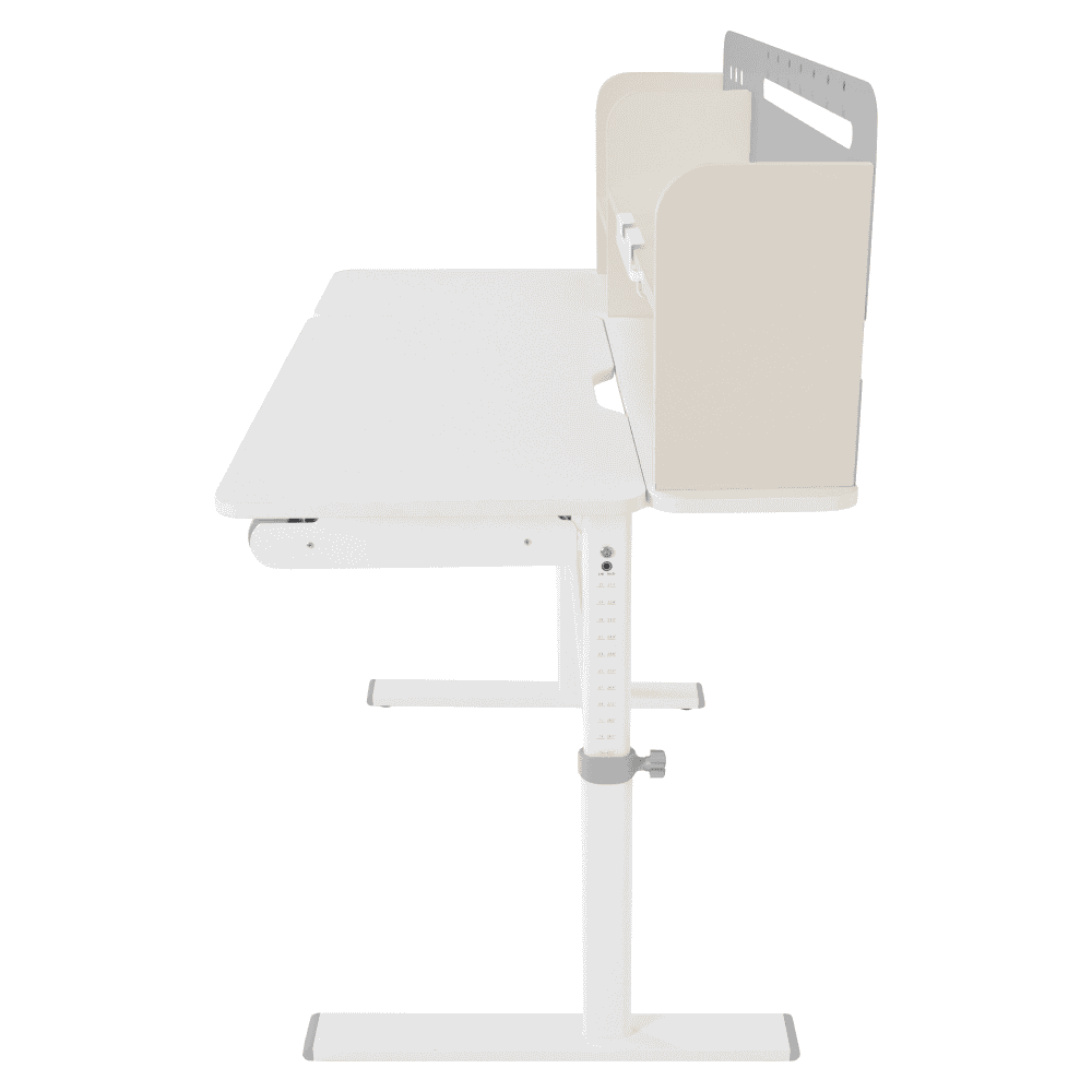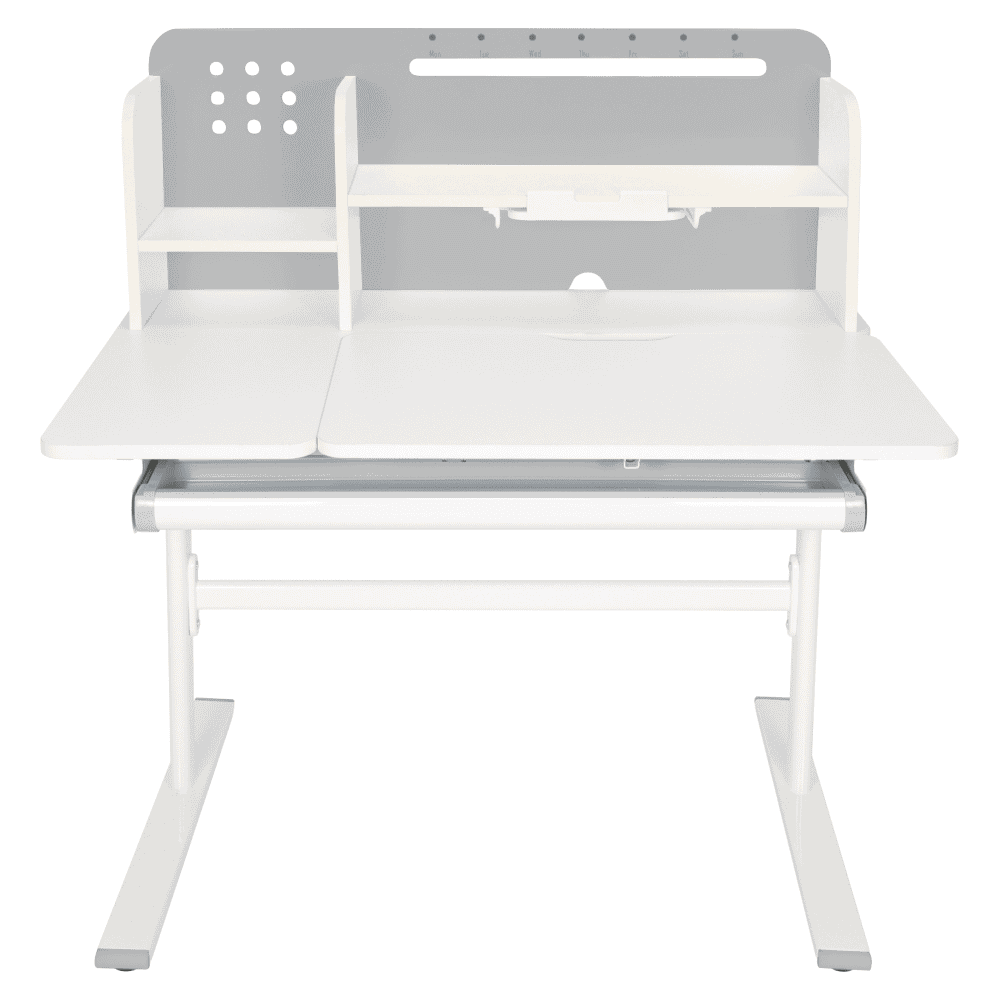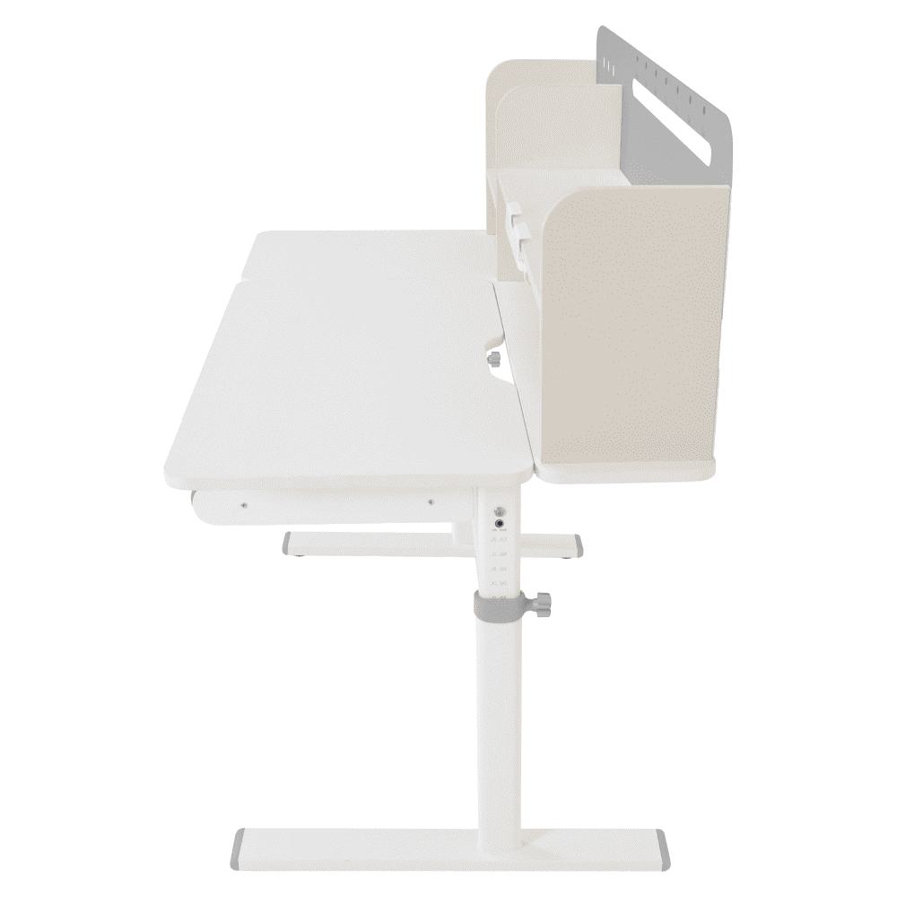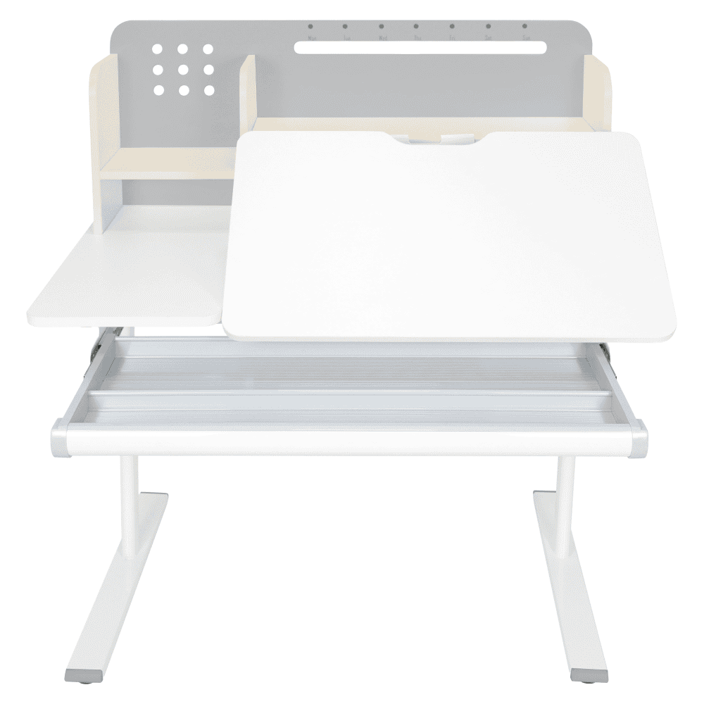 Material: MDF înfoliat / plastic / metal Grosimea materialului MDF: 1,5 cm Culoare: gri/alb Blatul mesei este cu margini ABS Dimensiunile mesei (lxAxh): 100x60x91,4-111,4 cm Dimensiunile bazei (lxA): 89×61 cm Adâncimea blatului mesei: 40 cm Înălţimea blatului de lucru: 55-75 cm Înclinare reglabilă a blatului de lucru Înclinare a blatului de lucru: 0-40 Lăţime reglabilă a blatului: 70 cm Portanţă masă: 70 kg Înălţime reglabilă a mesei Reglarea manuală a înălţimii mesei cu o manivelă Posibilitatea de a monta mânerul pe partea dreaptă sau stângă Înălţimea mesei şi înclinarea suprafeţei de lucru pot fi reglate cu ajutorul pistonului de gaz şi al pârghiei Sertar spaţios cu compartimente Portanţa sertarului: 10 kg Panoul din spate include poliţe, un suport pentru cărţi şi un orificiu pentru trecerea cablurilor Dimensiuni suport pentru cărţi (lxh): 23,3×12 cm Bandă magnetică cu marcaj de zi Potrivit de la 3 la 14 ani Pentru copii şi adolescenţi la o înălţime de 100 – 175 cm Livrat dezasamblat