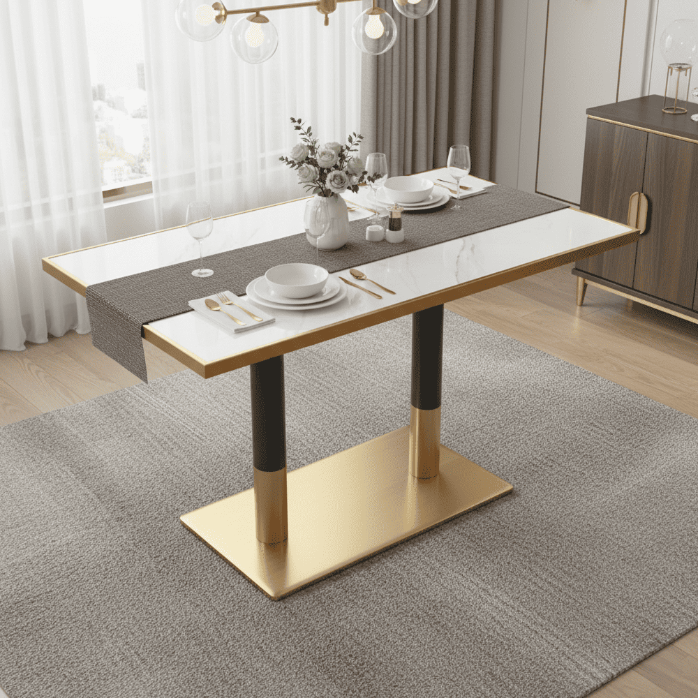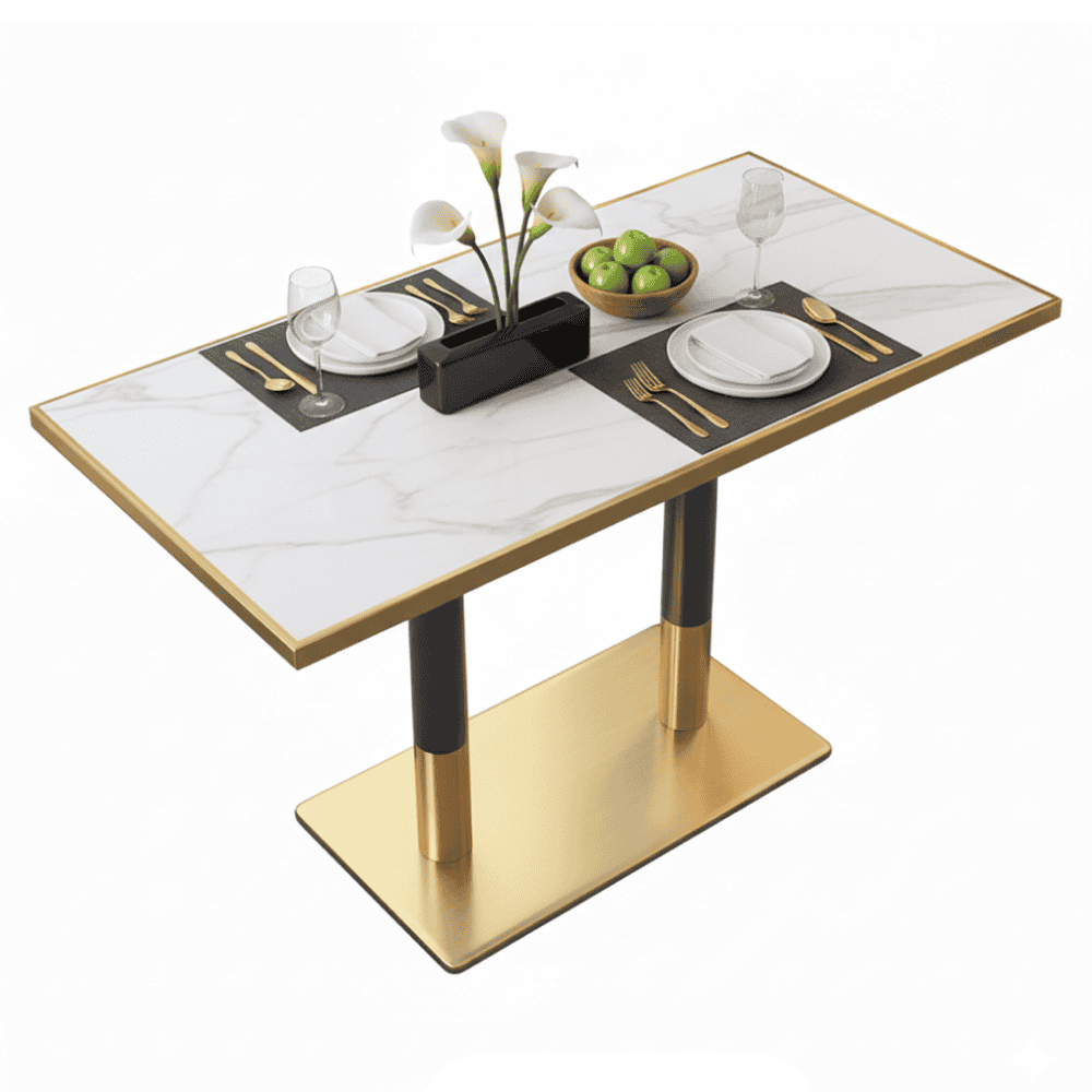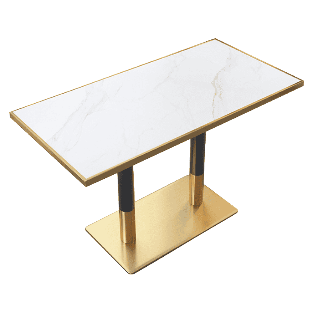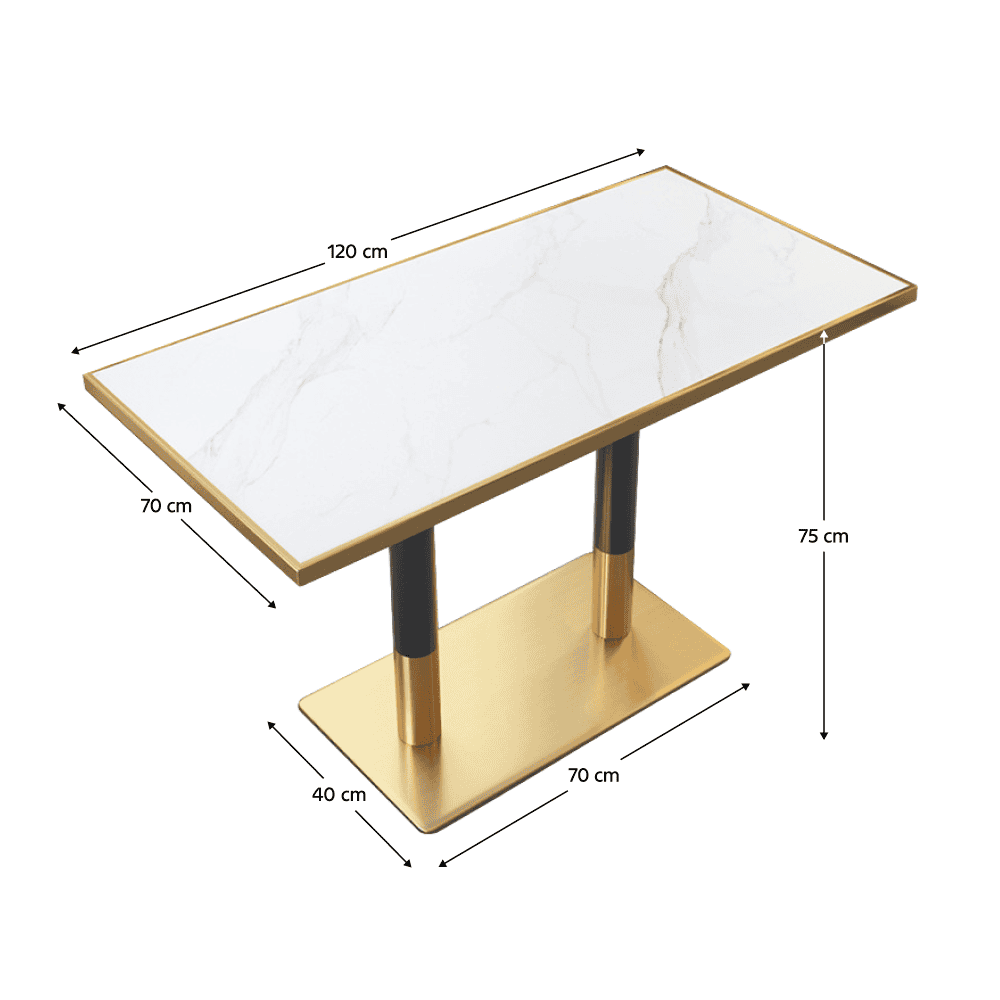 Masă de sufragerie bistro, marmură albă/negru/aurie, 120×70 cm, DARIAN