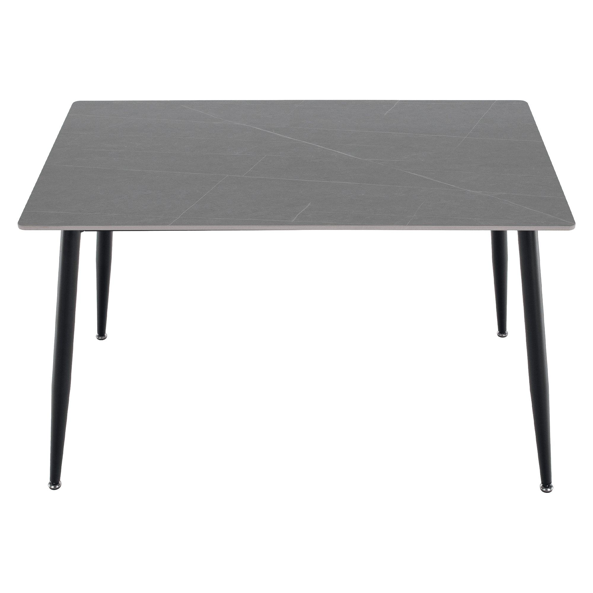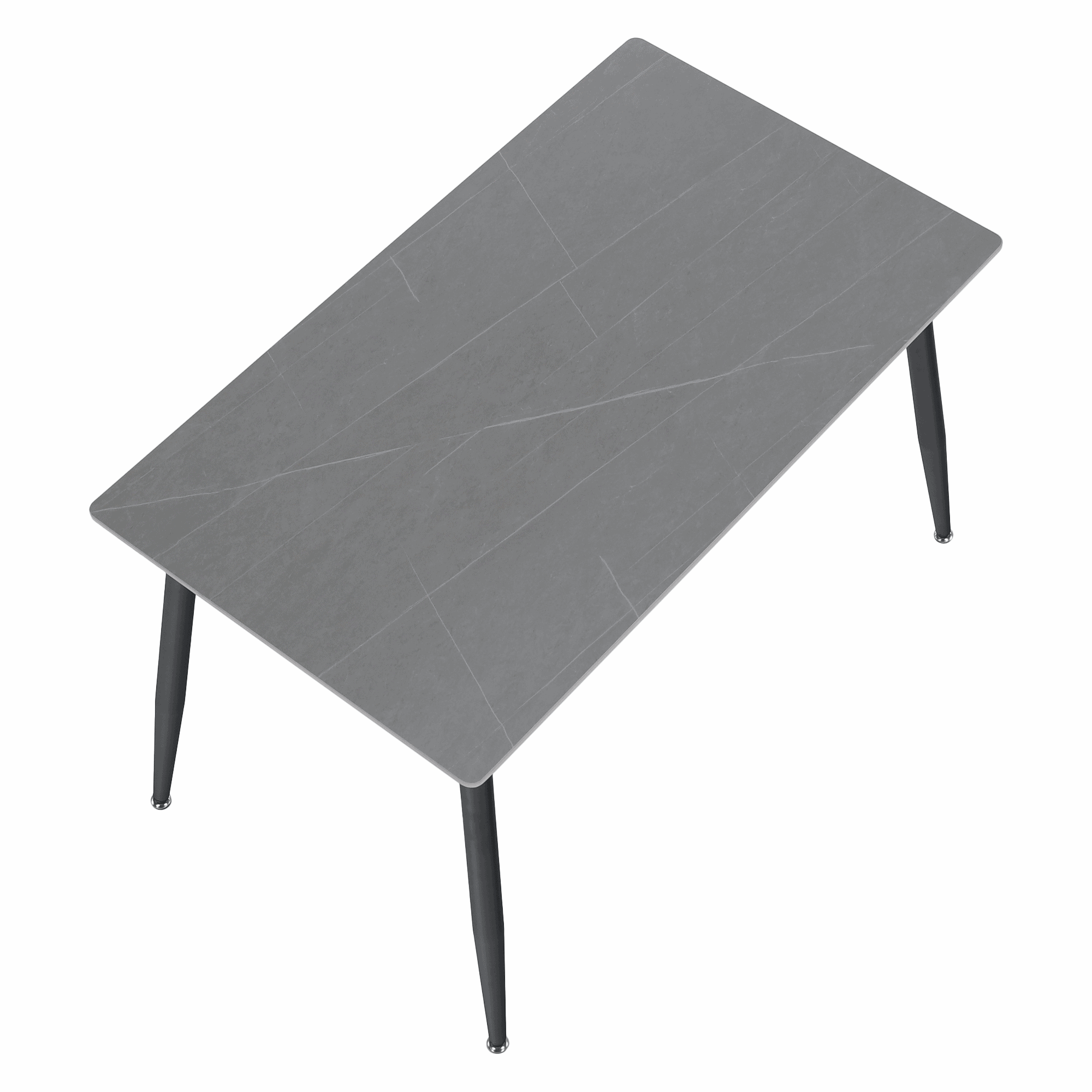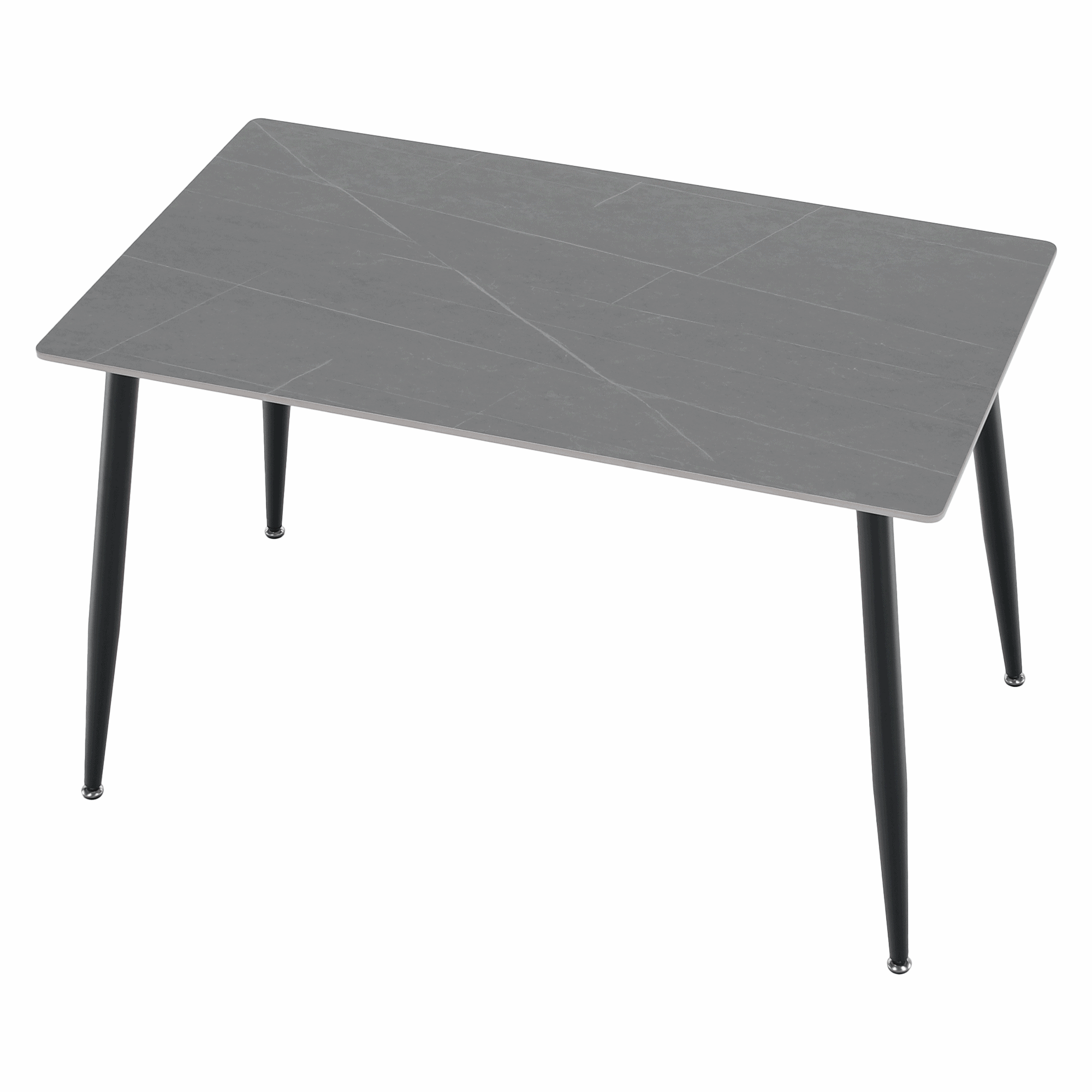 Material: piatră/oţel Culoare: marmură gri/negru Dimensiuni (Lxlxh): 121x71x73 cm Grosimea blatului de piatră: 1,07 cm Portanţă: 50 kg Practic Design modern Potrivit pentru 4-6 persoane Livrat dezasamblat