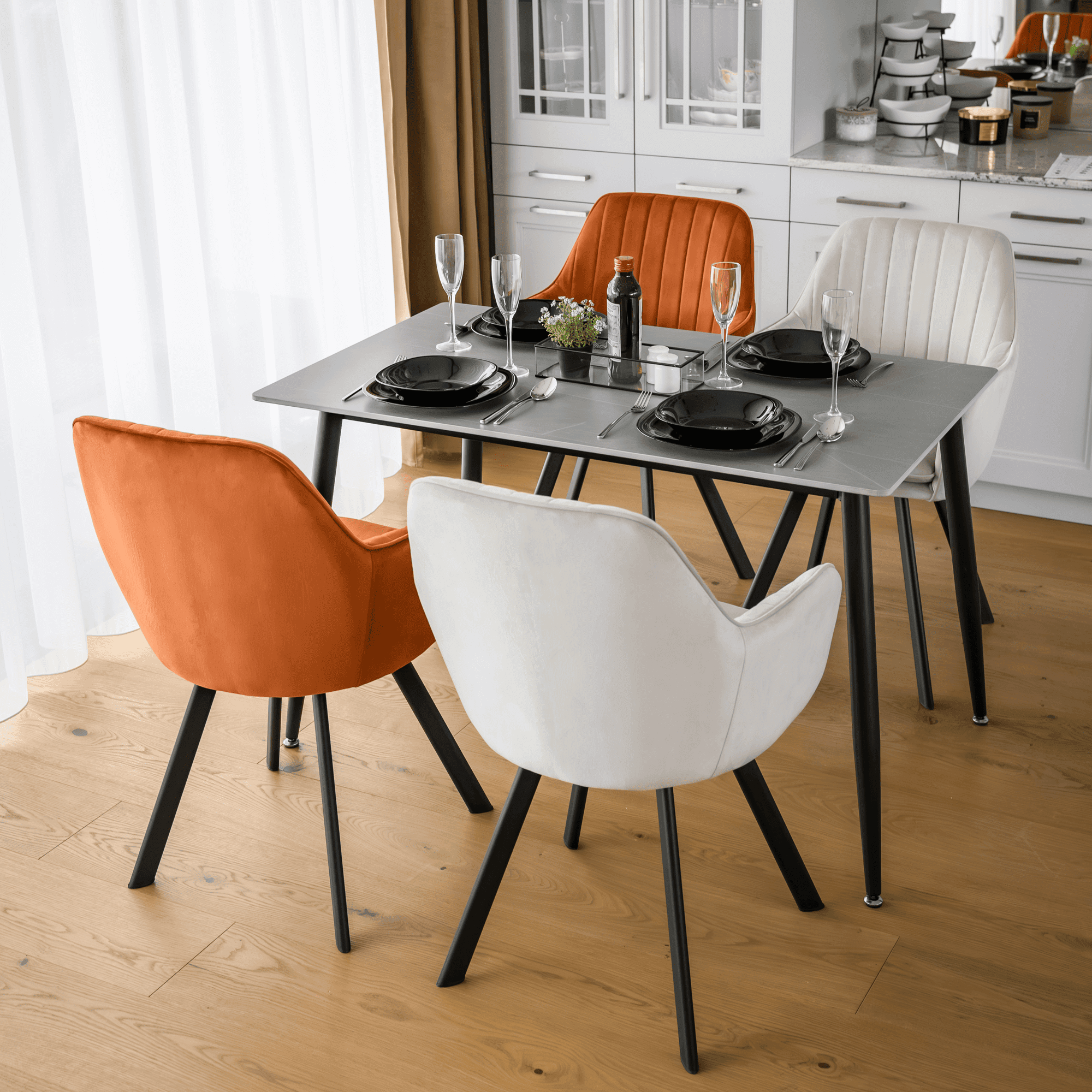 Masa de sufragerie, gri marmură/neagră, 121×71 cm, FLORENC TIP 1
