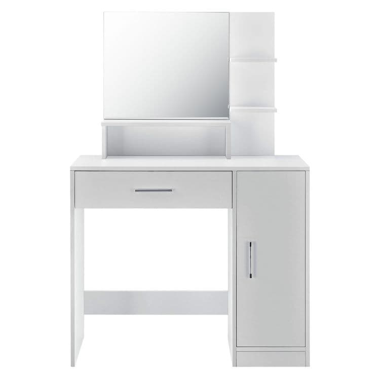 Masa de toaleta cu oglinda, sertar, dulap si rafturi, 90x38x138 cm, alb Mob360 – produs disponibil în magazinul Mob360.