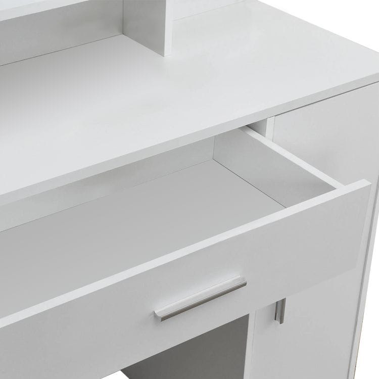 Masa de toaleta cu oglinda, sertar, dulap si rafturi, 90x38x138 cm, alb Mob360