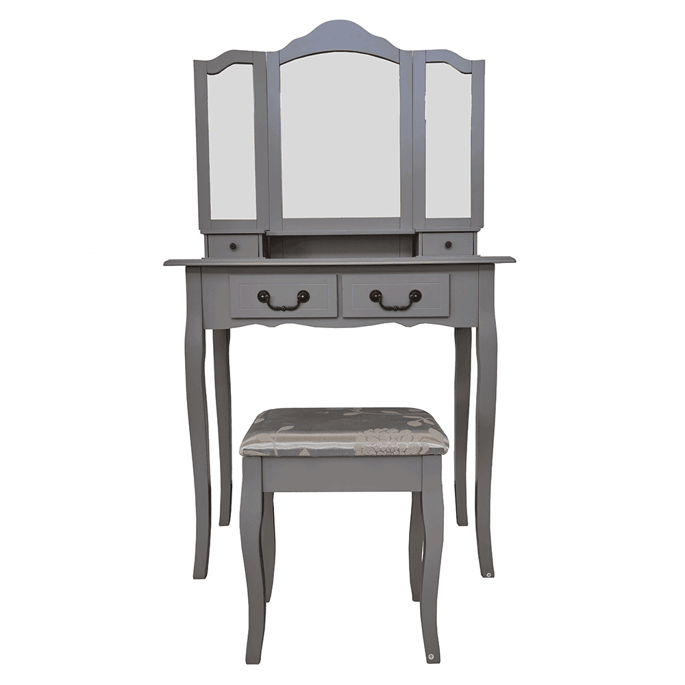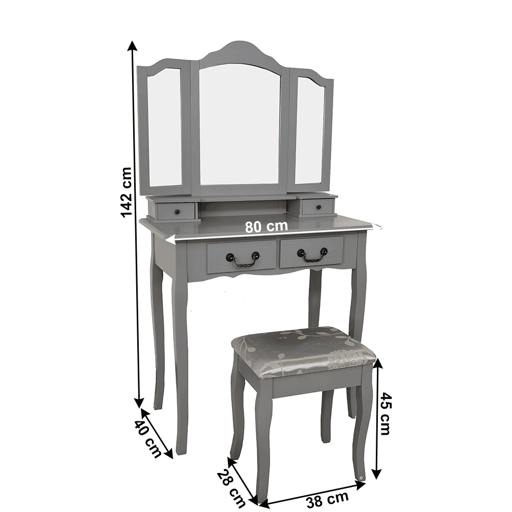 Masă de toaletă cu taburet, gri / argintiu, REGINA NEW
