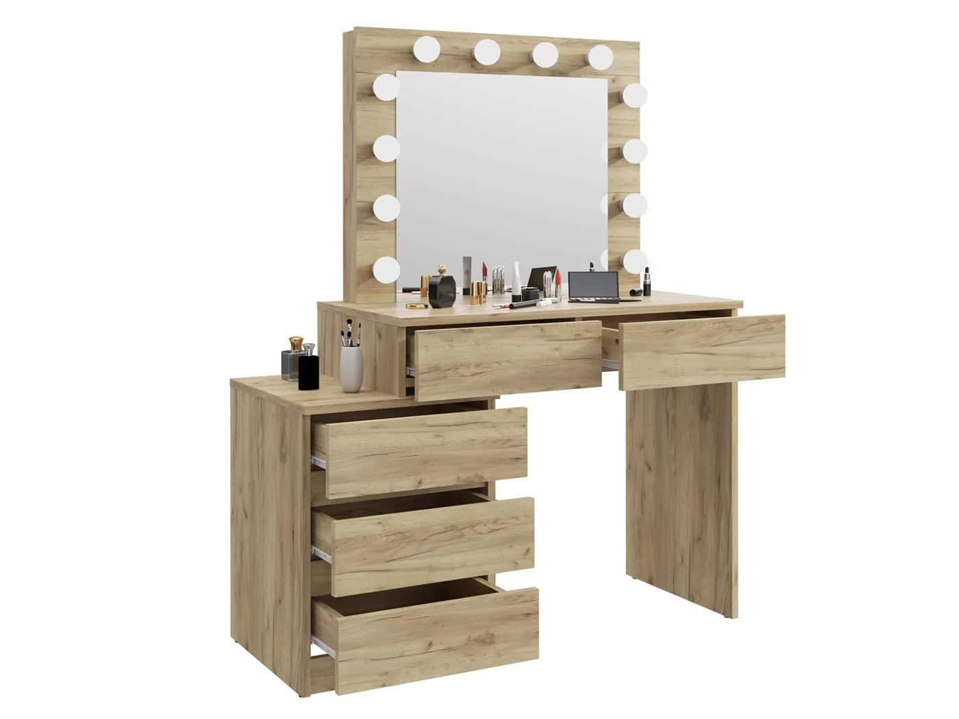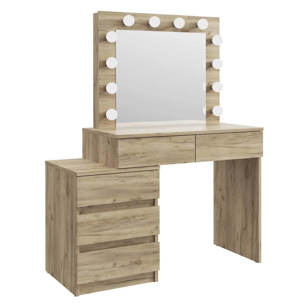 Masa de toaleta si machiaj Adele cu 5 sertare si oglinda 12 LED, 113x47x142 cm, craft Mob360