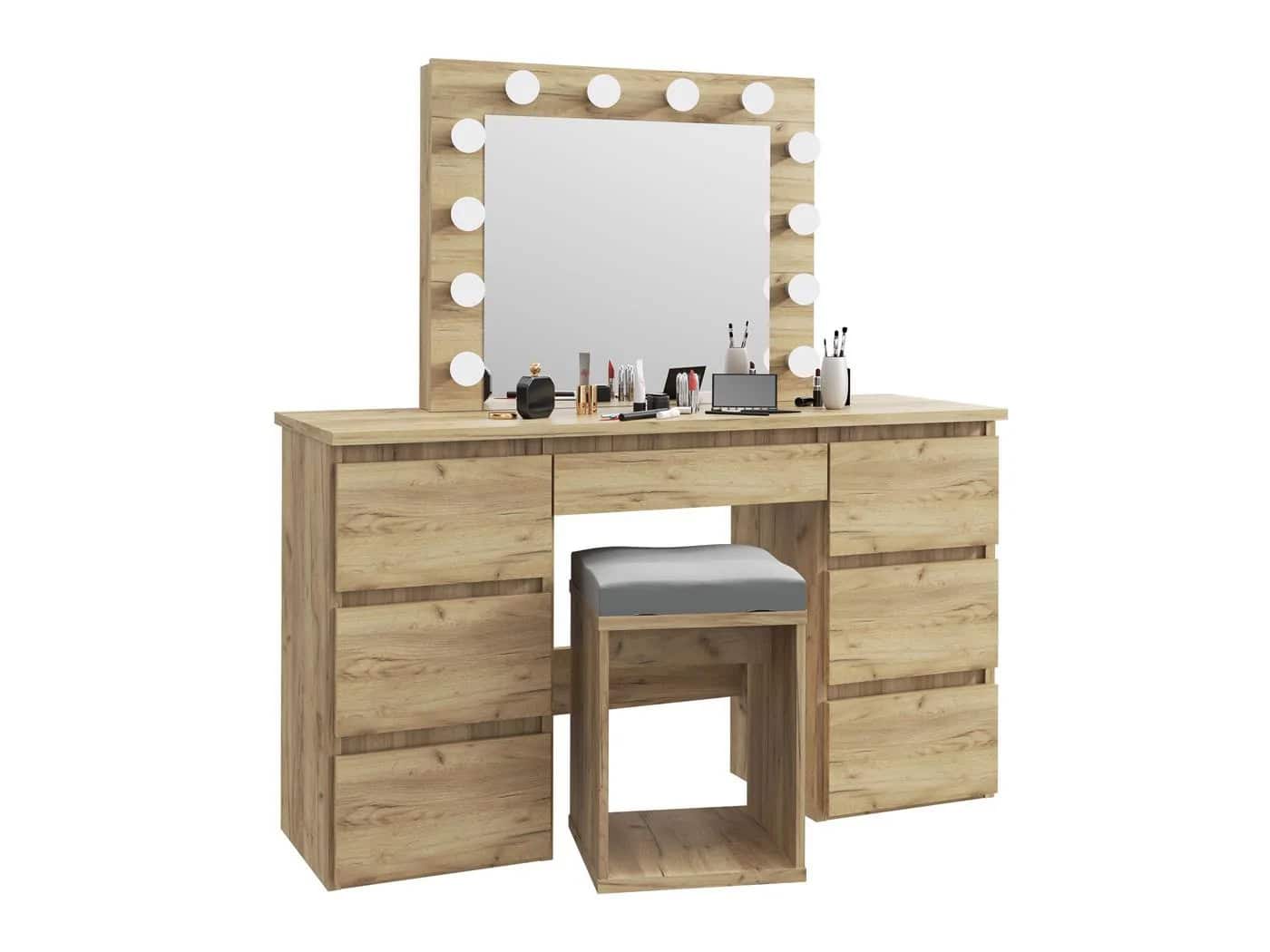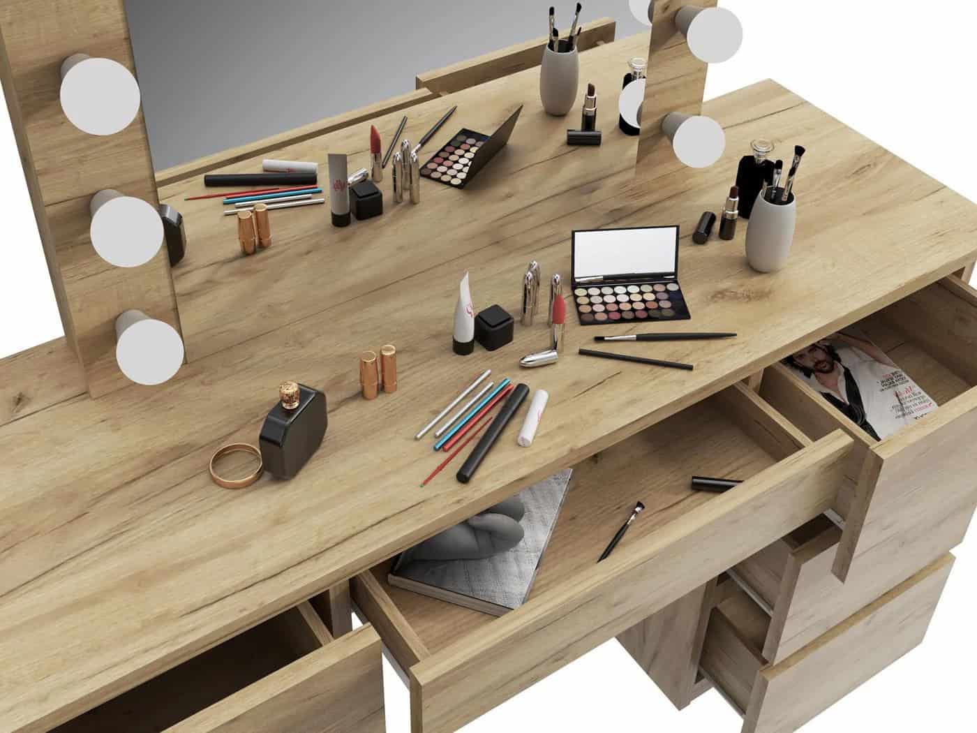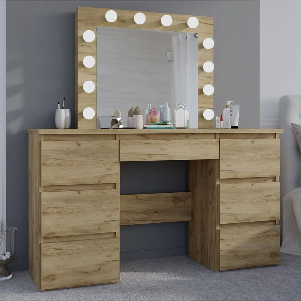 Masa de toaleta si machiaj cu oglinda LED si 7 sertare, 120x43x140 cm, craft Mob360 – produs disponibil în magazinul Mob360.