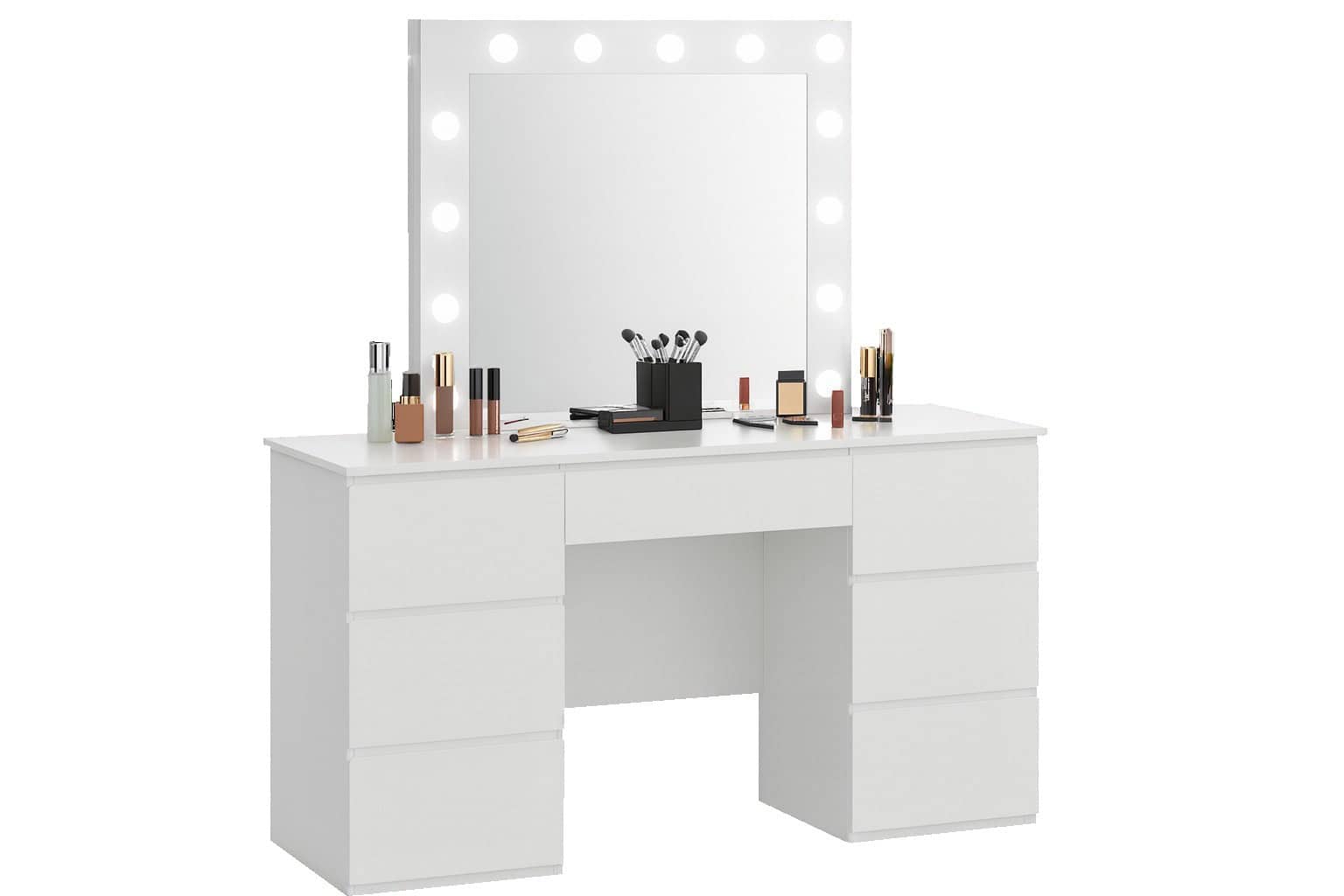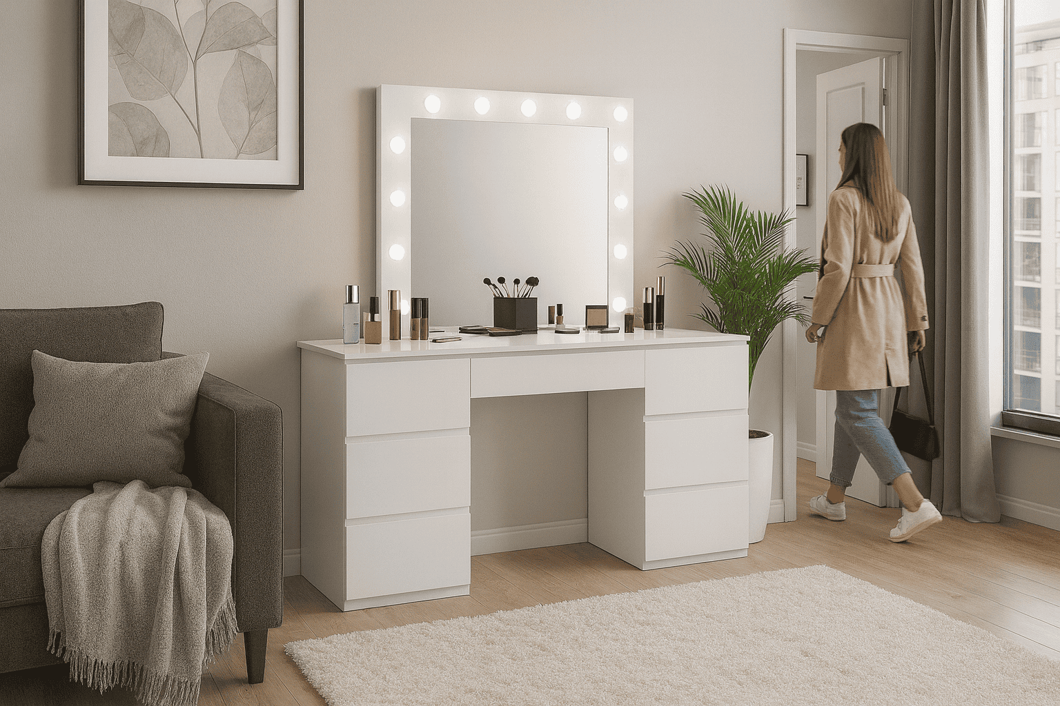 Masa de toaleta si machiaj, cu oglinda LED si 7 sertare, 132x43x152 cm, alb Mob360 – produs disponibil în magazinul Mob360.