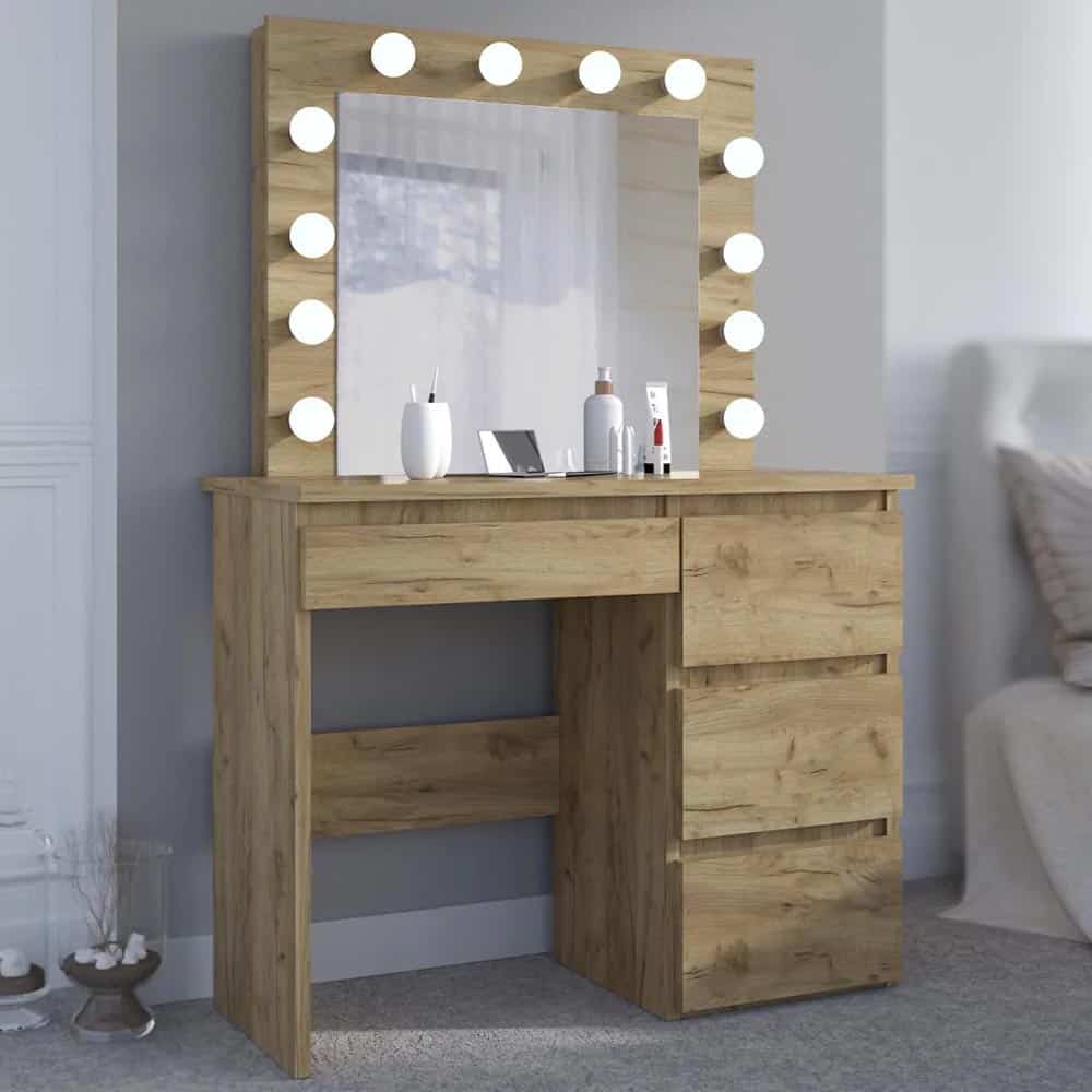 Masa de toaleta si machiaj Hollywood cu oglinda LED si 4 sertare, 94x43x140 cm, craft Mob360 – produs disponibil în magazinul Mob360.