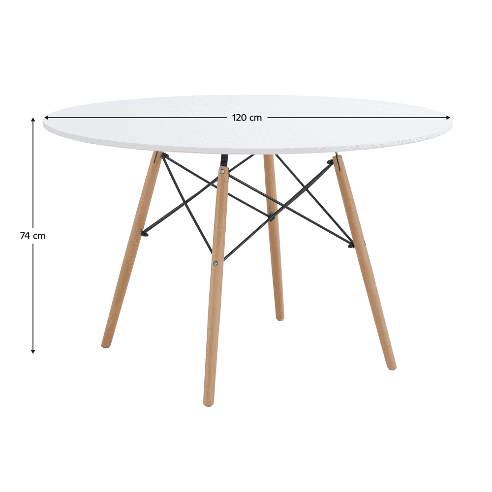 Masă dining, alb mat/fag, diametru 120 cm, DEMIN NEW