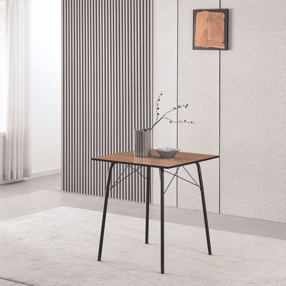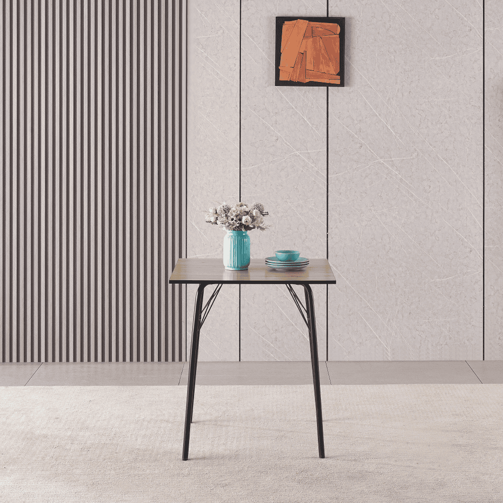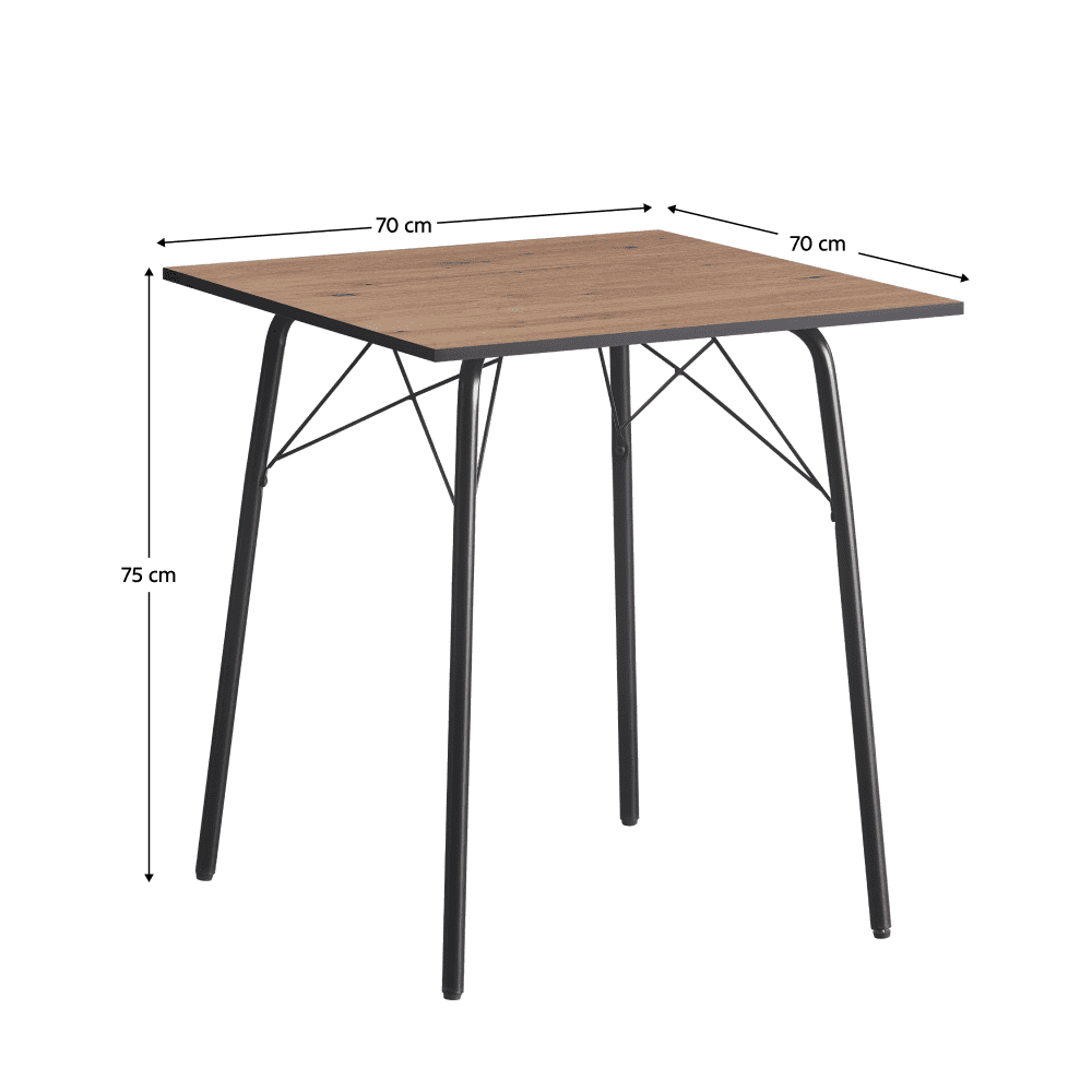 Material: MDF / metal Culoare: stejar artisan / neagră Dimensiuni (LxAxÎ): 70x70x75 cm Grosimea materialului plăcii superioare: 1,5 cm Capacitate de încărcare: 25 kg Simplă Minimalistă Design clasic Picioare metalice Uşor de întreţinut Cu glisoare pentru protecţia podelei Masă dining pentru 4 persoane Livrată dezasamblată