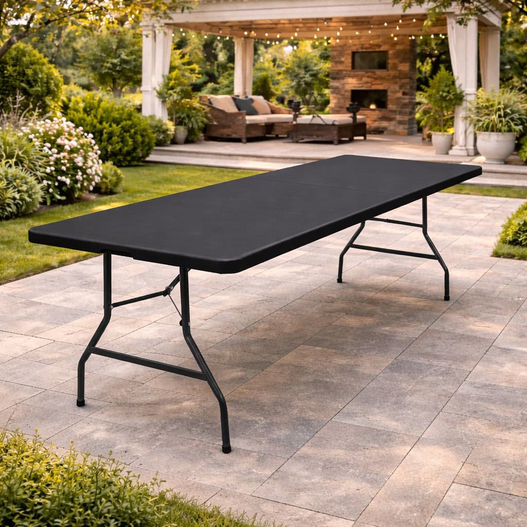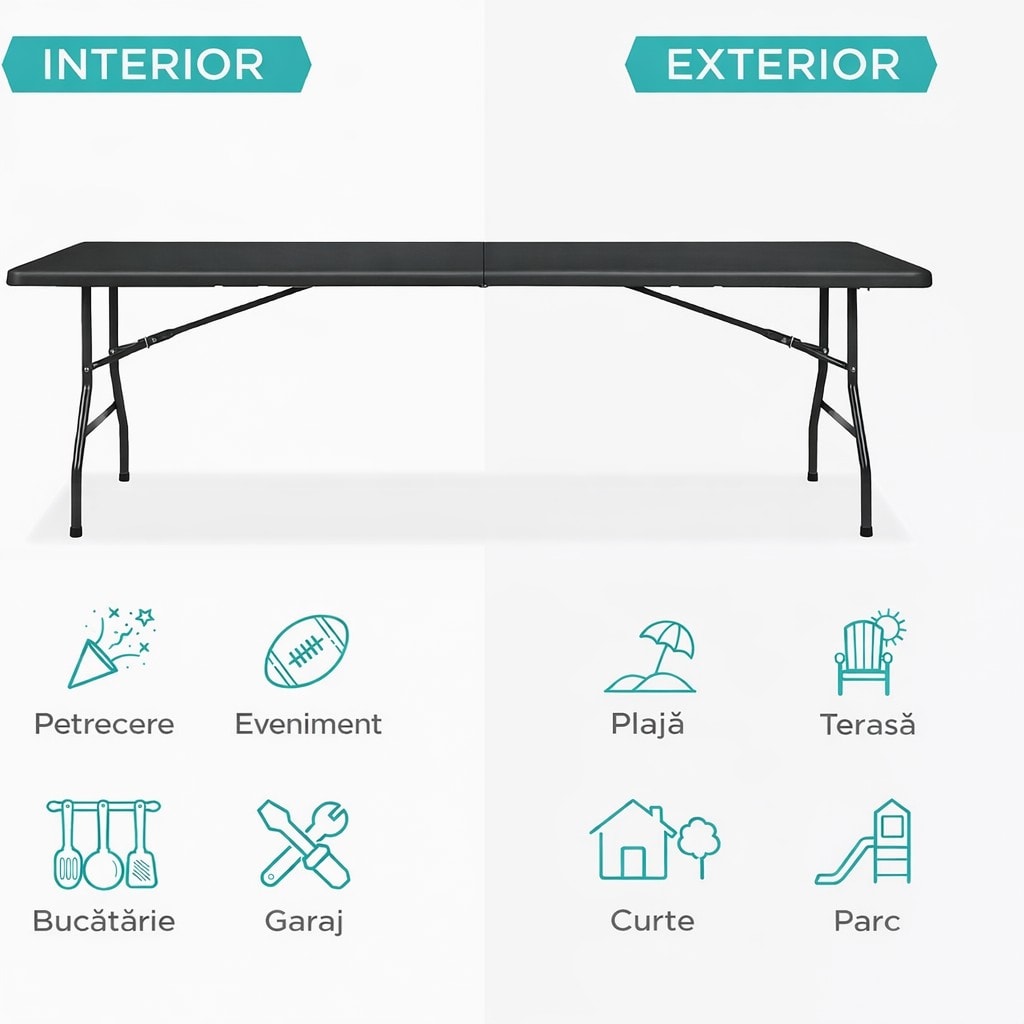 Masa dreptunghiulara pliabila multifunctionala, pentru gradina sau evenimente, 240x75x74 cm, negru Mob360