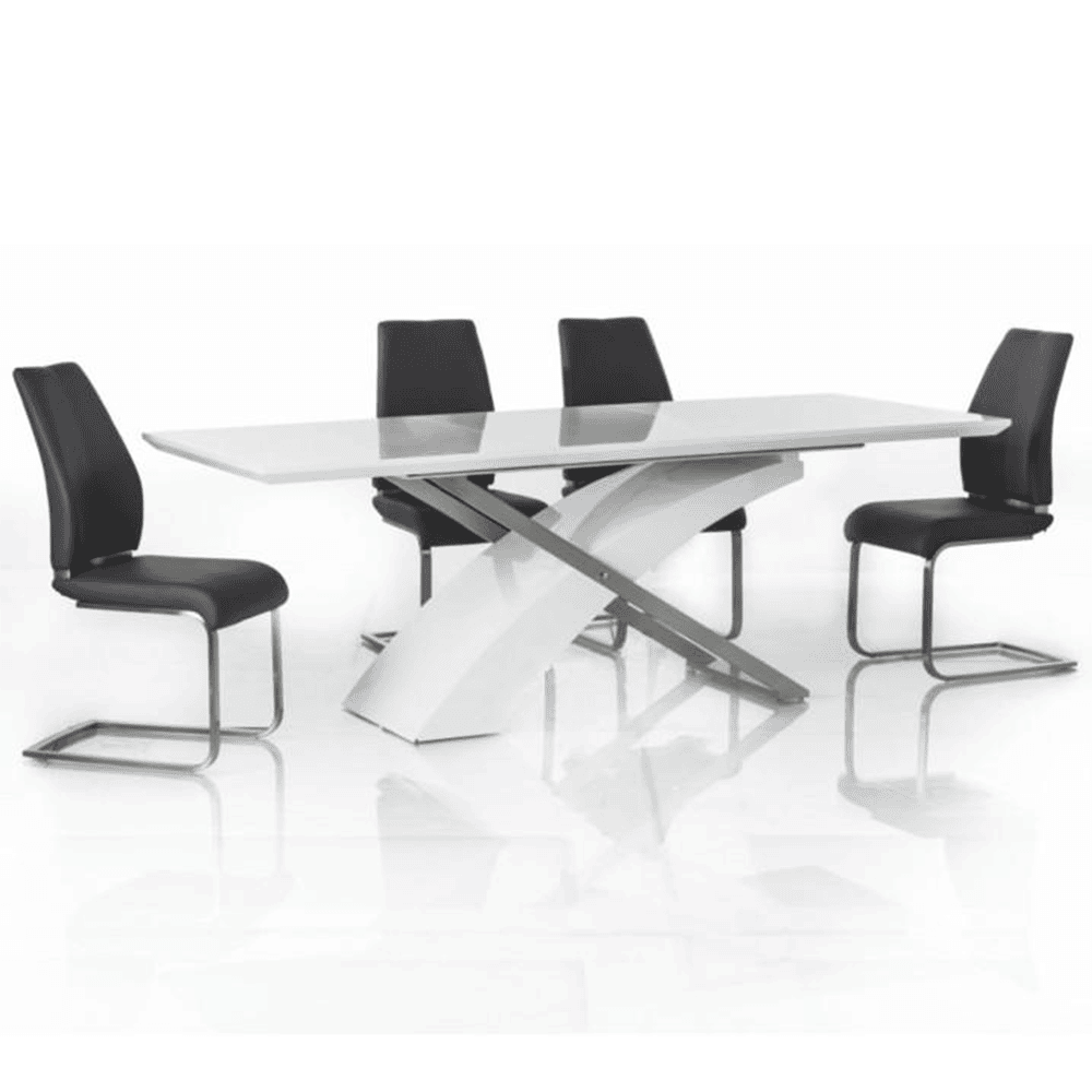 masă extensibilă de bucătărie, culoarea: albă cu extra strălucire HG,