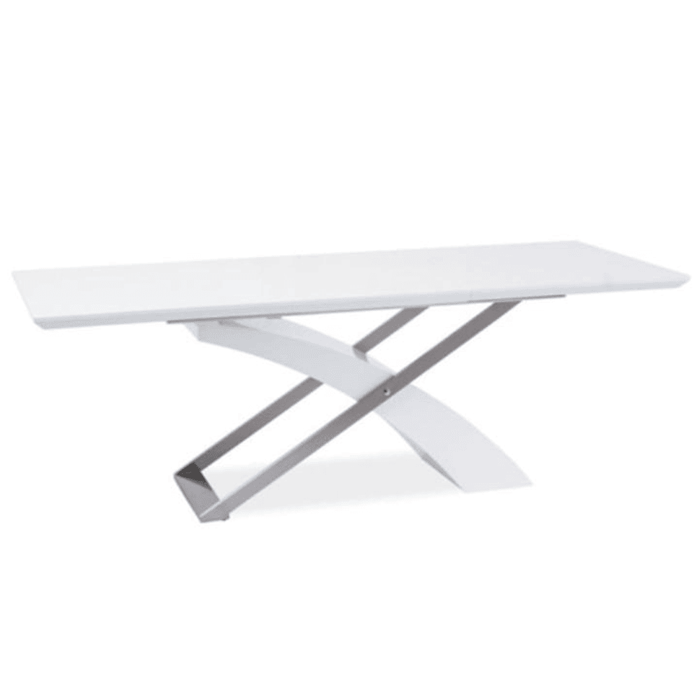 Masă extensibilă de bucătărie, alb extra strălucitor/metal, 160-220×90 cm, KROS