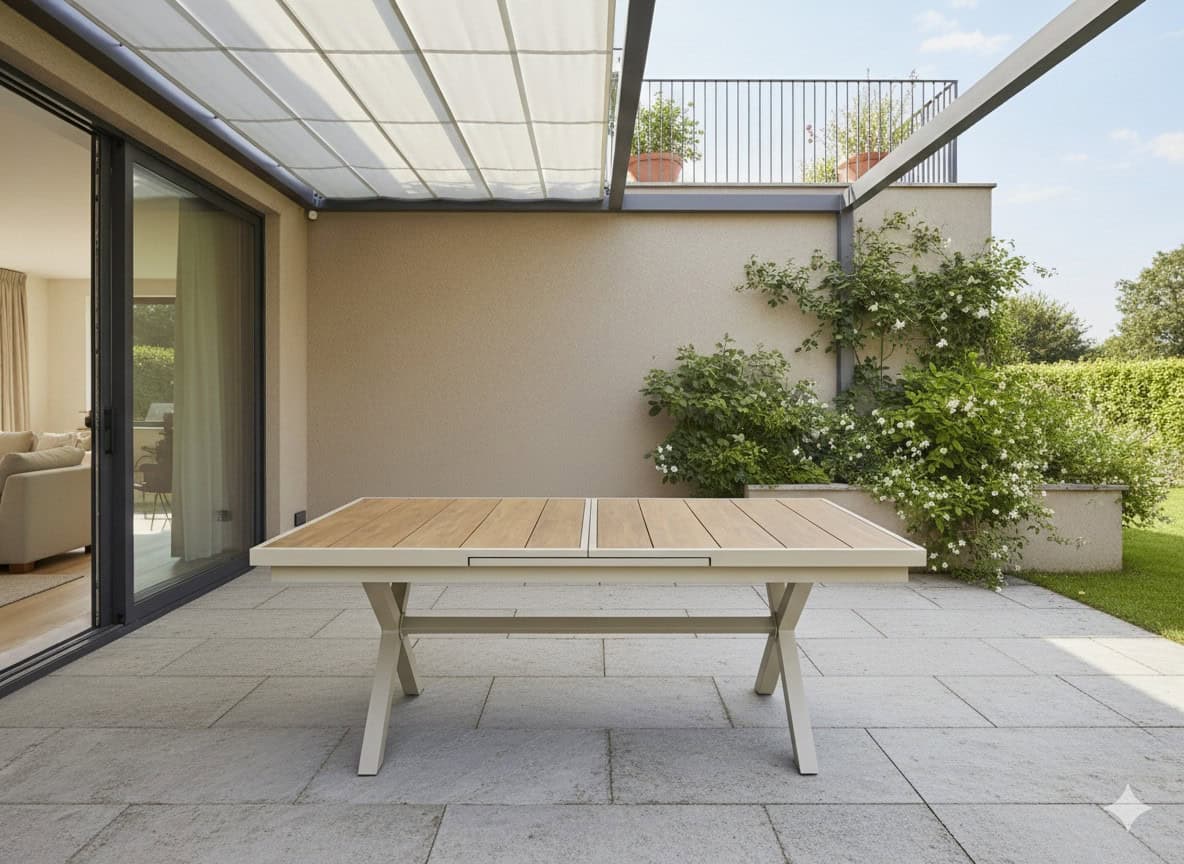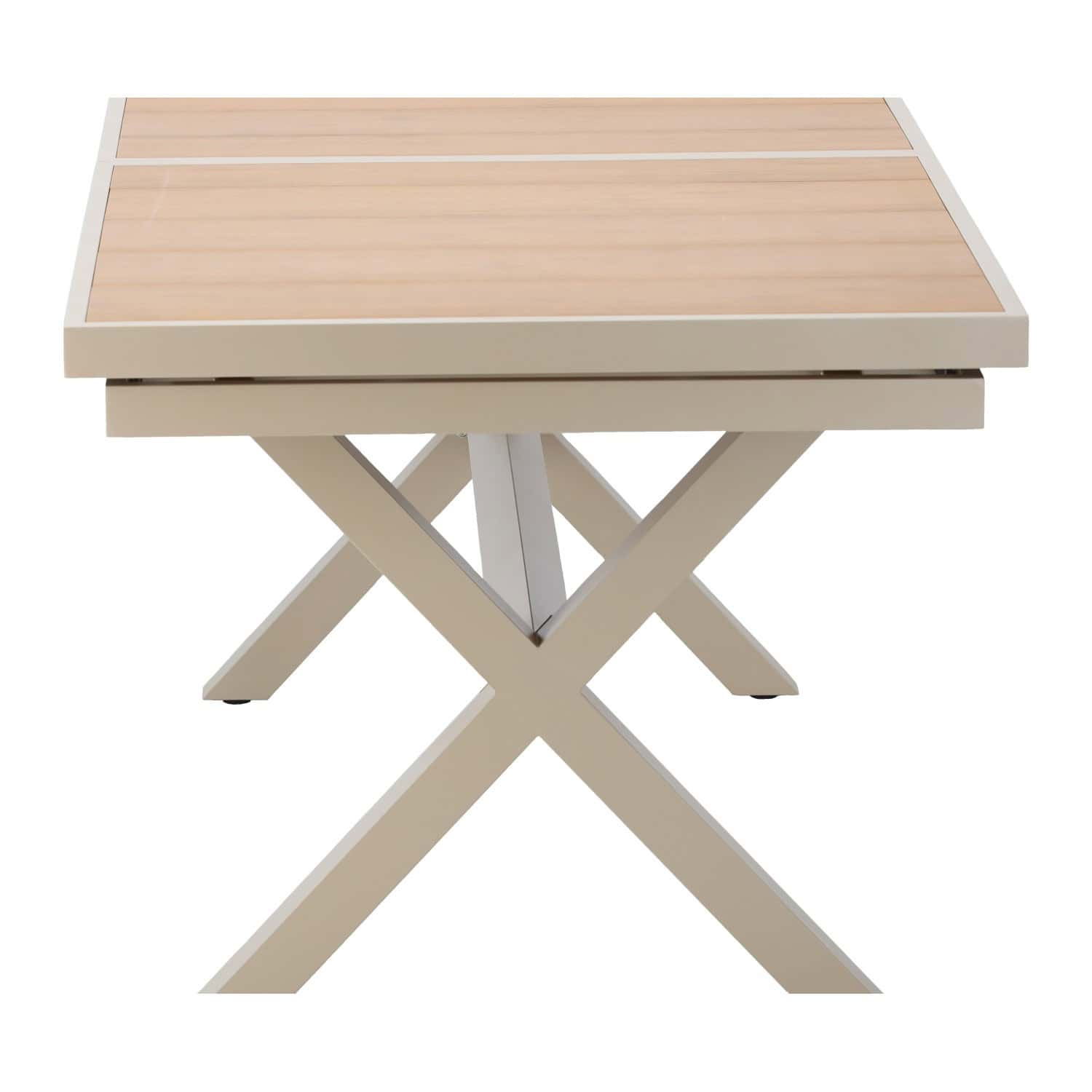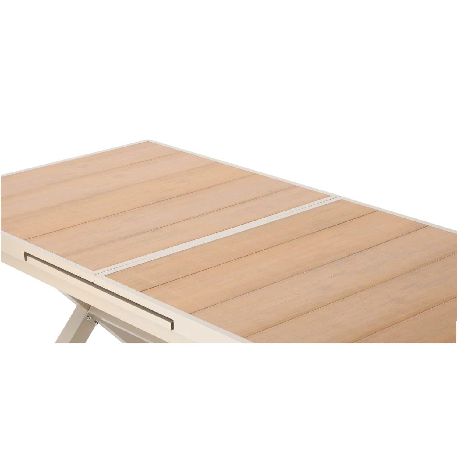 Masa gradina extensibila 180-240 cm din aluminiu cu blat aspect lemn, 180-240x90x76 cm, bej Mob360