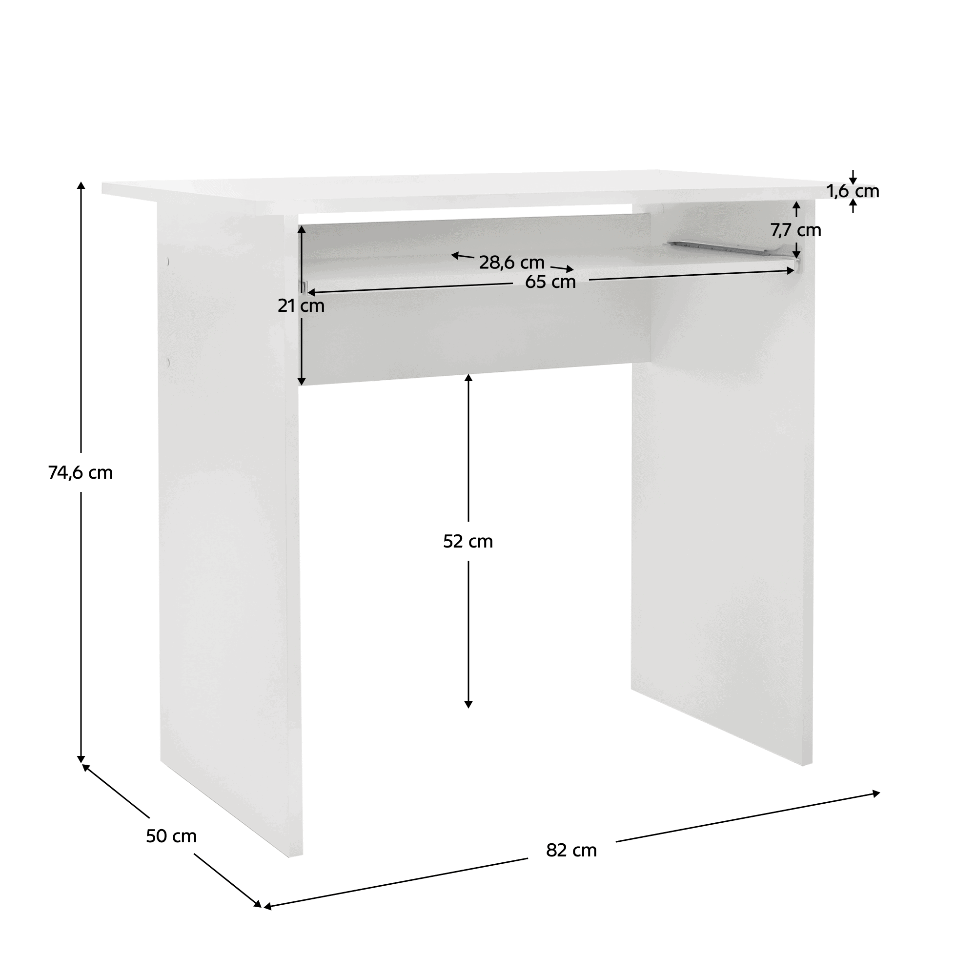Înălţimea spaţiului liber până la marginea inferioară a blatului: 52 cm