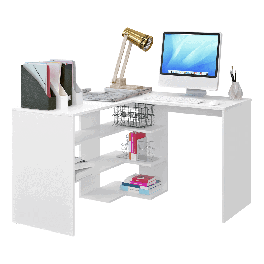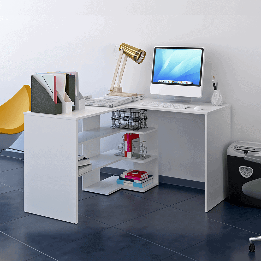 Masa PC de colţ, albă, TAMARI