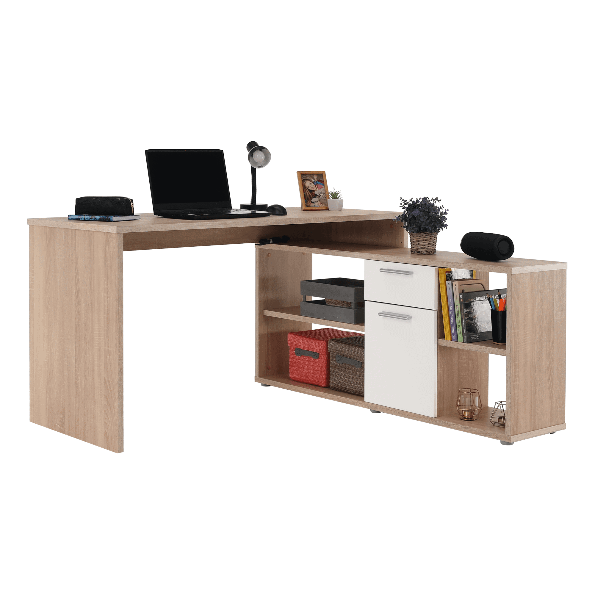 Masa PC, stejar sonoma/alb, NOE NEW