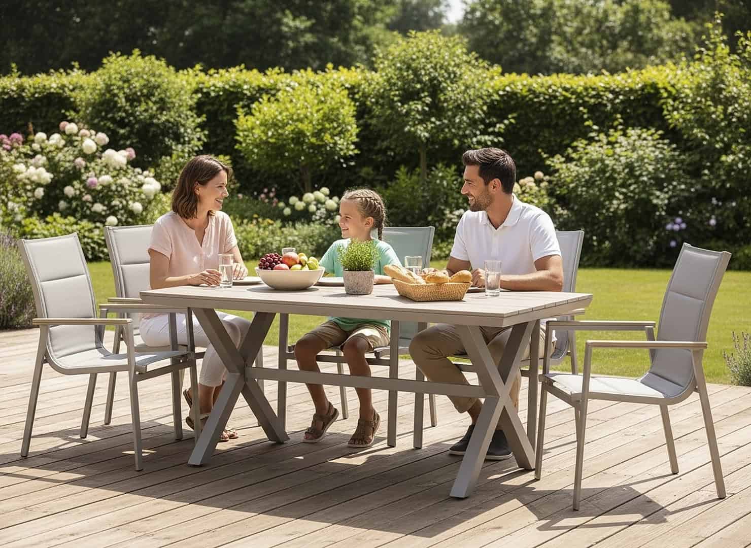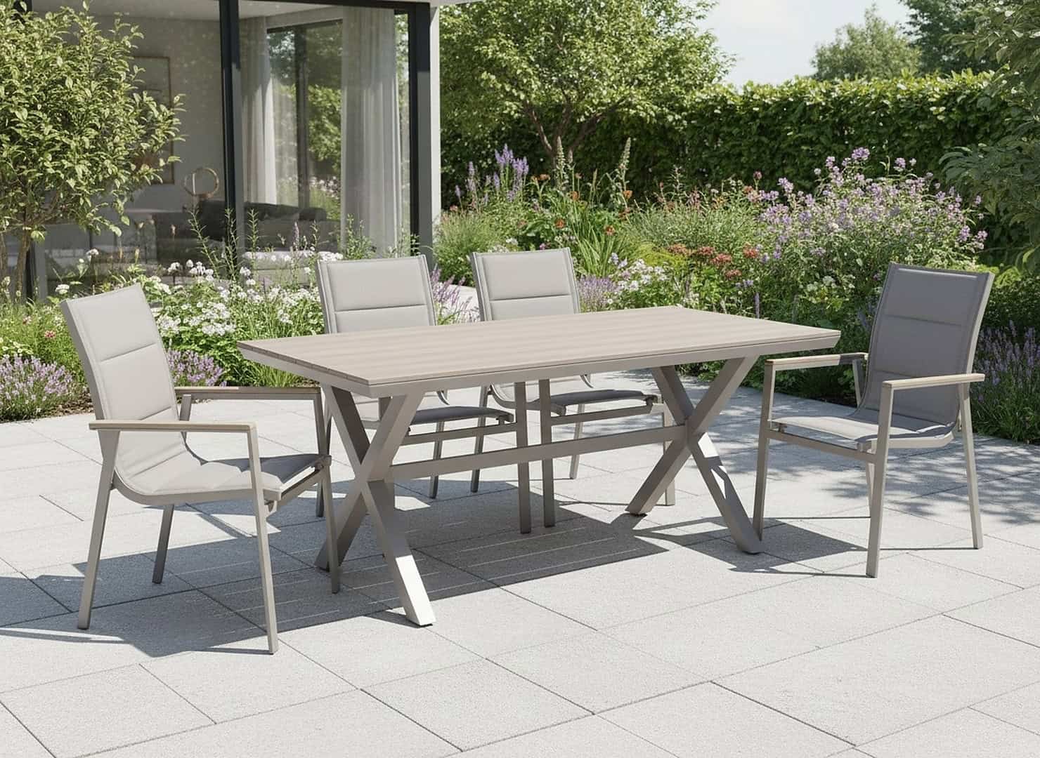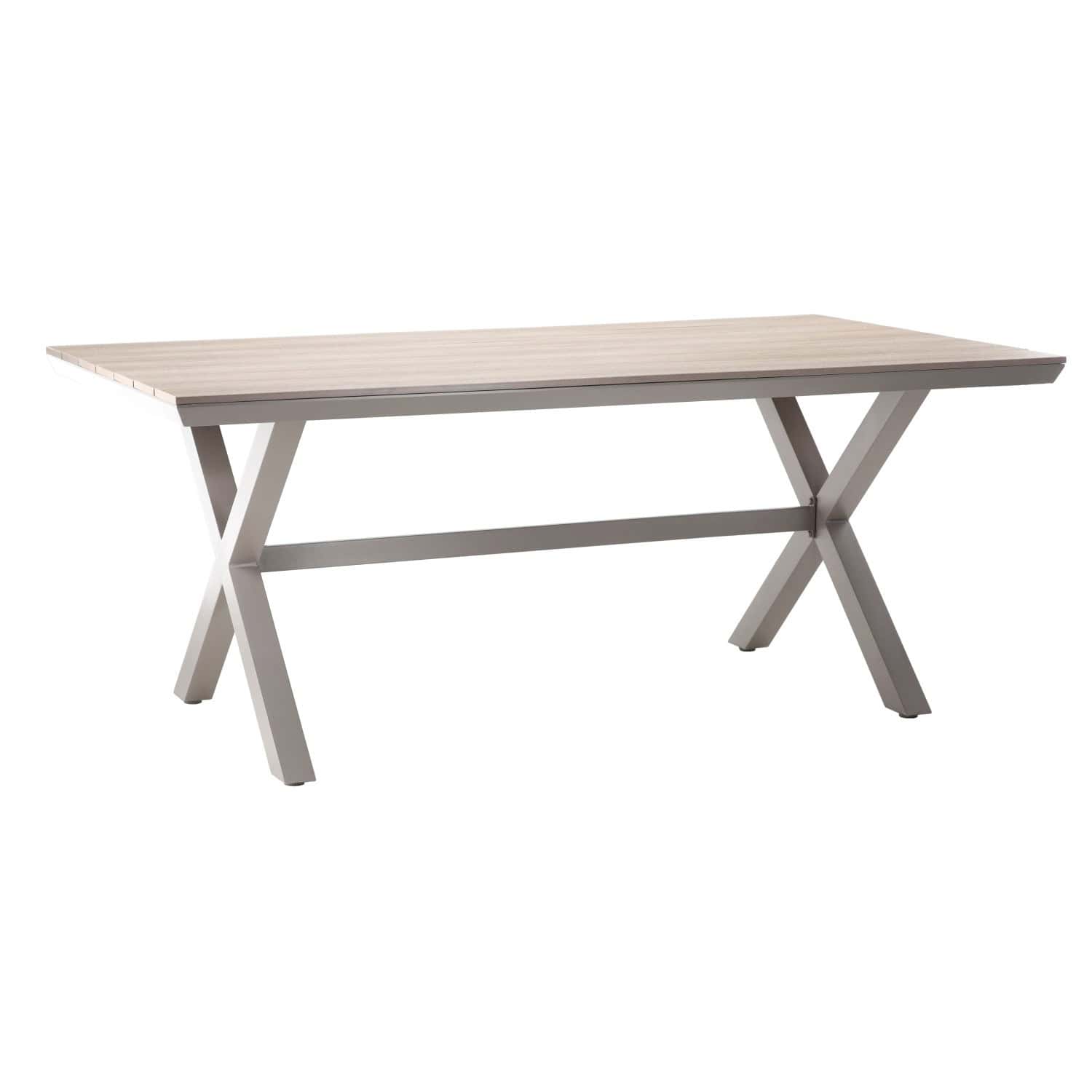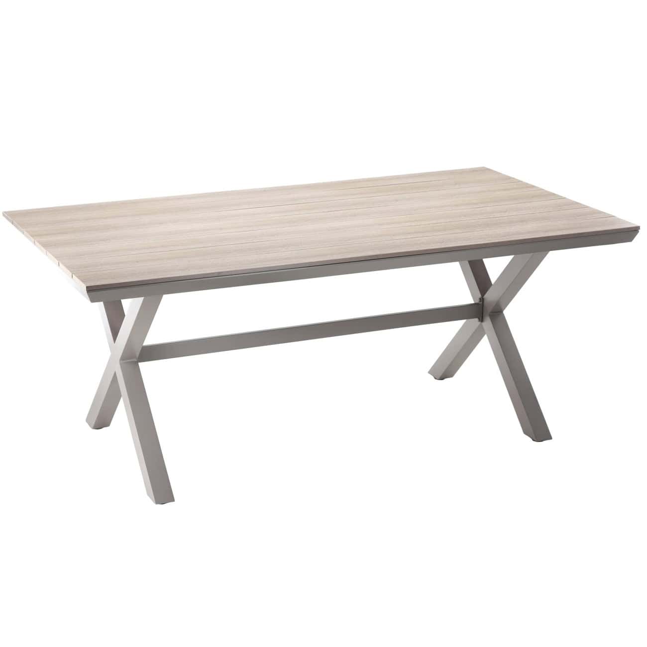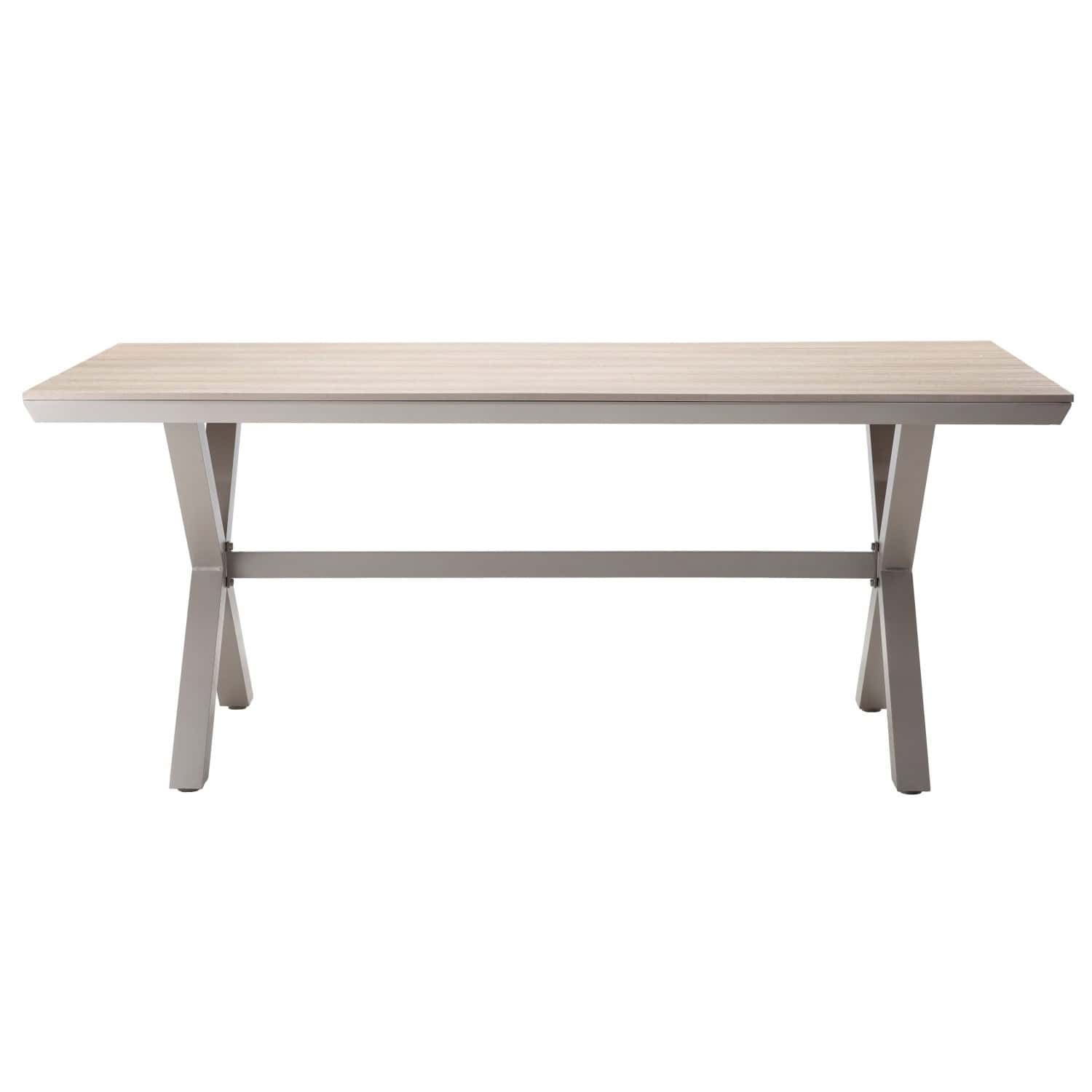 Masa pentru gradina, cadru aluminiu, blat polywood cu aspect de lemn, 180x100x75 cm, bej Mob360