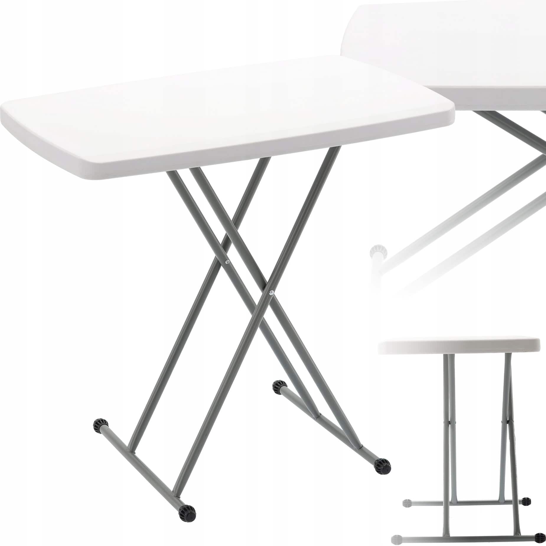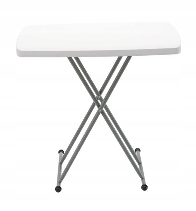 Masa pliabila 76×50 cm, inaltime reglabila 36-71 cm, pentru terasa, gradina sau camping, HDPE alb Mob360